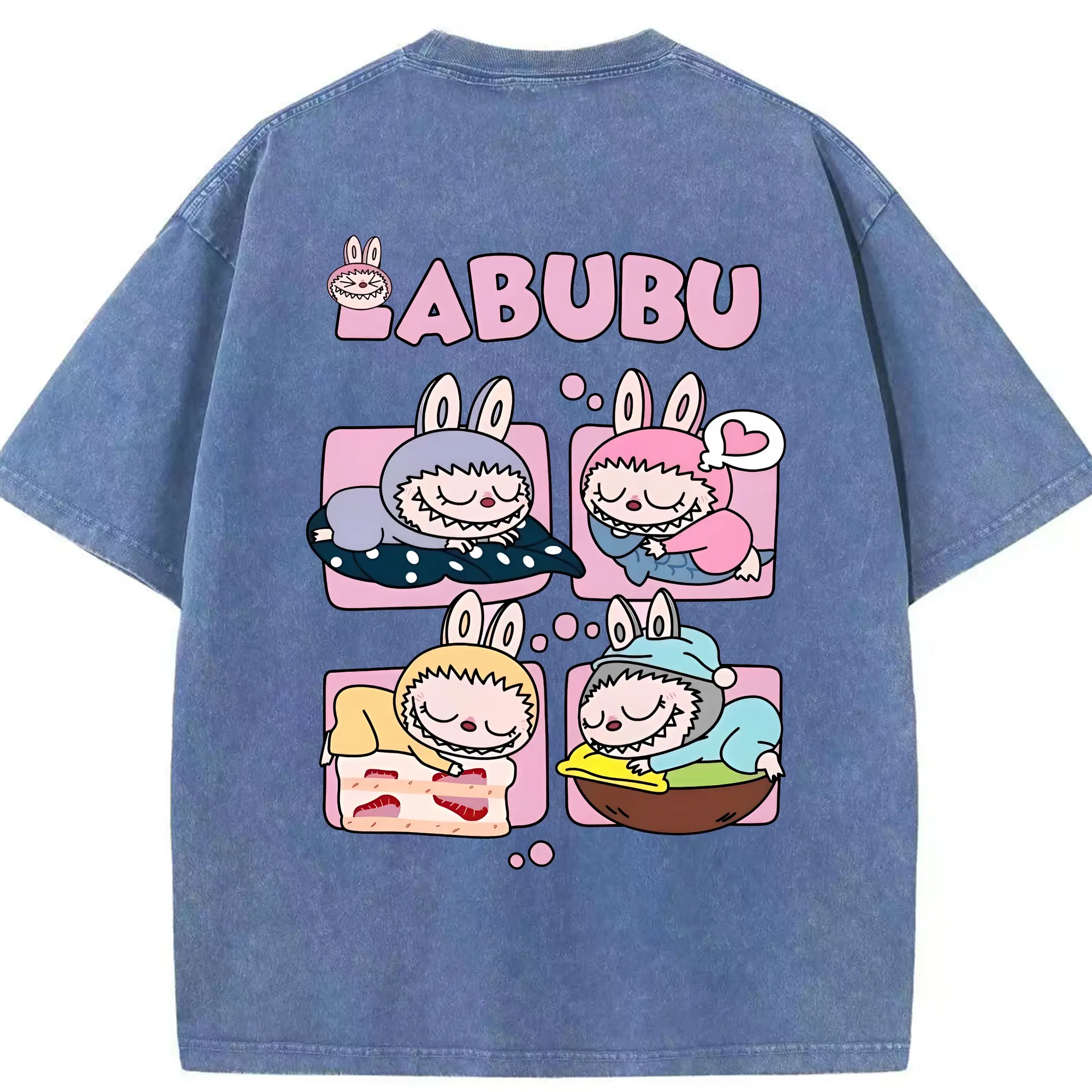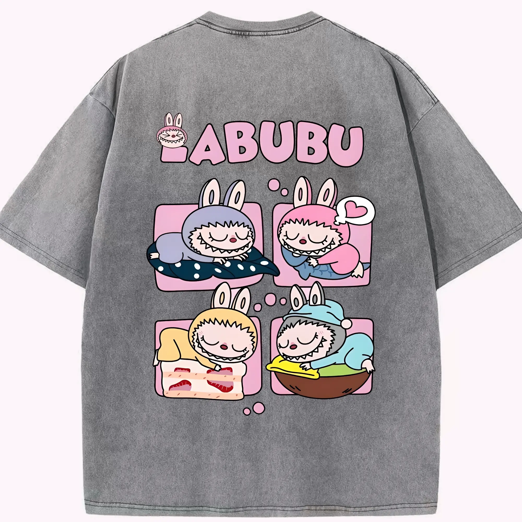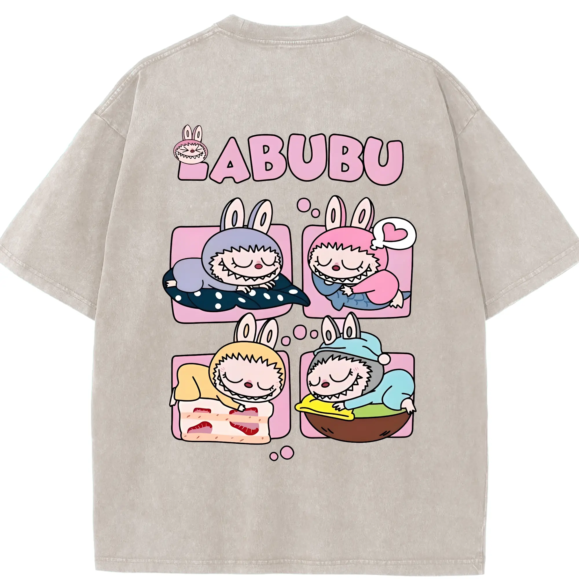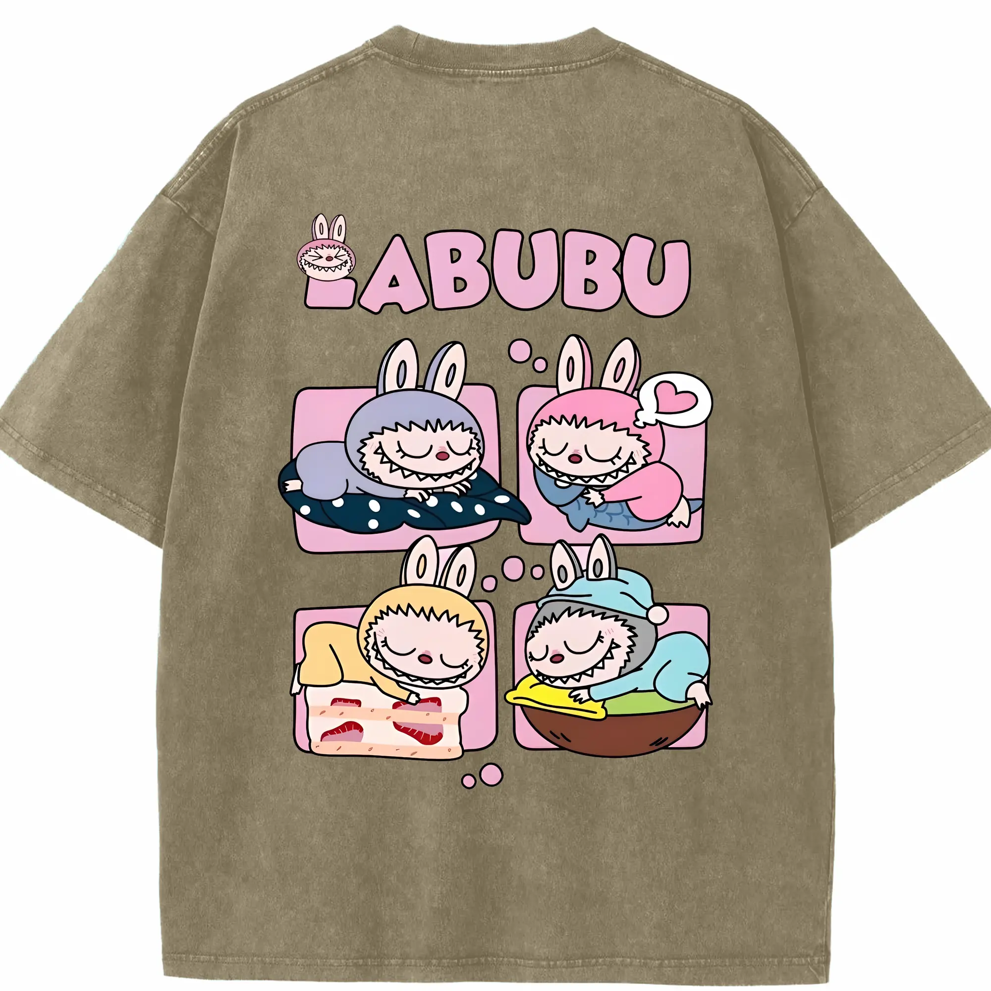 ラブブ グッズ モココ - 綿100% ヴィンテージ風 半袖Tシャツ ・ フロントプリント ・ 柔らか肌触り ・ 通気性 快適 ・ スポーツ カジュアル 外出用