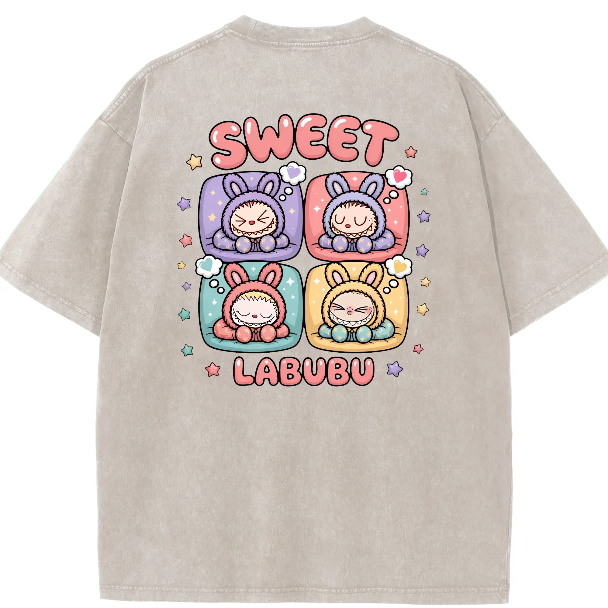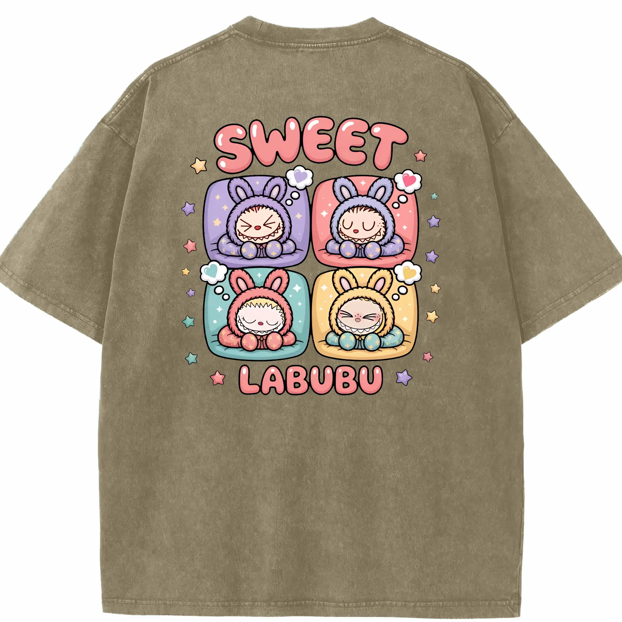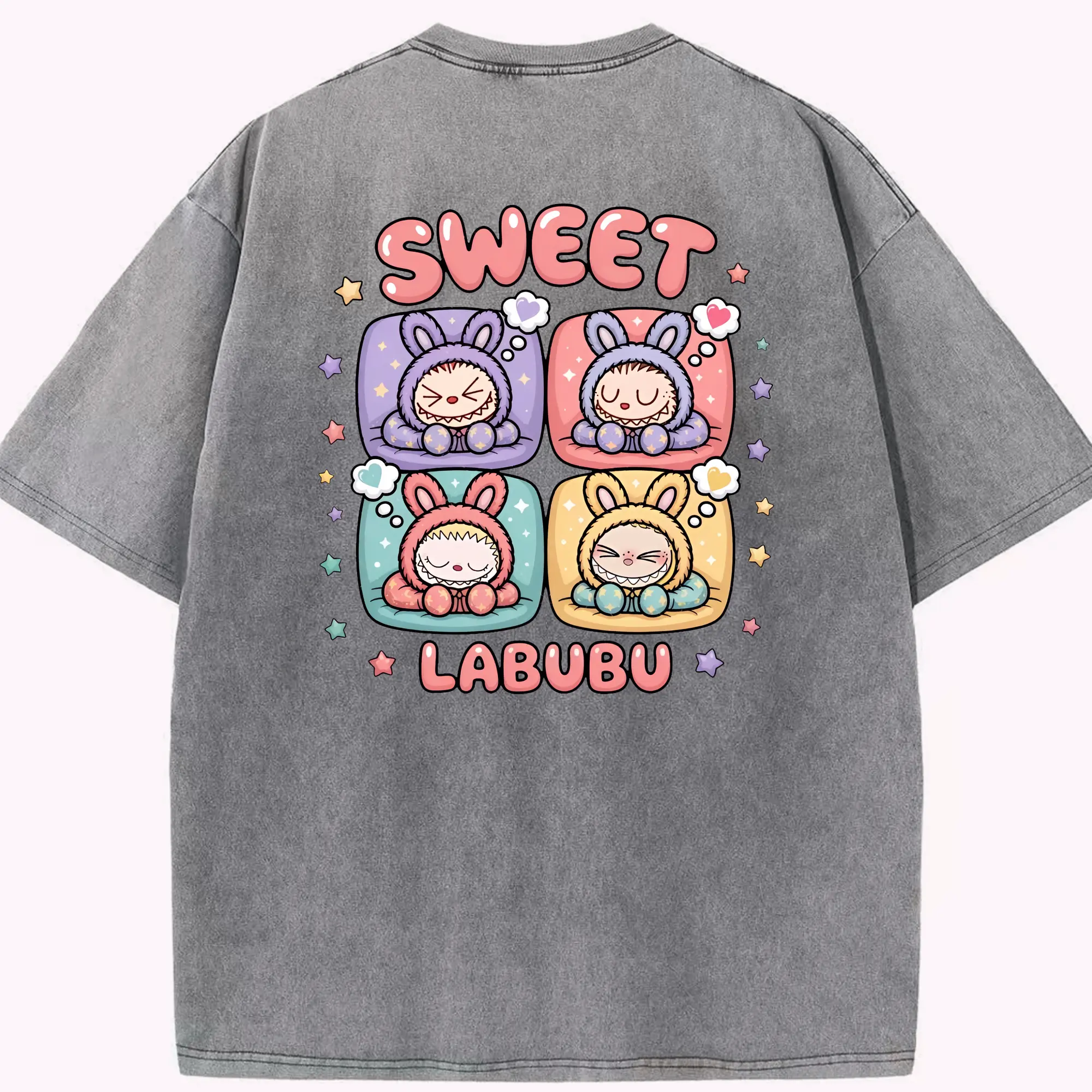 ラブブ グッズ ジモモ - 綿100% ヴィンテージ風 半袖Tシャツ ・ 背面プリント ・ 柔らか肌触り ・ 通気性 快適 ・ スポーツ カジュアル 外出用