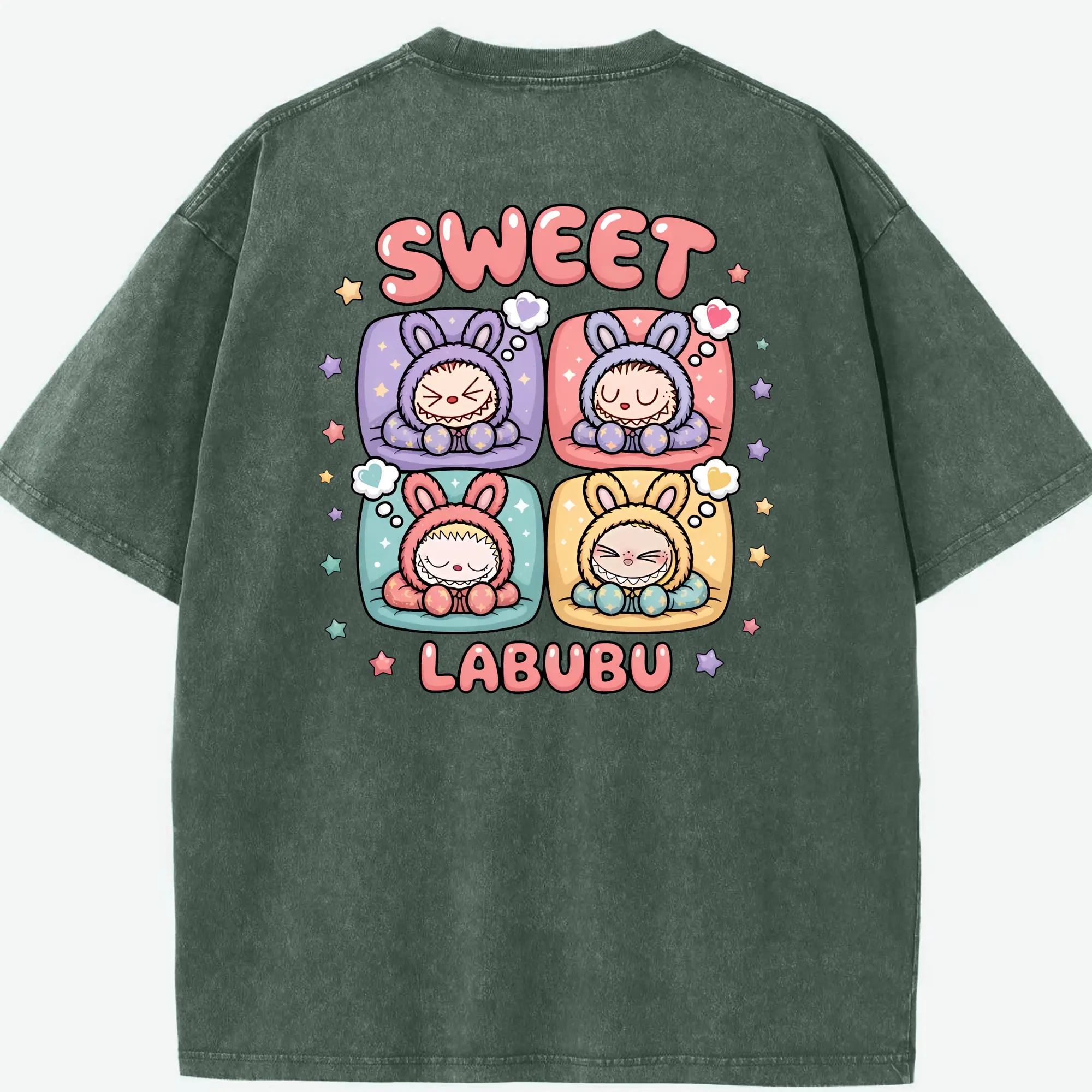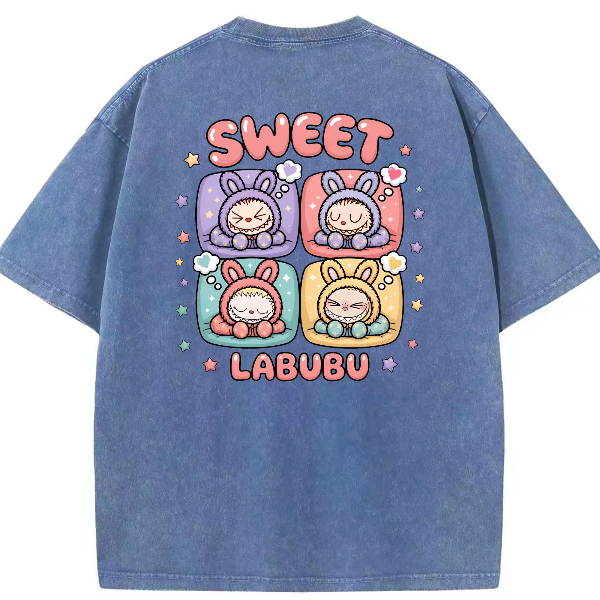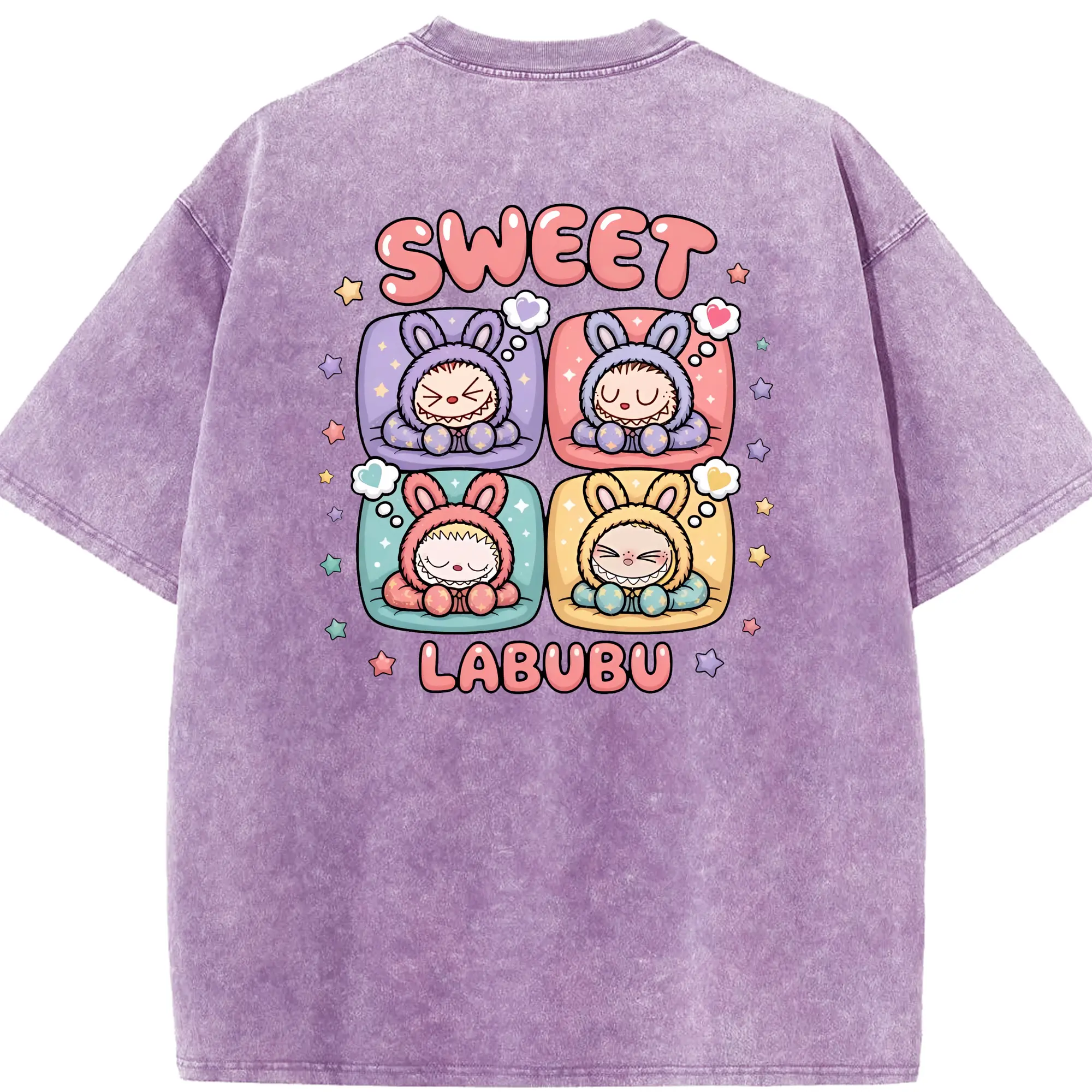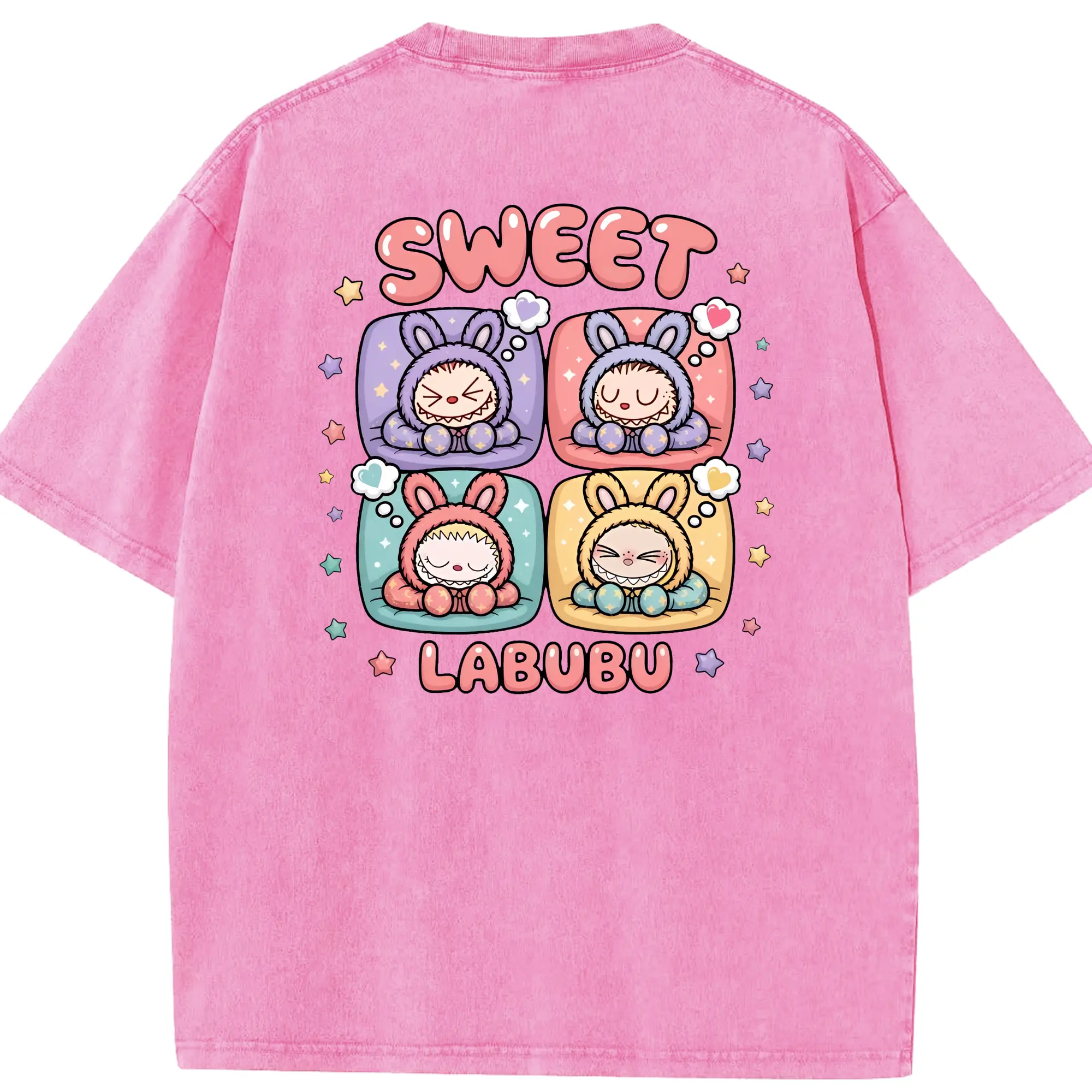 ラブブ グッズ ジモモ - 綿100% ヴィンテージ風 半袖Tシャツ ・ 背面プリント ・ 柔らか肌触り ・ 通気性 快適 ・ スポーツ カジュアル 外出用
