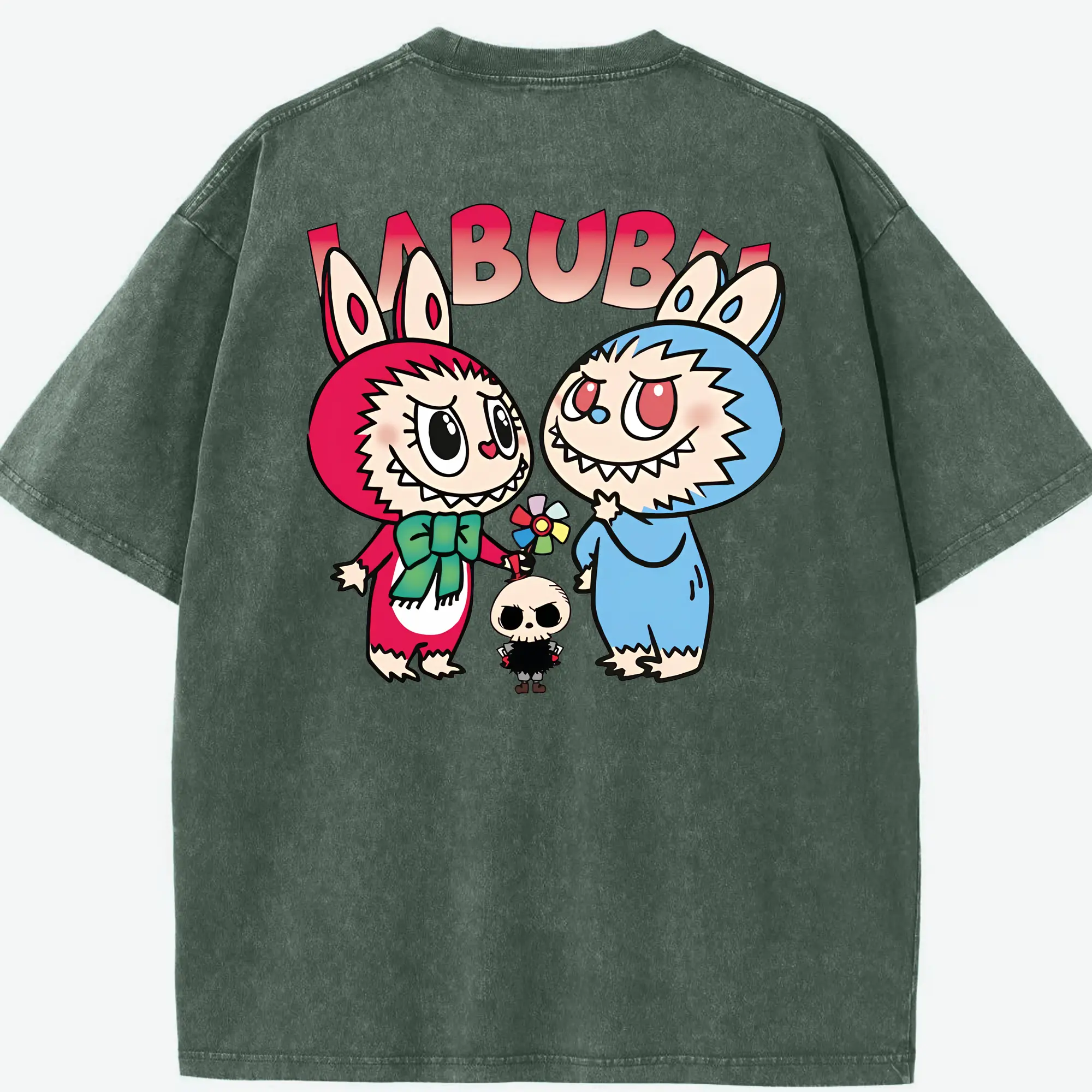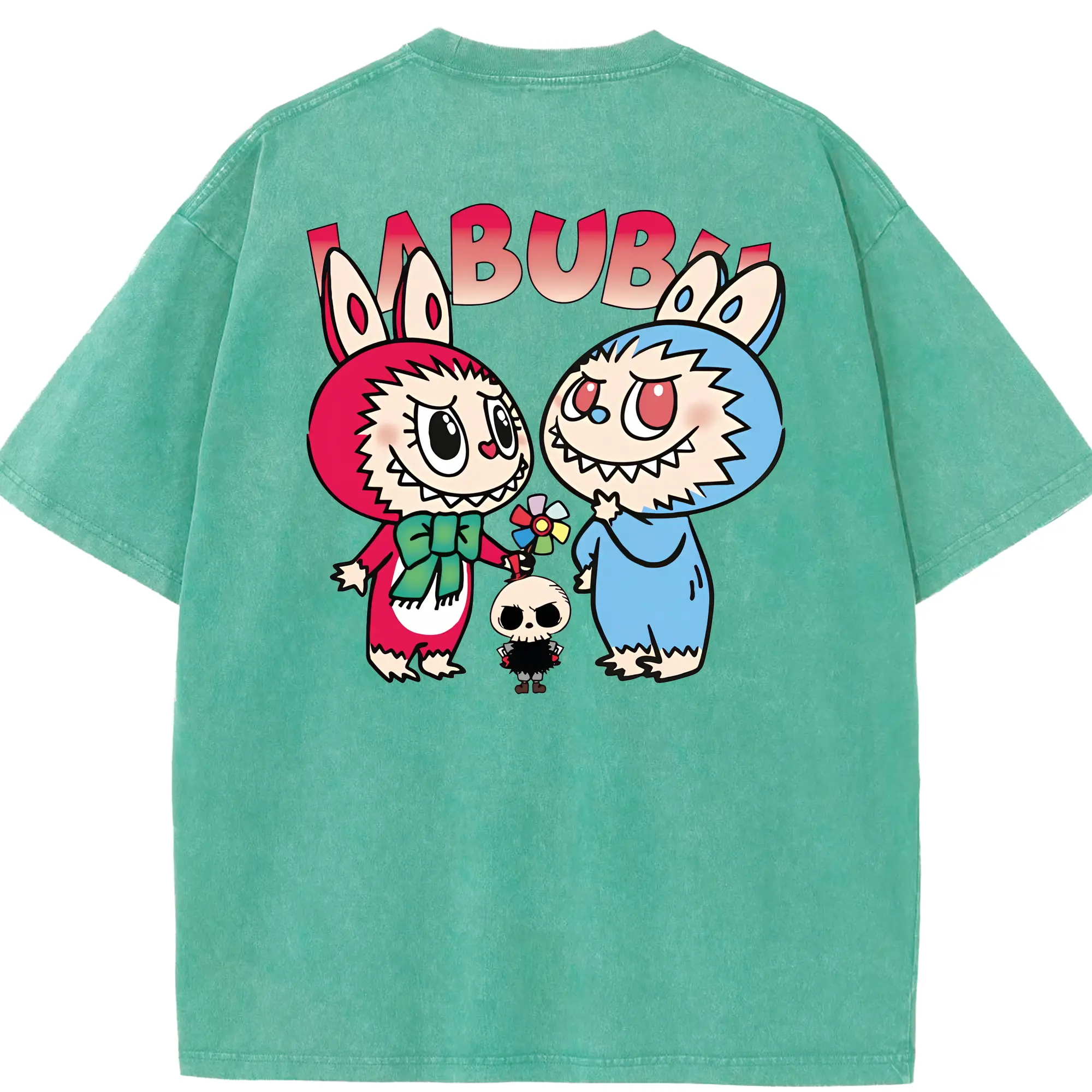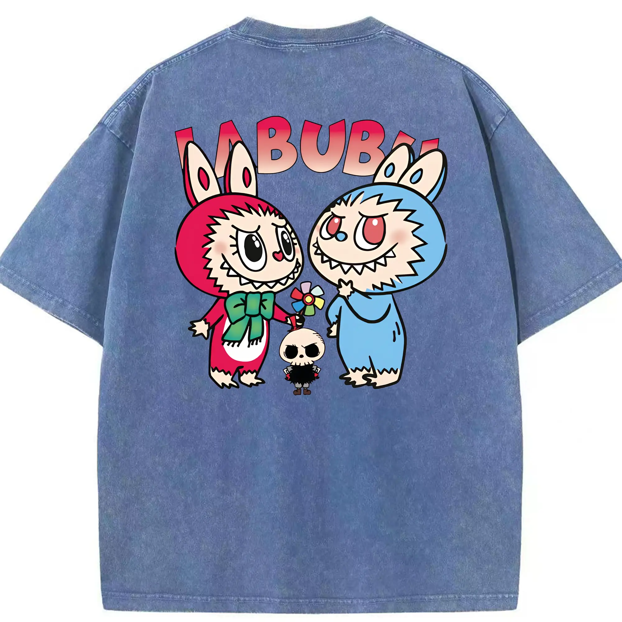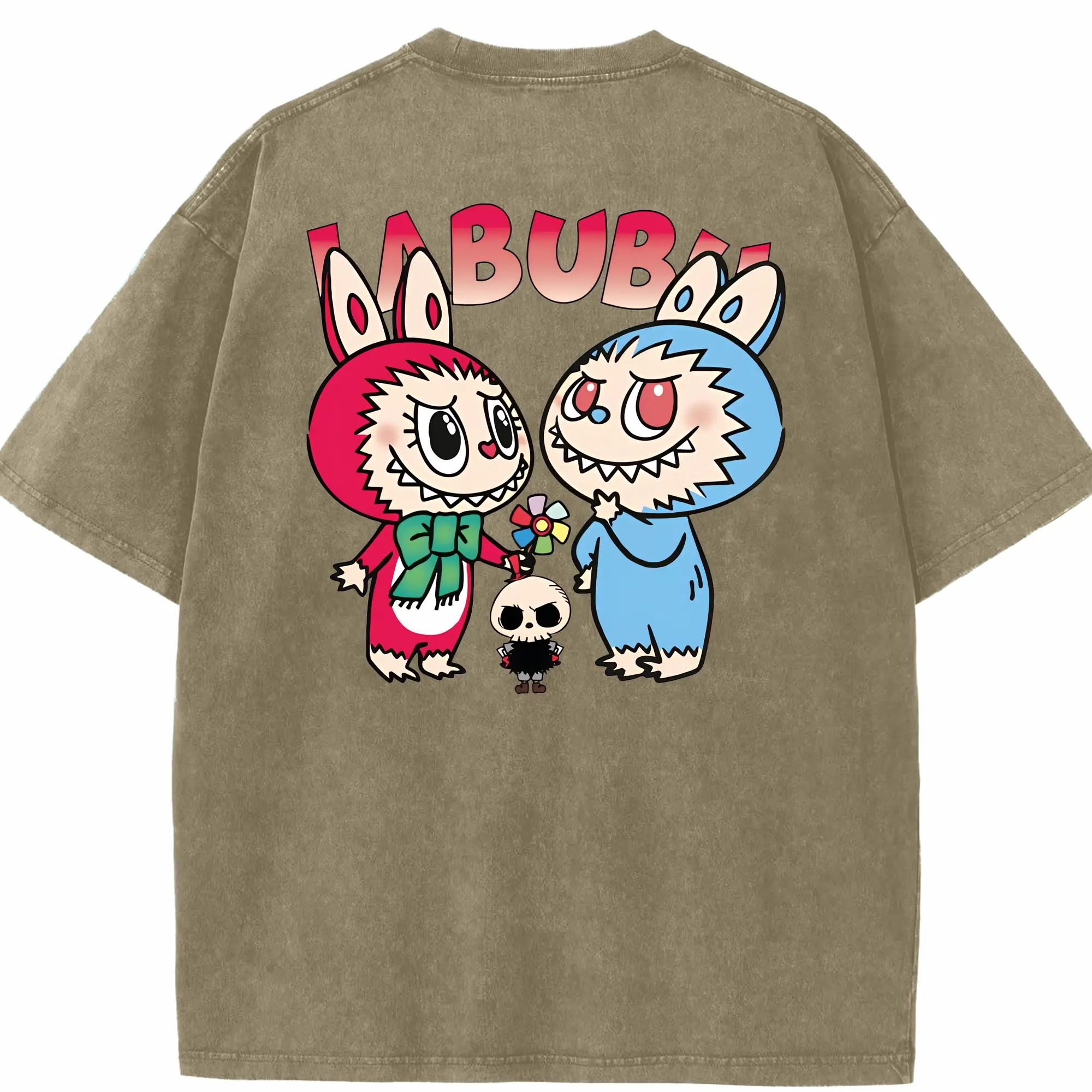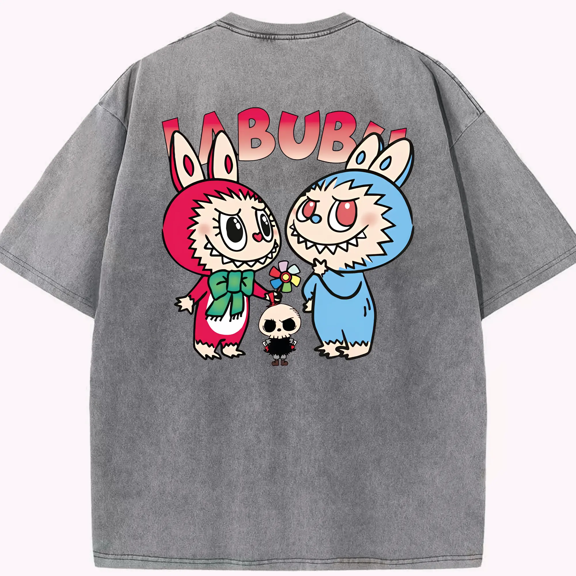 ラブブ グッズ モココ - 綿100% ヴィンテージ風 半袖Tシャツ ・ フロントプリント ・ 柔らか肌触り ・ 通気性 快適 ・ スポーツ カジュアル 外出用