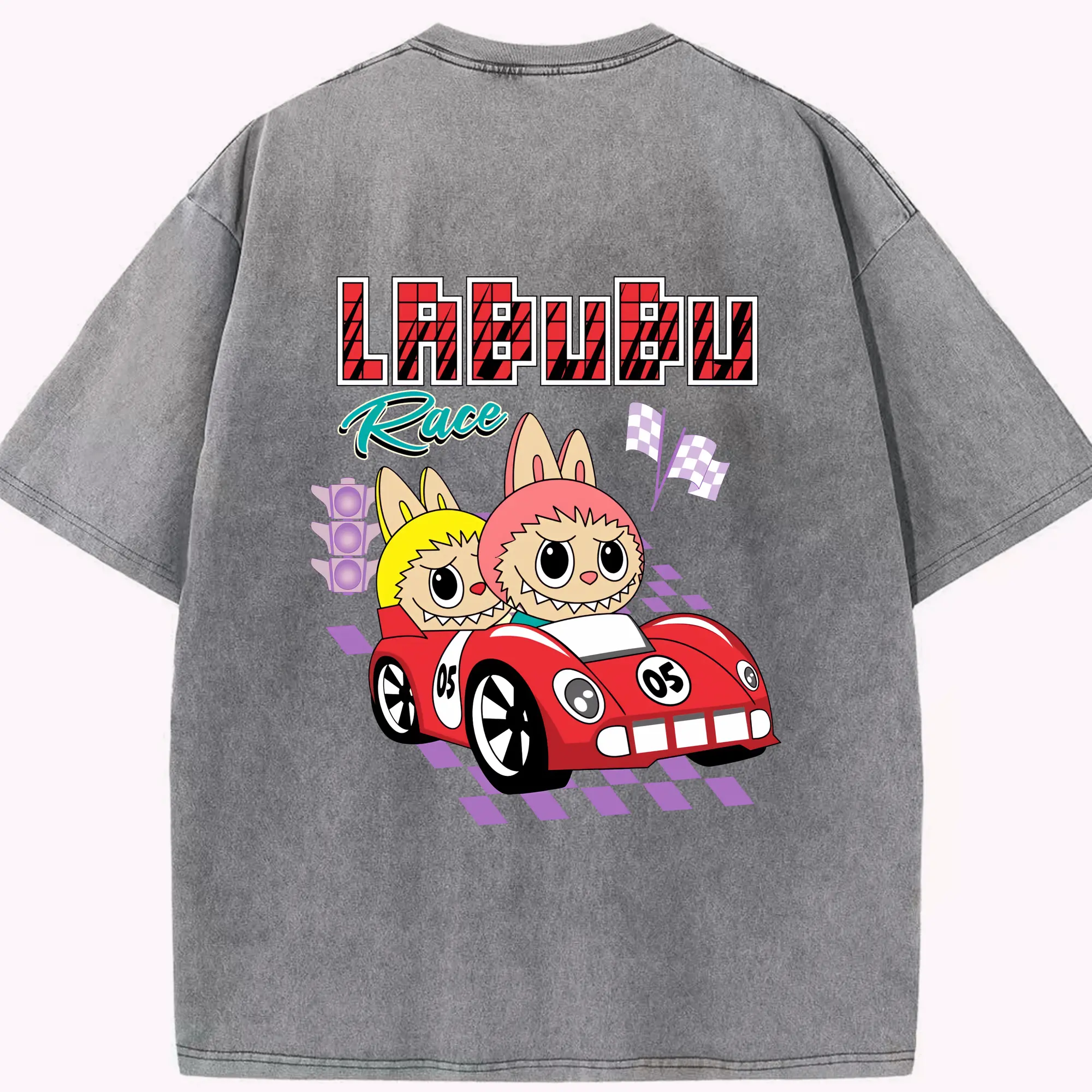 ラブブ グッズ モココ - 綿100% ヴィンテージ風 半袖Tシャツ ・ フロントプリント ・ 柔らか肌触り ・ 通気性 快適 ・ スポーツ カジュアル 外出用
