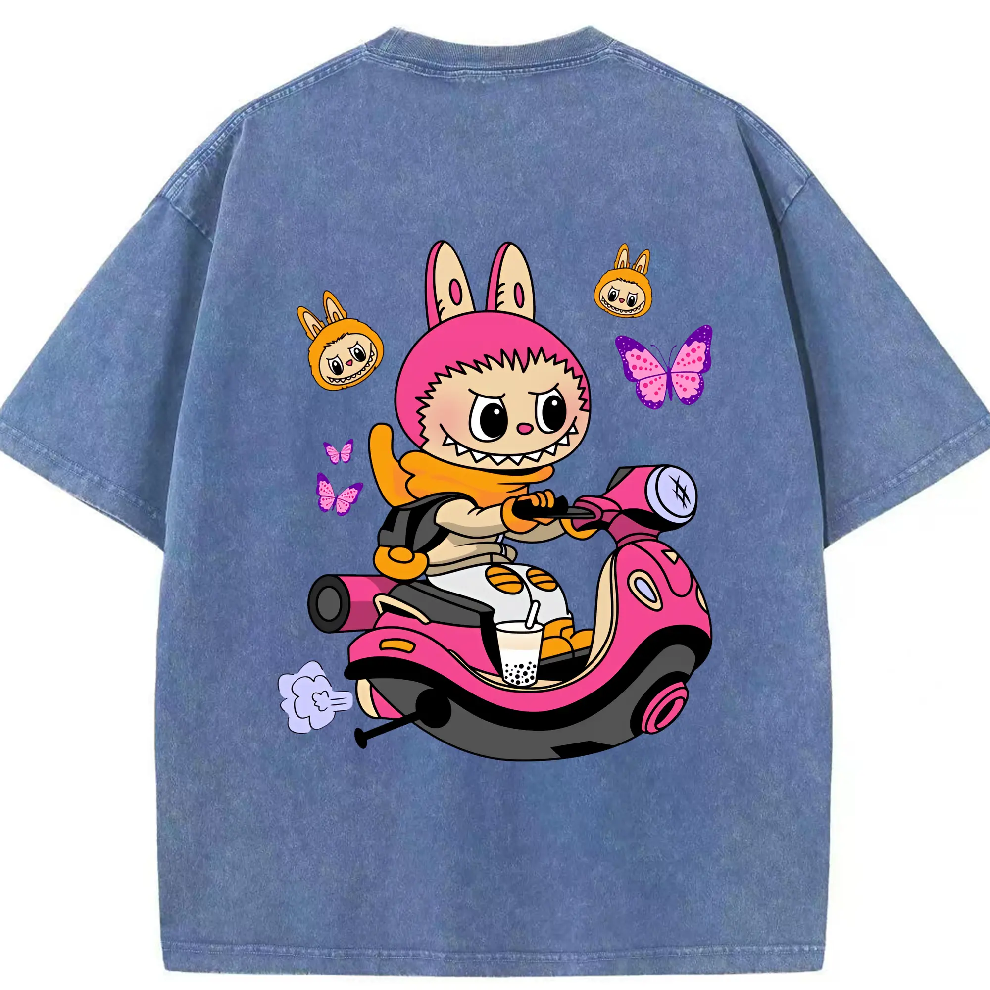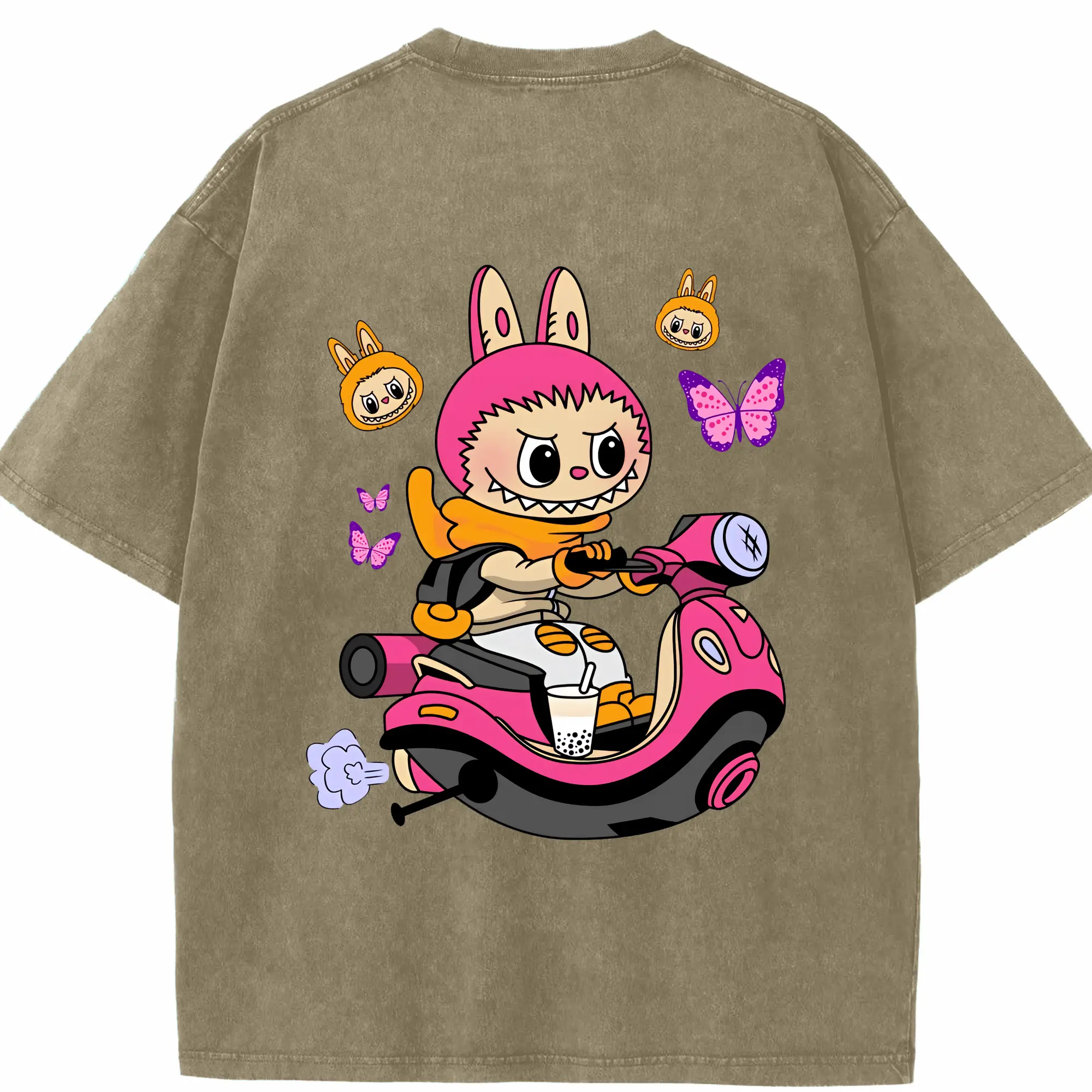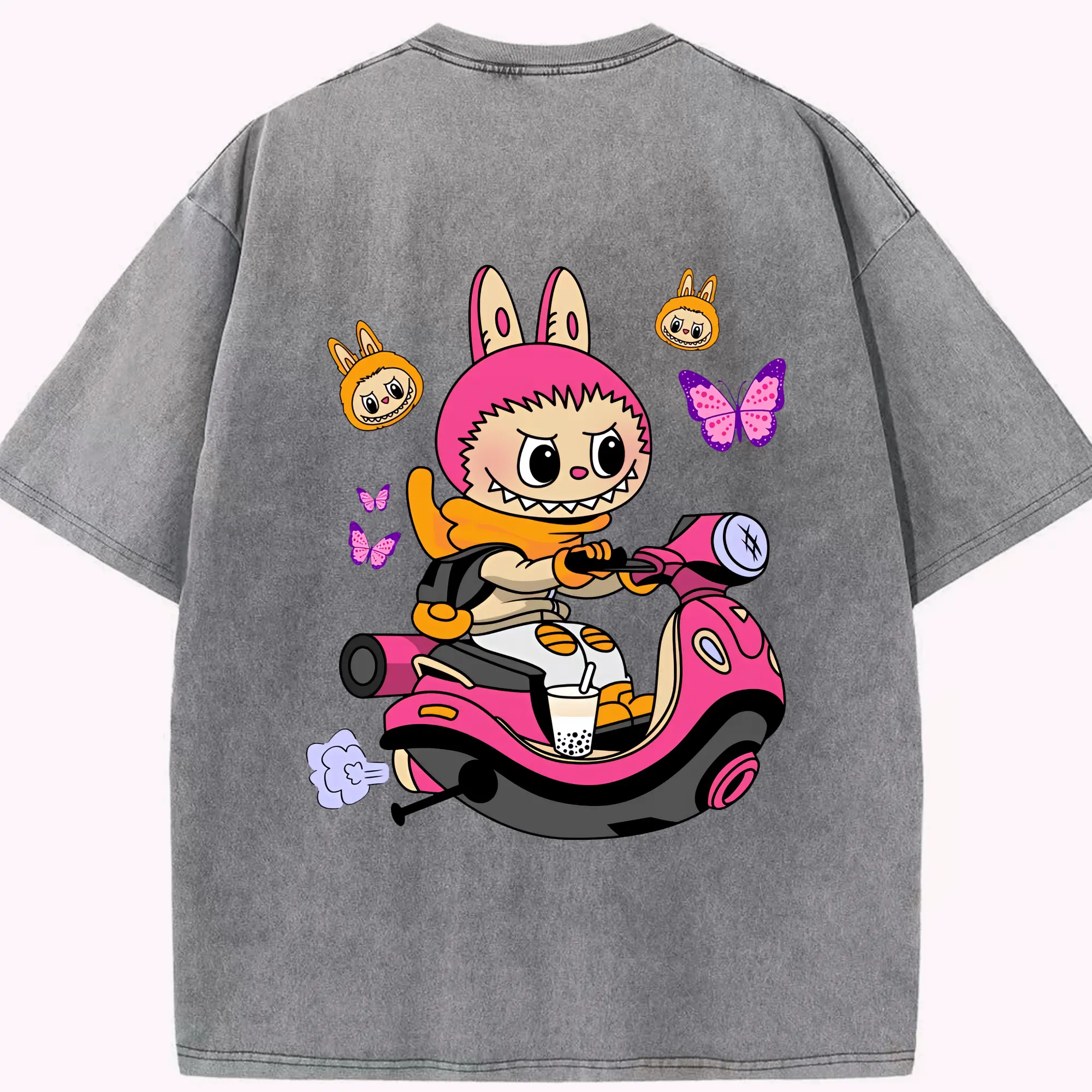 ラブブ グッズ モココ - 綿100% ヴィンテージ風 半袖Tシャツ ・ フロントプリント ・ 柔らか肌触り ・ 通気性 快適 ・ スポーツ カジュアル 外出用