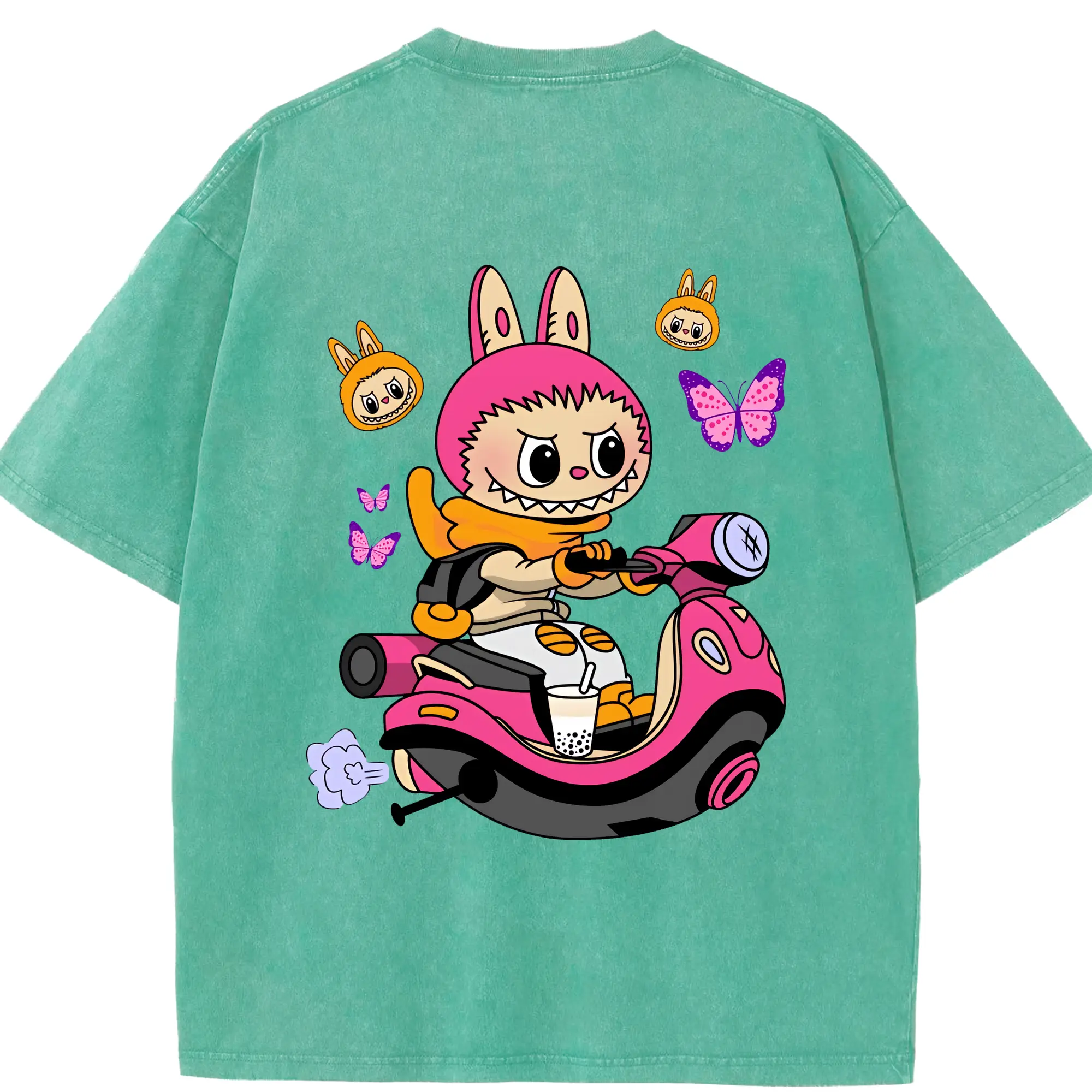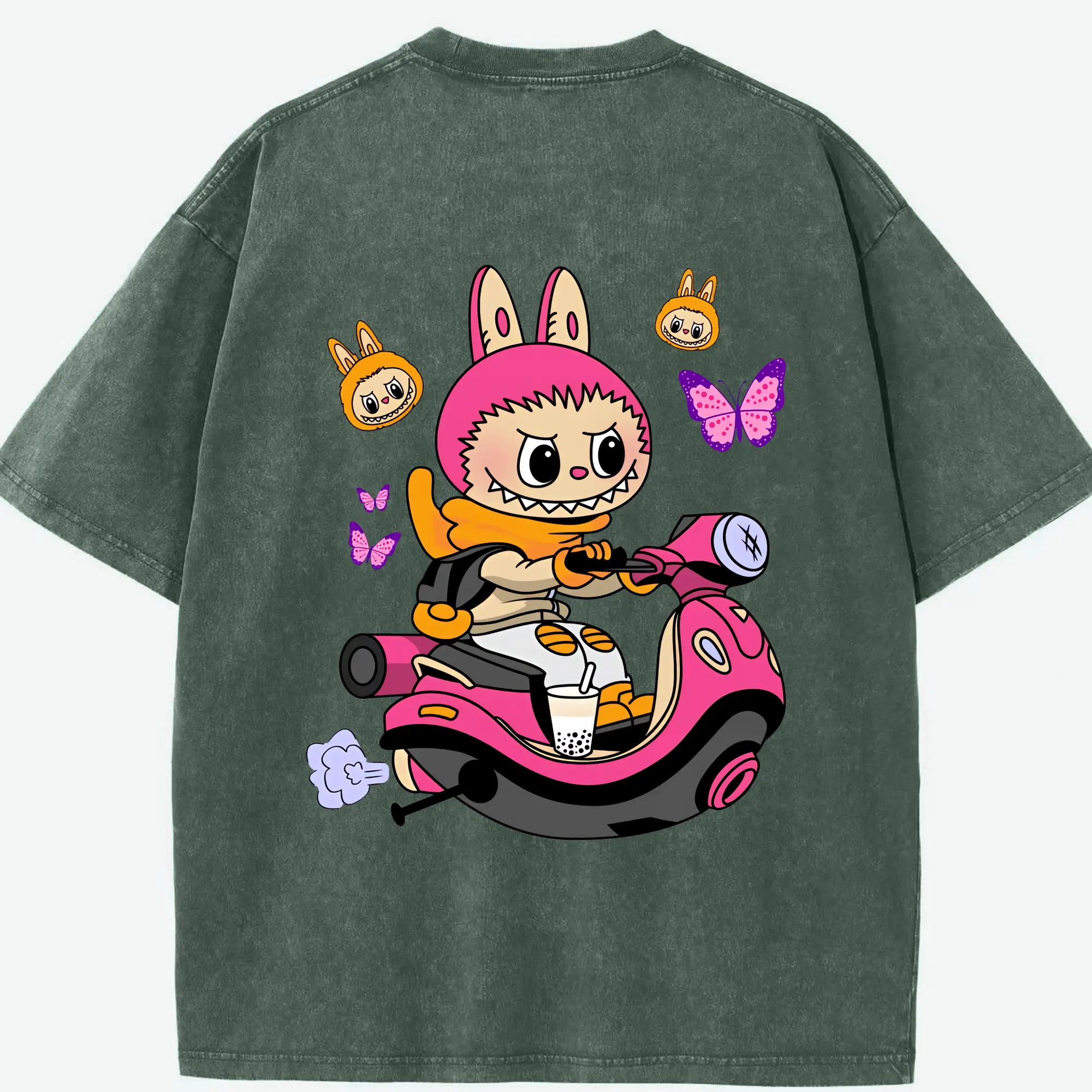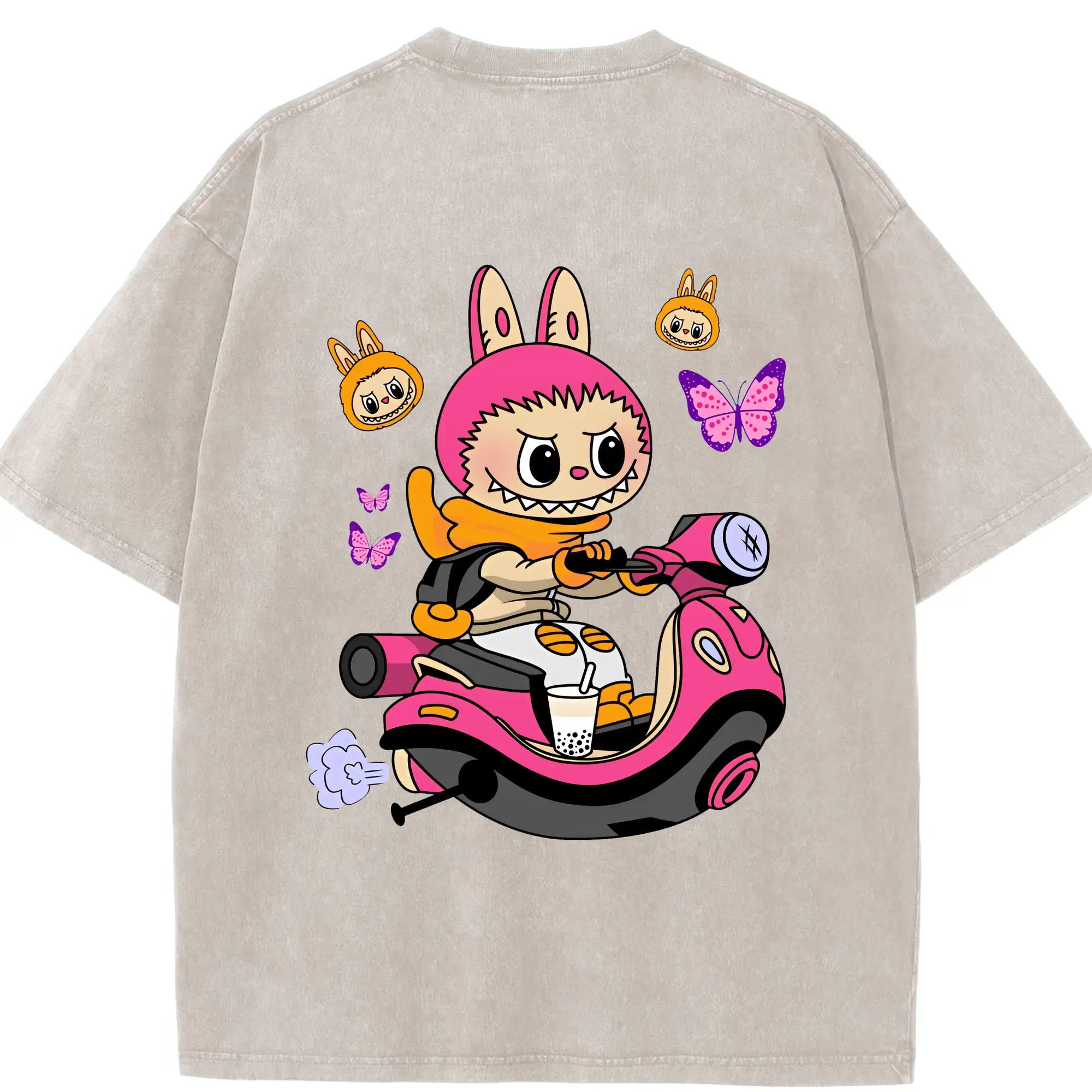 ラブブ グッズ モココ - 綿100% ヴィンテージ風 半袖Tシャツ ・ フロントプリント ・ 柔らか肌触り ・ 通気性 快適 ・ スポーツ カジュアル 外出用