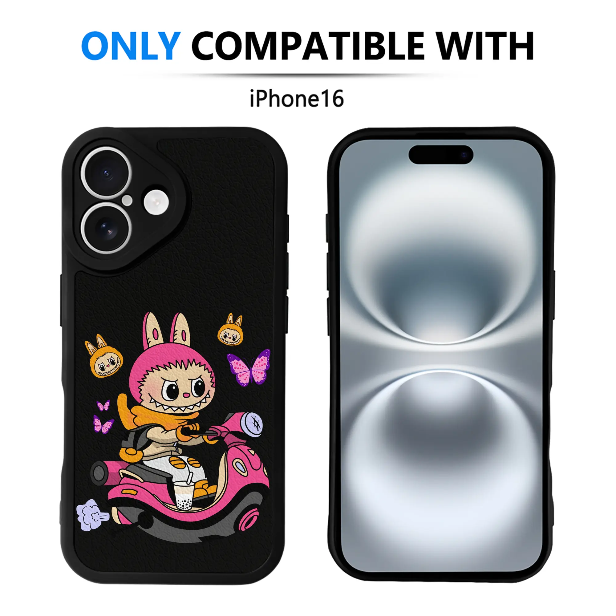 ラブブ グッズ モココ - IPhone 16シリーズ対応 ・ シリコンスマホケース ・ レザー調 ・ 高精度フィット ・ 耐衝撃 ・ ワイヤレス充電対応 ・ 精密カット
