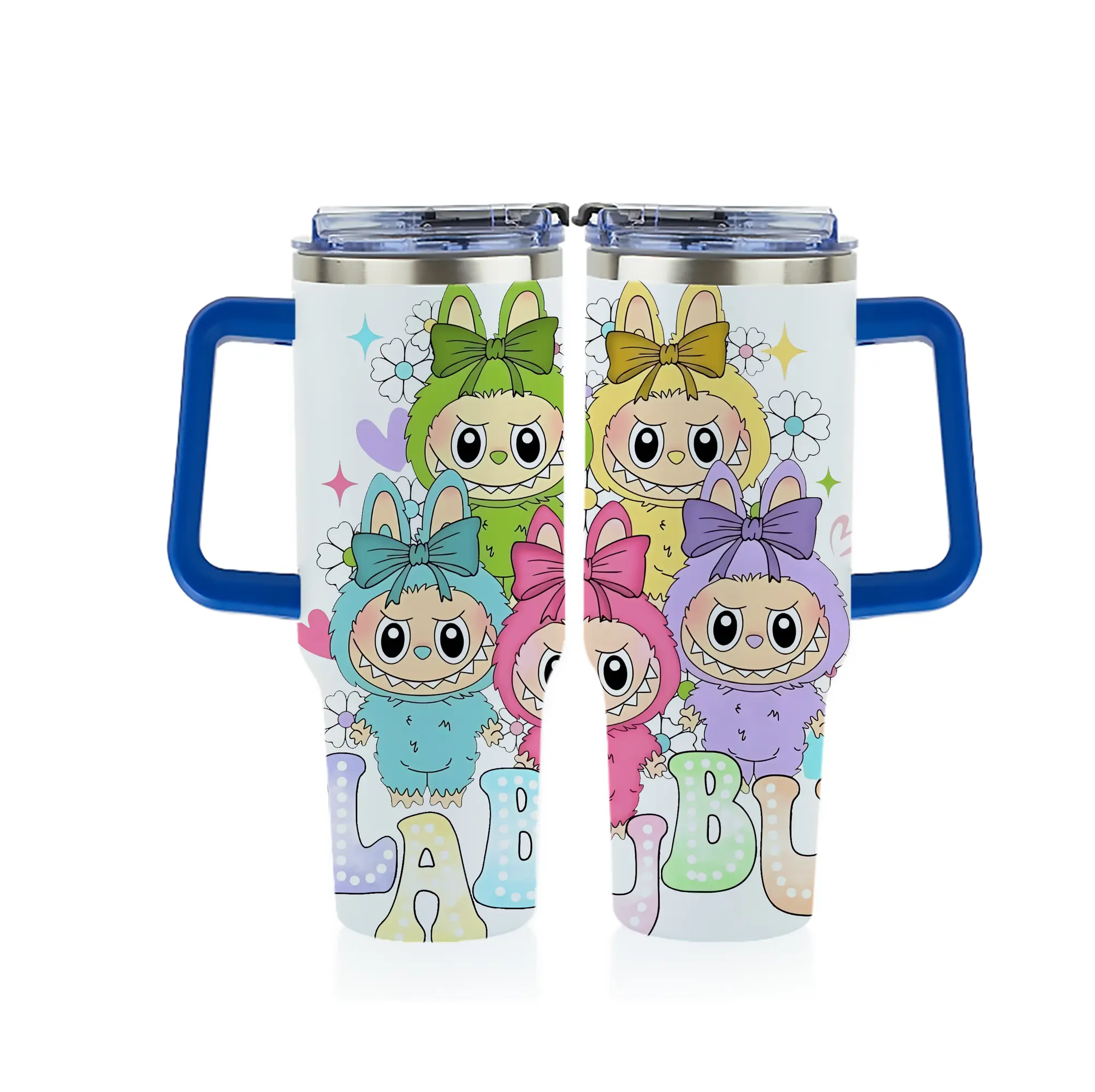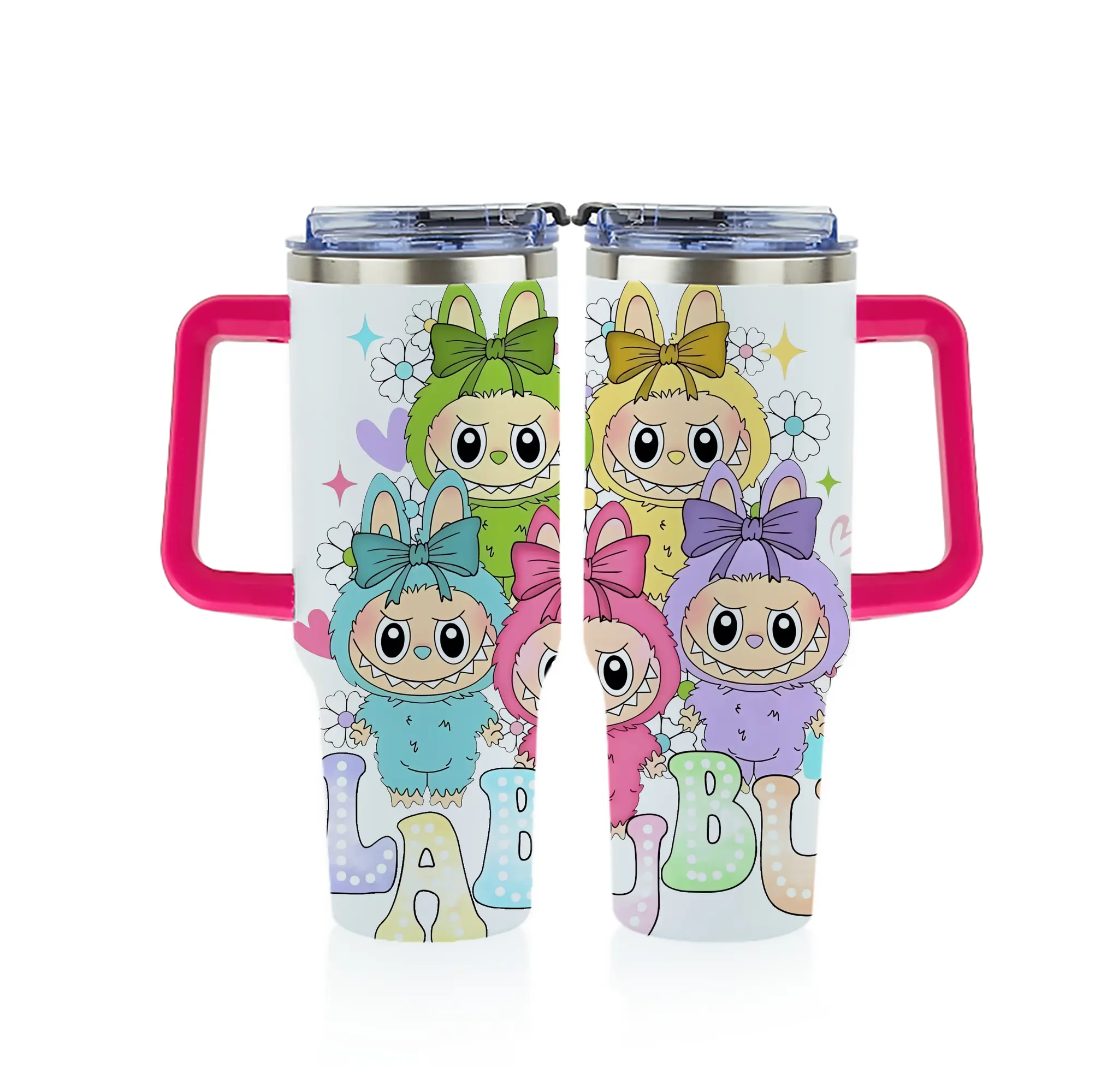 ラブブ グッズ ラブブ - 1200mL フルプリント車用タンブラー ・ 304ステンレス 内側 ・ 201ステンレス 外側 ・ 保温 保冷 ・ 通勤 ドライブ アウトドア用