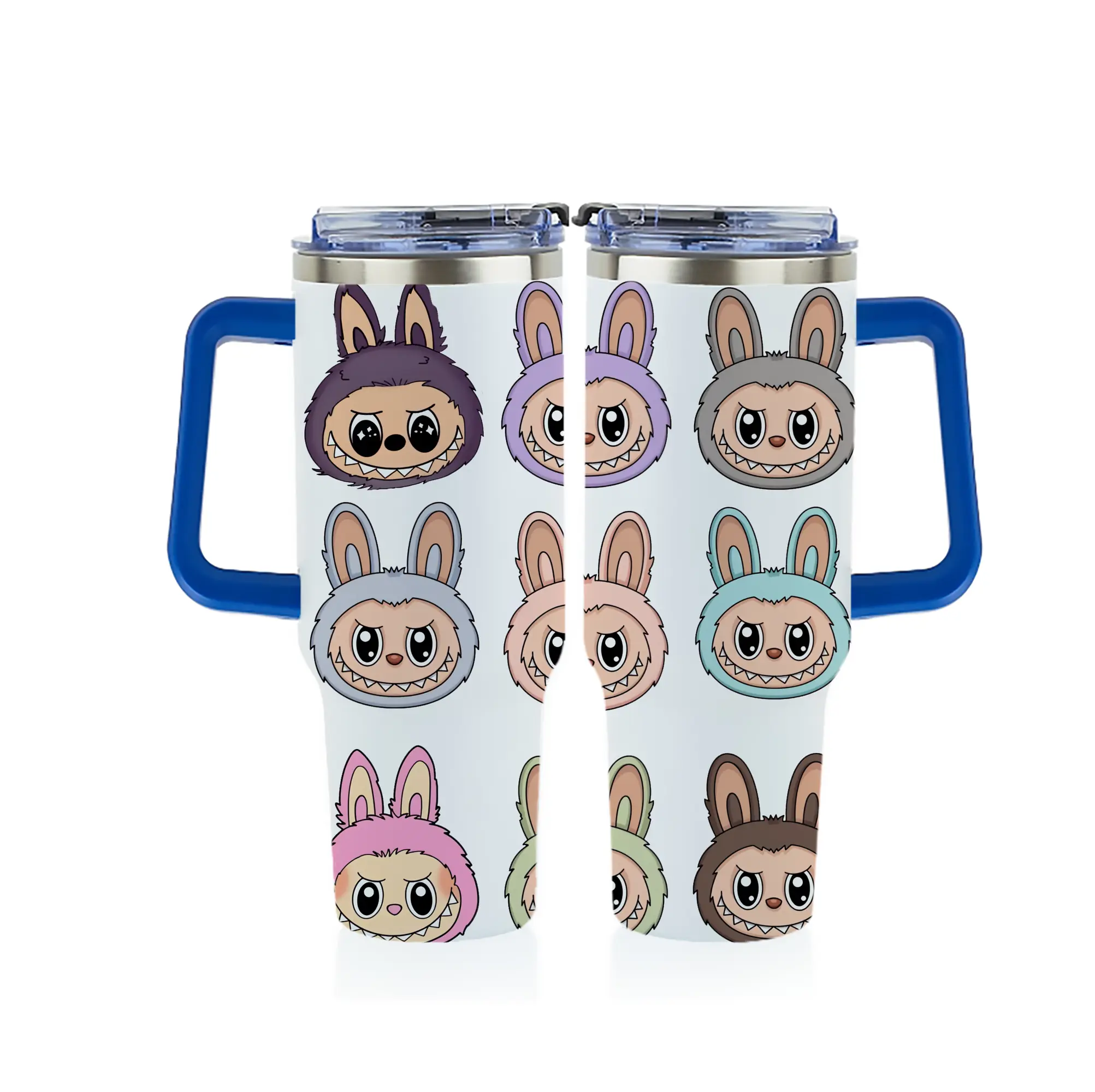 ラブブ グッズ ラブブ - 1200mL フルプリント車用タンブラー ・ 304ステンレス 内側 ・ 201ステンレス 外側 ・ 保温 保冷 ・ 通勤 ドライブ アウトドア用