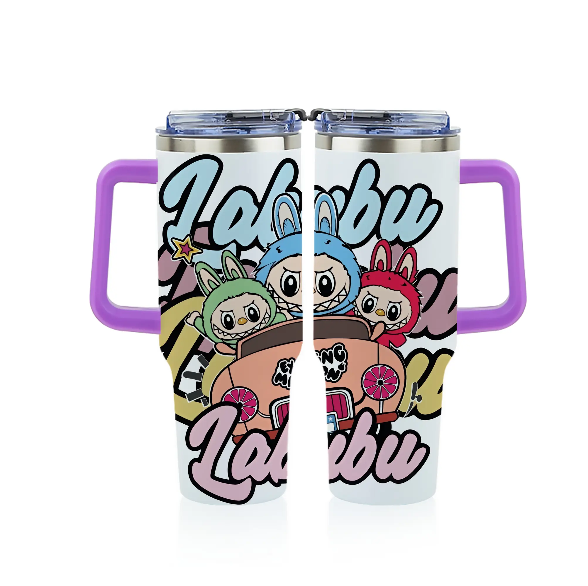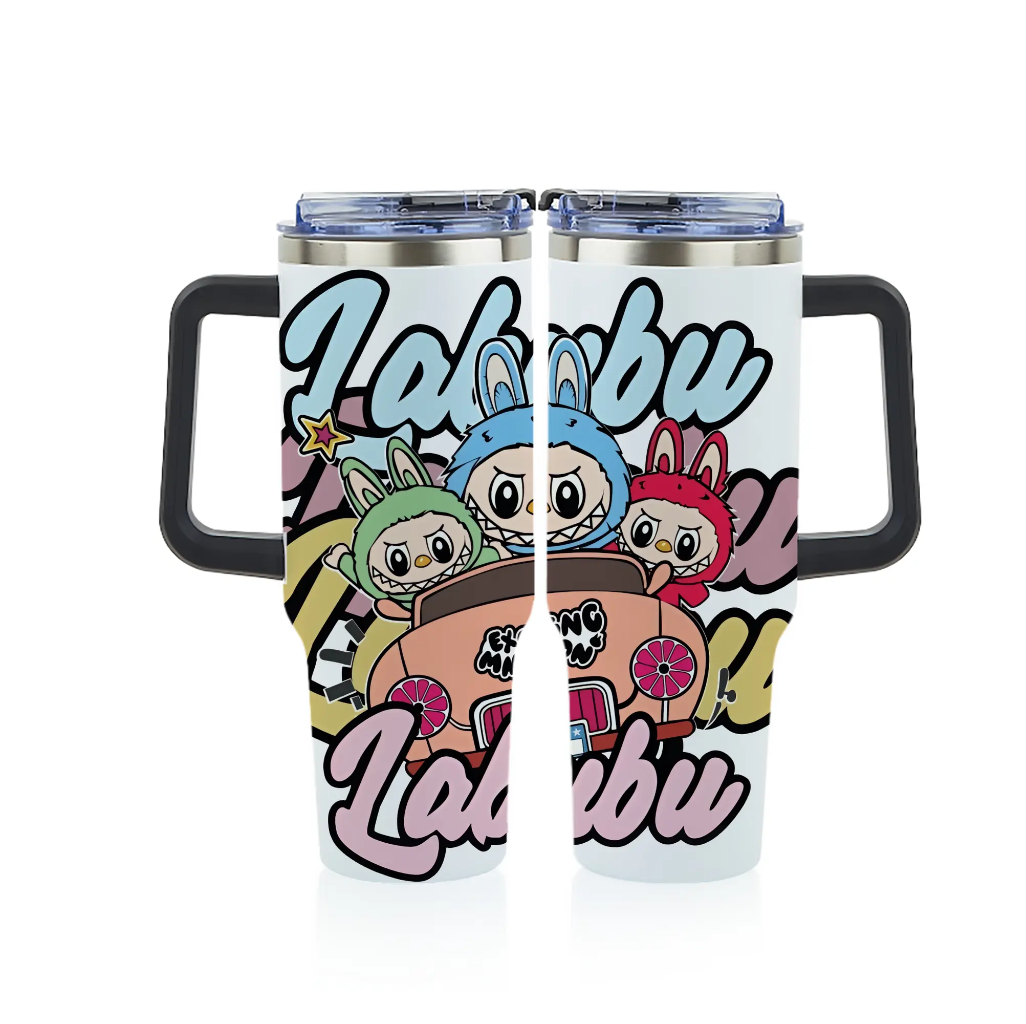 ラブブ グッズ ラブブ - 1200mL フルプリント車用タンブラー ・ 304ステンレス 内側 ・ 201ステンレス 外側 ・ 保温 保冷 ・ 通勤 ドライブ アウトドア用