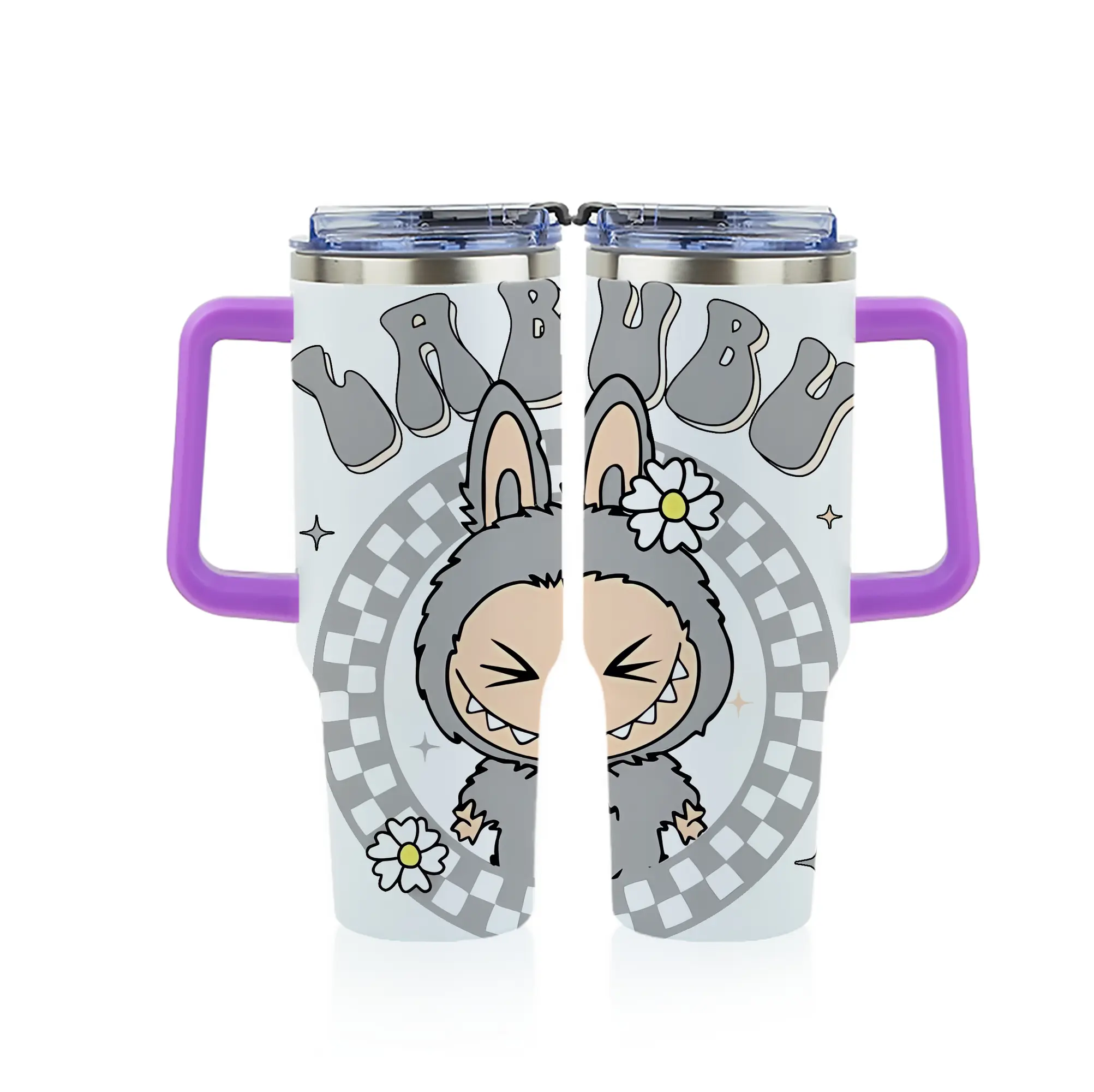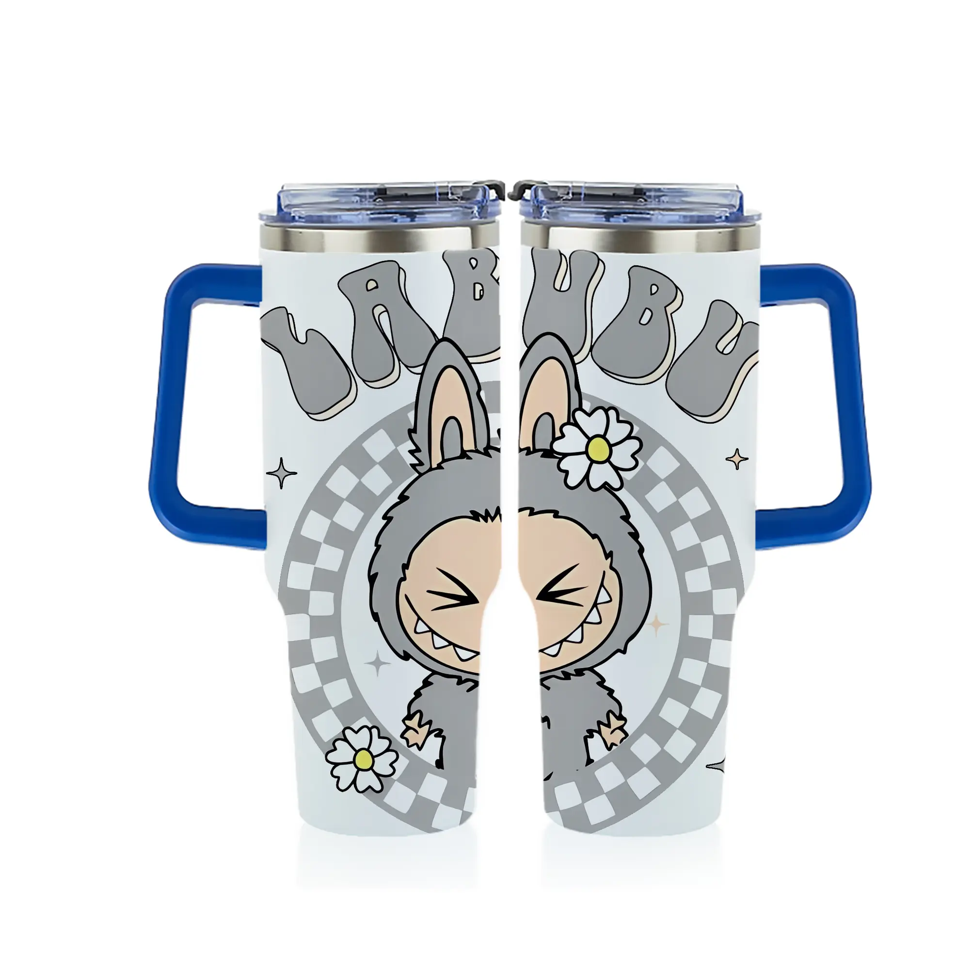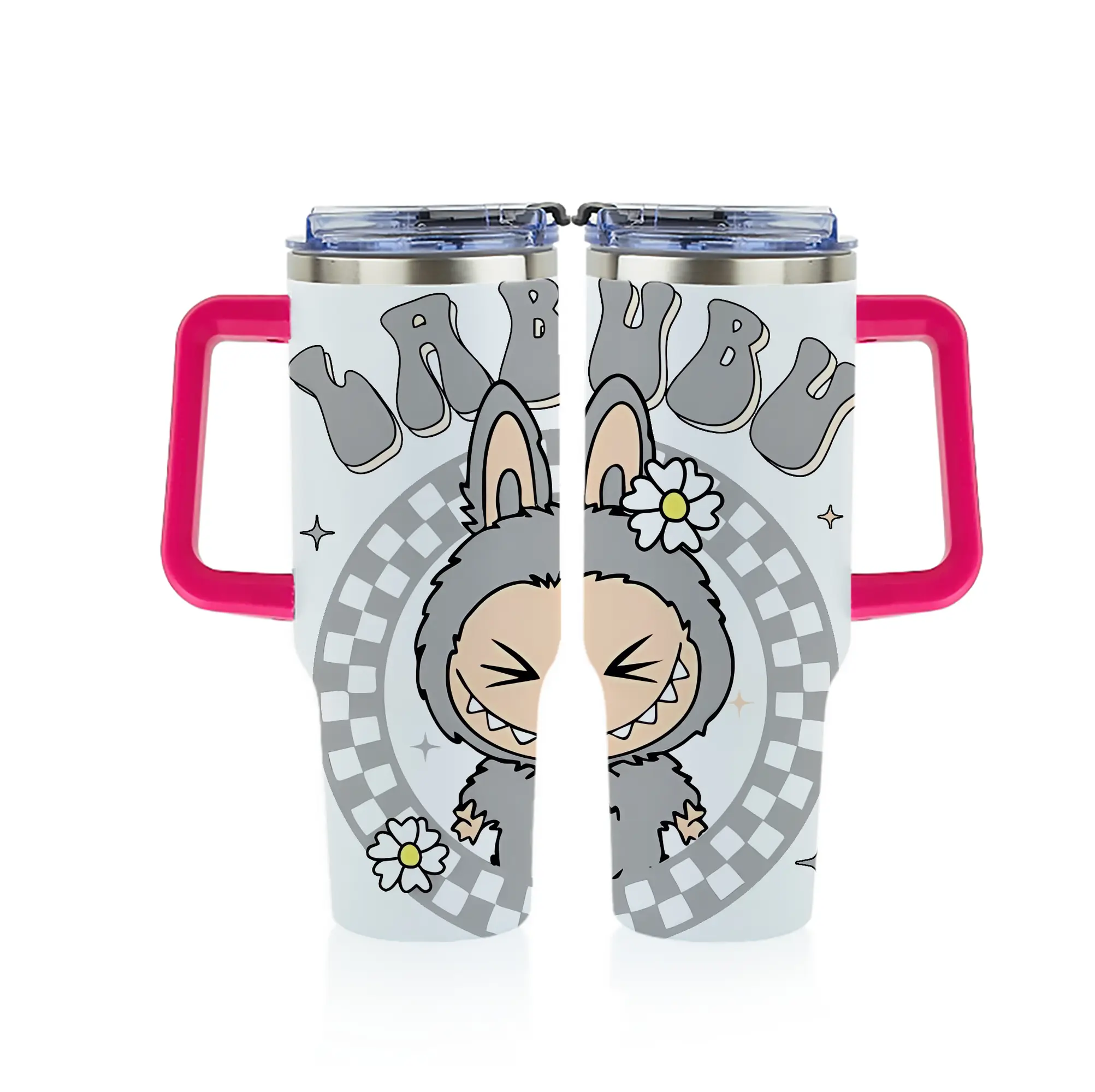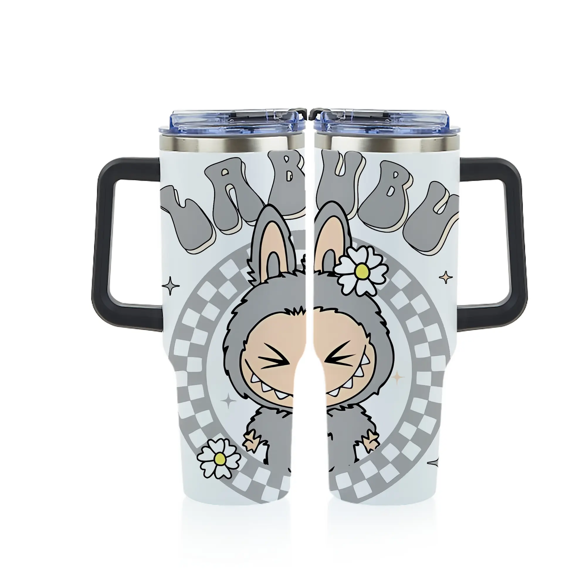 ラブブ グッズ ラブブ - 1200mL フルプリント車用タンブラー ・ 304ステンレス 内側 ・ 201ステンレス 外側 ・ 保温 保冷 ・ 通勤 ドライブ アウトドア用