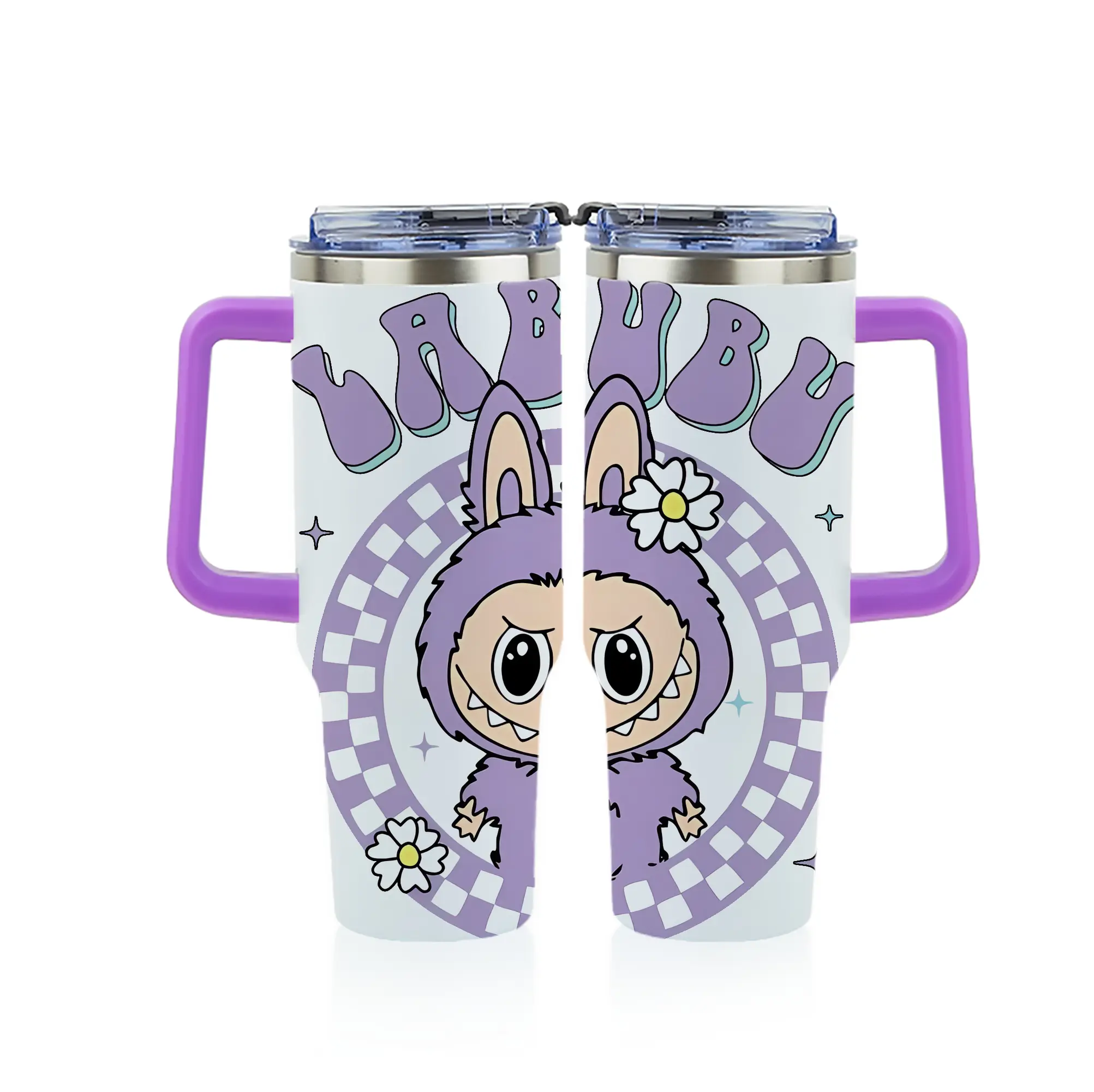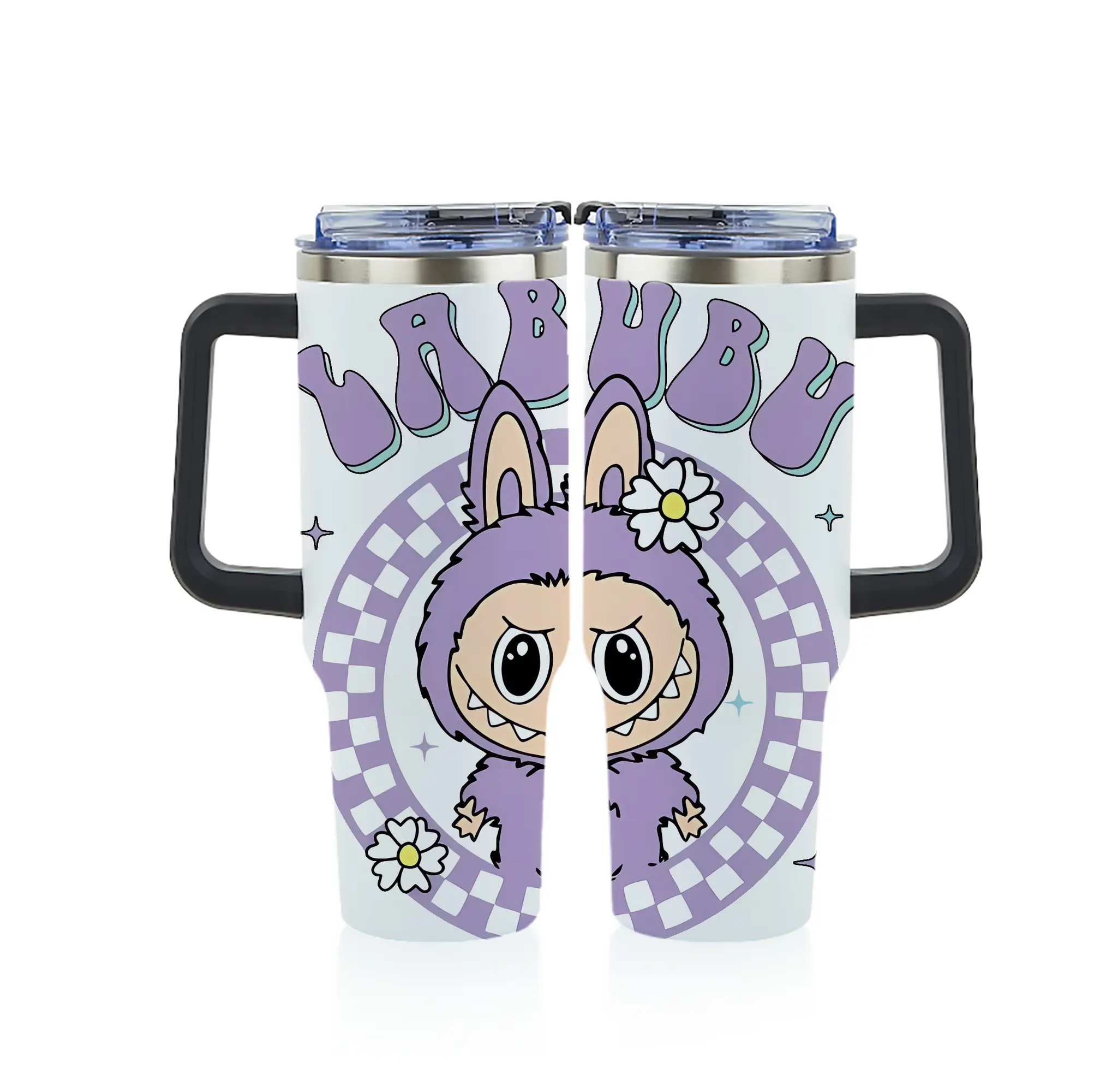 ラブブ グッズ ラブブ - 1200mL フルプリント車用タンブラー ・ 304ステンレス 内側 ・ 201ステンレス 外側 ・ 保温 保冷 ・ 通勤 ドライブ アウトドア用