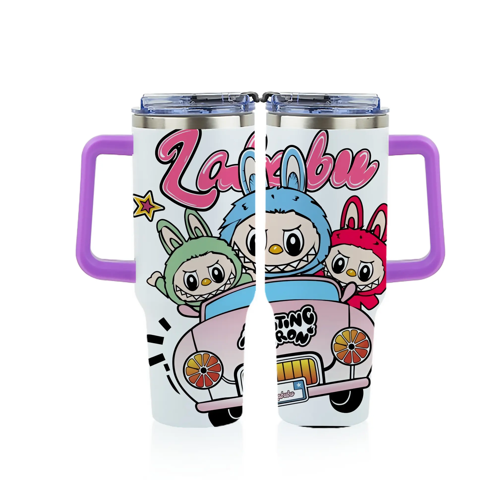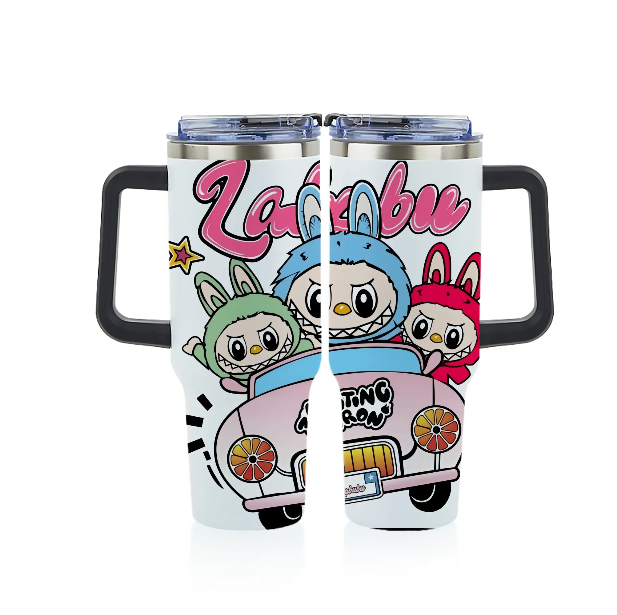 ラブブ グッズ ラブブ - 1200mL フルプリント車用タンブラー ・ 304ステンレス 内側 ・ 201ステンレス 外側 ・ 保温 保冷 ・ 通勤 ドライブ アウトドア用