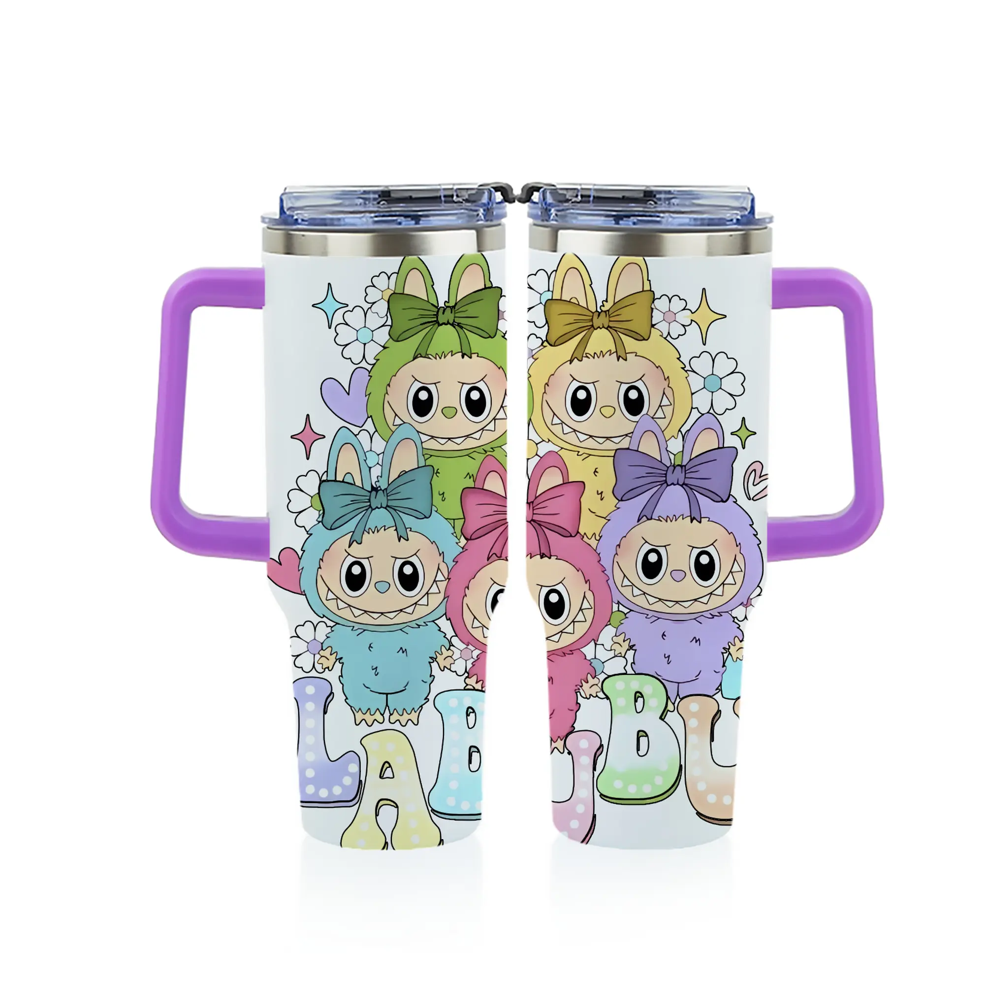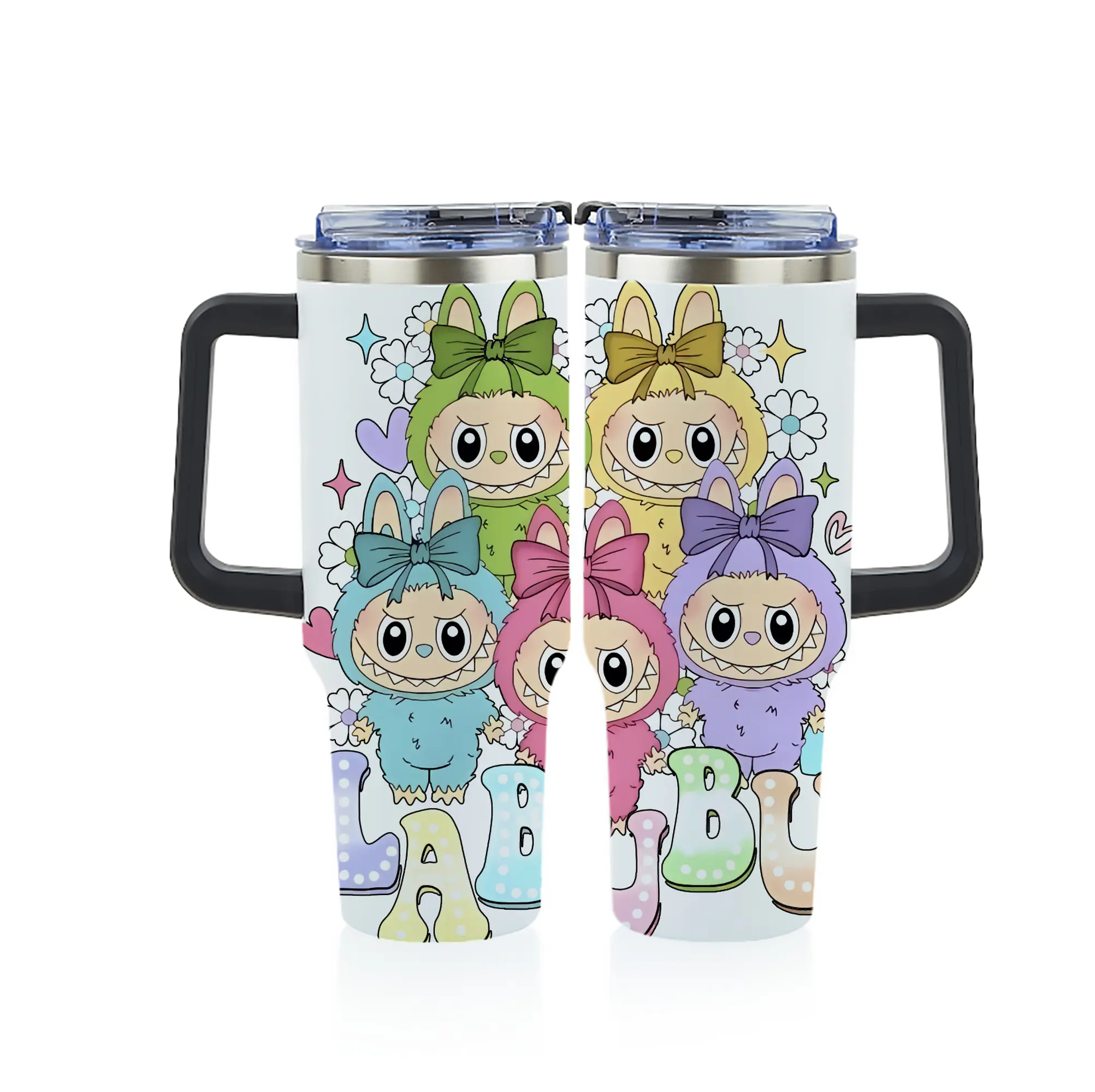 ラブブ グッズ ラブブ - 1200mL フルプリント車用タンブラー ・ 304ステンレス 内側 ・ 201ステンレス 外側 ・ 保温 保冷 ・ 通勤 ドライブ アウトドア用