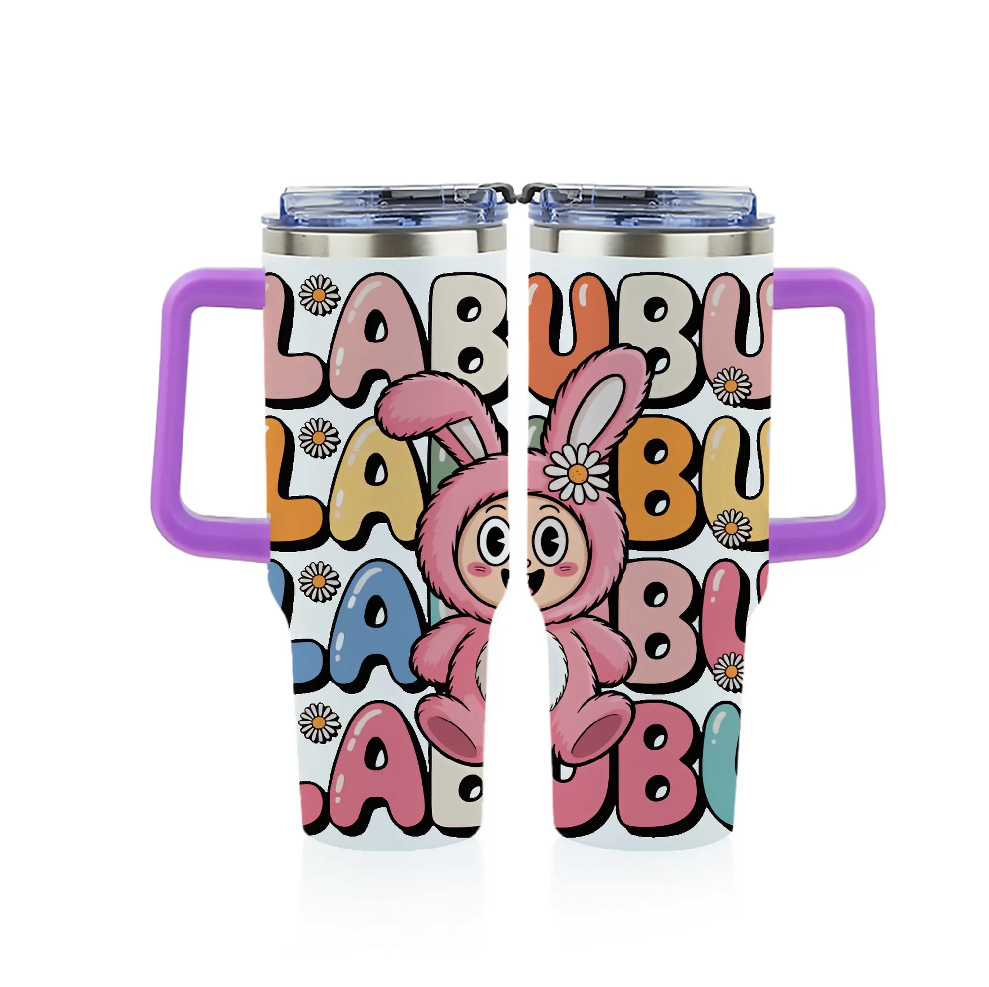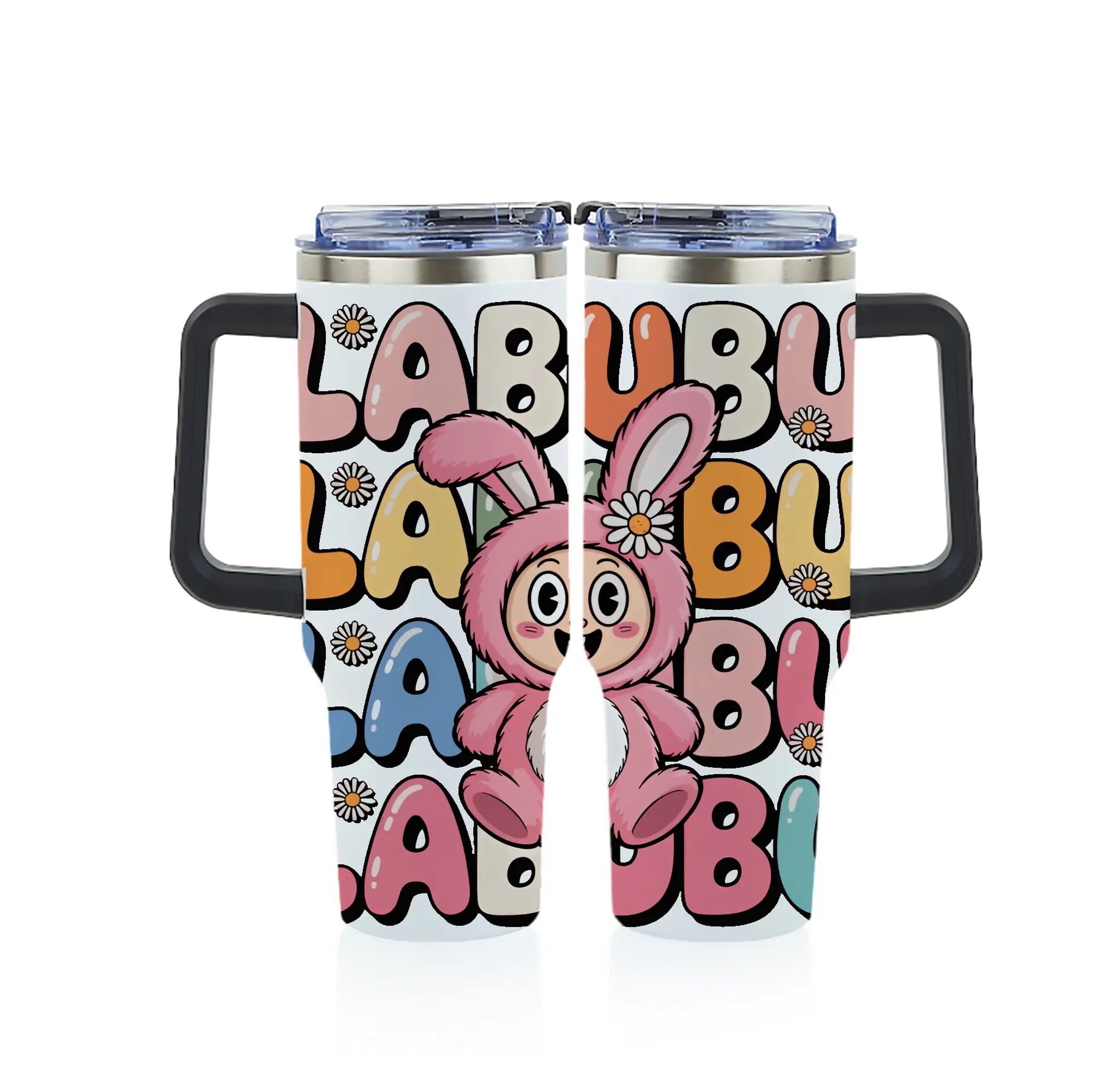 ラブブ グッズ ラブブ - 1200mL フルプリント車用タンブラー ・ 304ステンレス 内側 ・ 201ステンレス 外側 ・ 保温 保冷 ・ 通勤 ドライブ アウトドア用