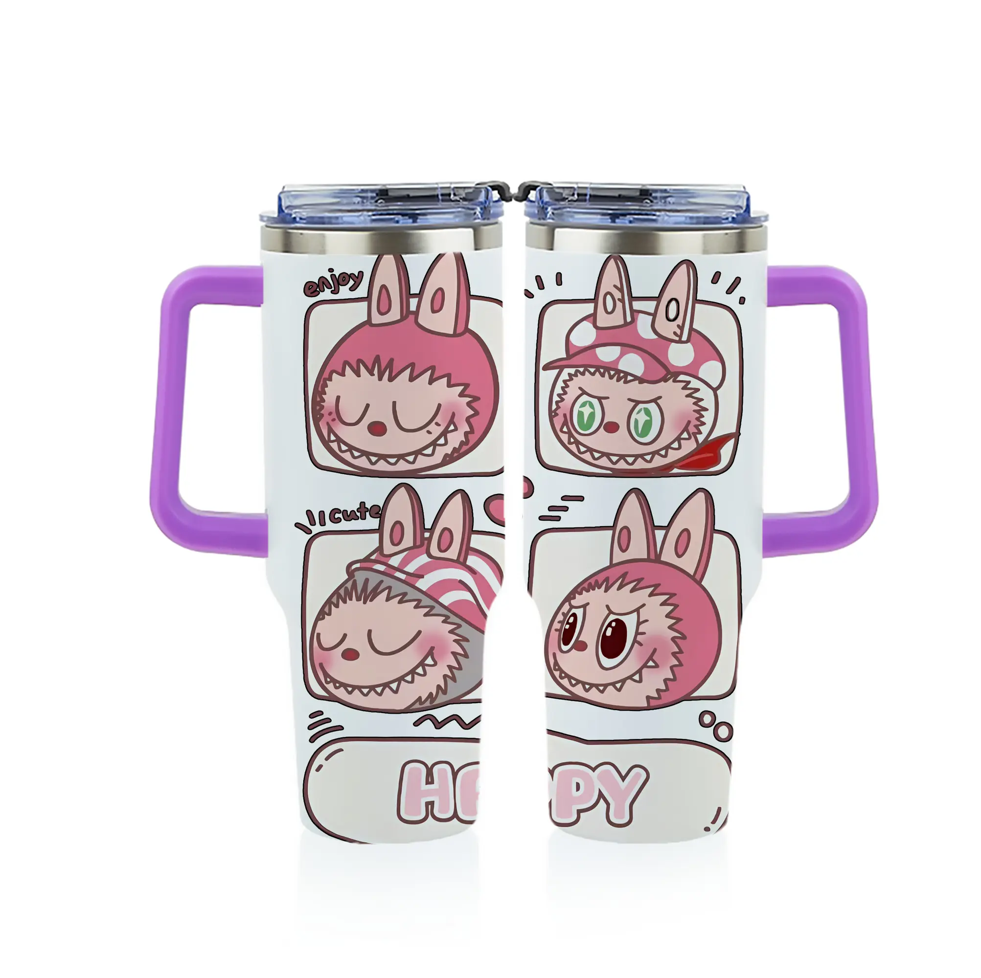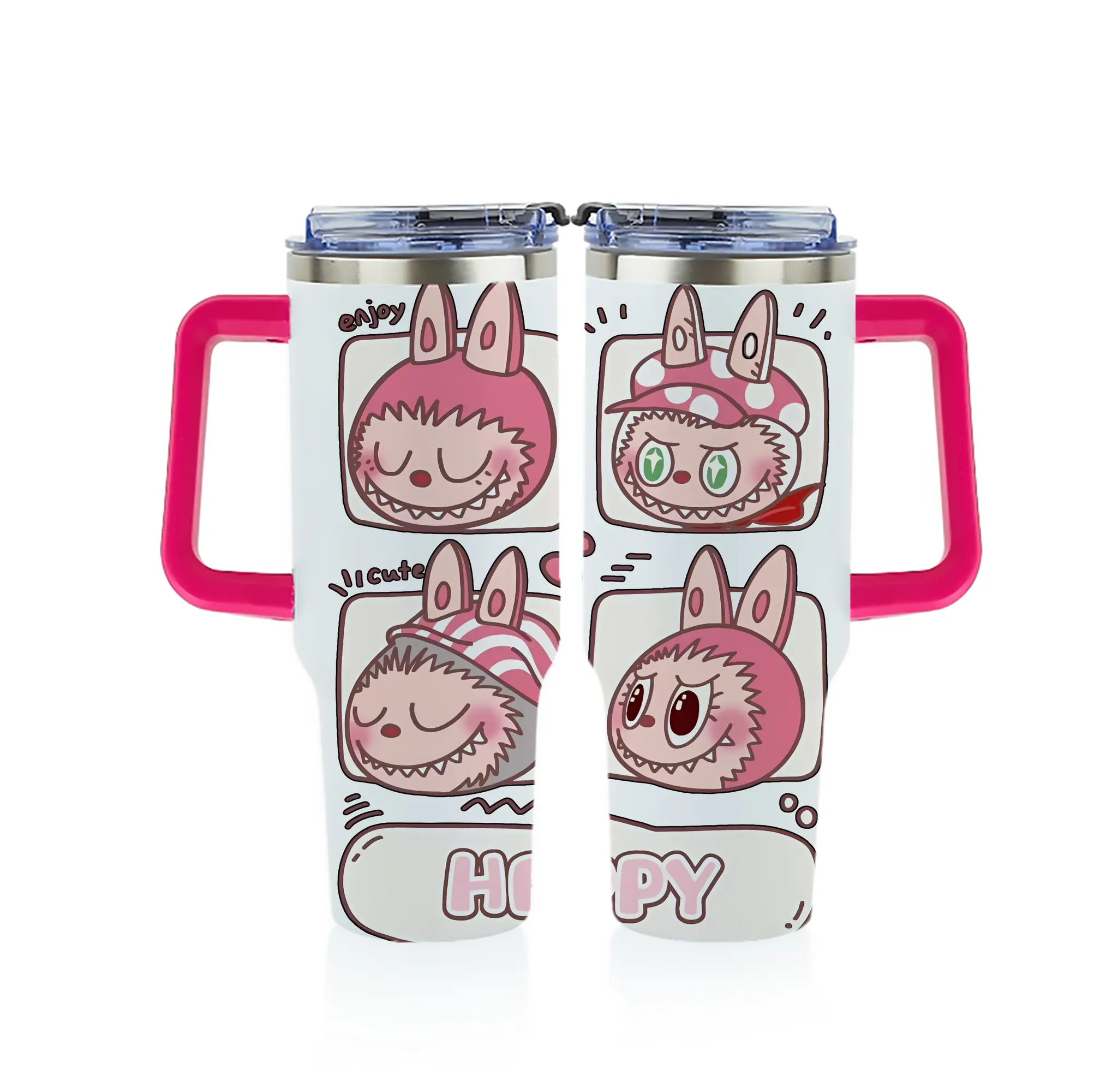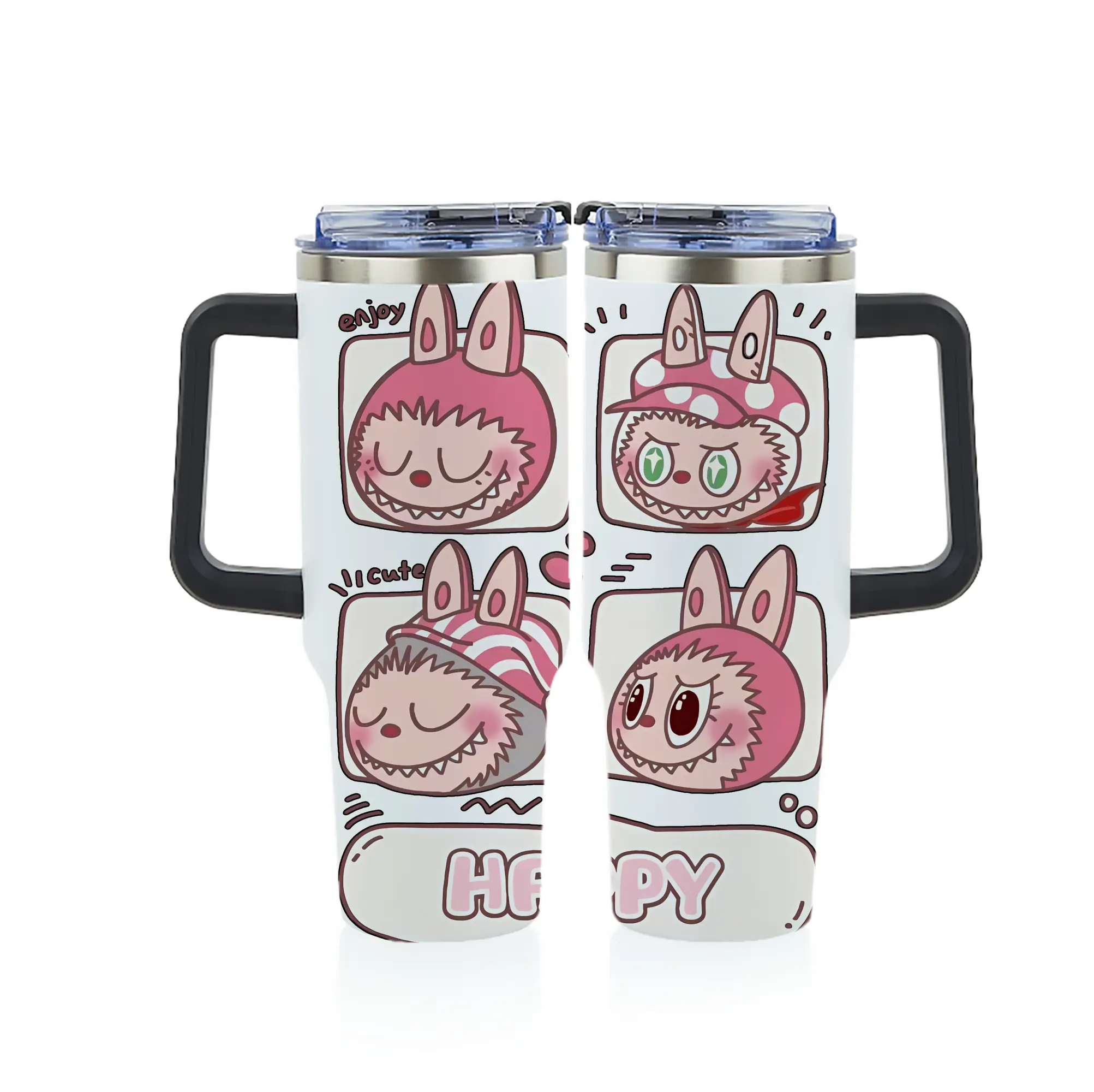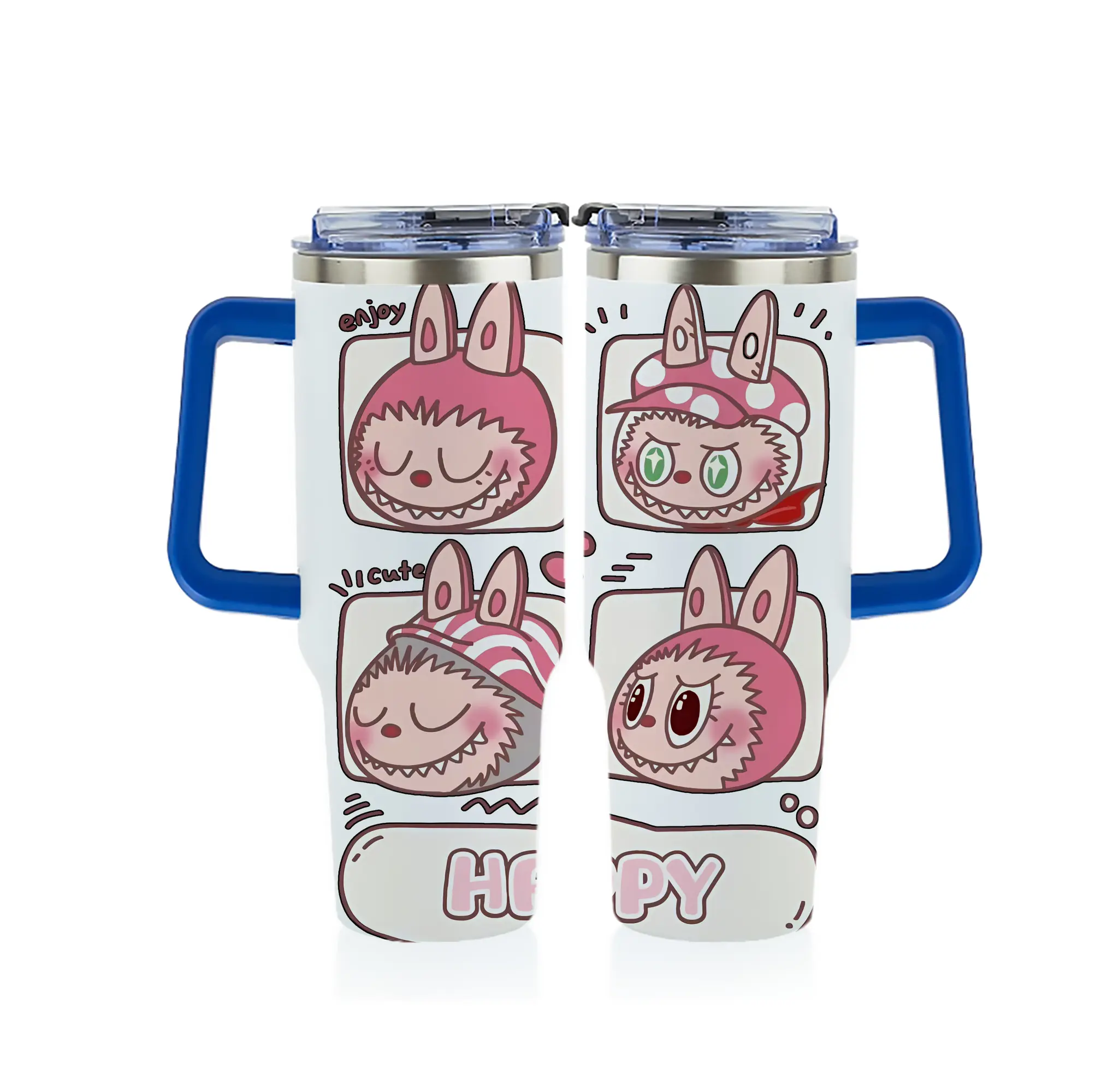 ラブブ グッズ ラブブ - 1200mL フルプリント車用タンブラー ・ 304ステンレス 内側 ・ 201ステンレス 外側 ・ 保温 保冷 ・ 通勤 ドライブ アウトドア用