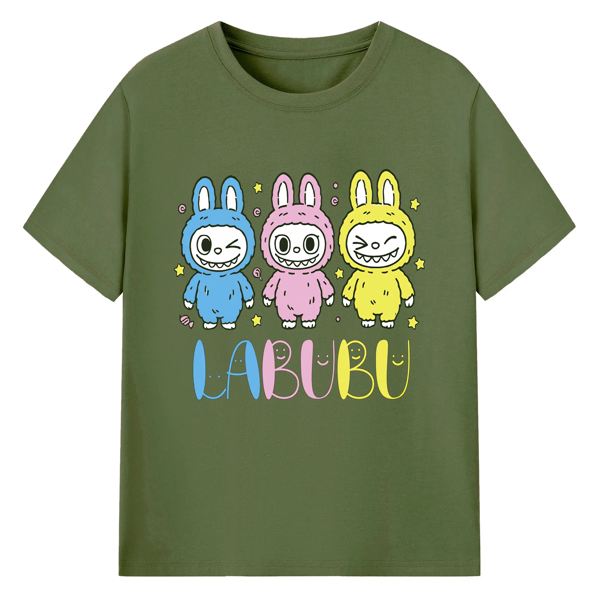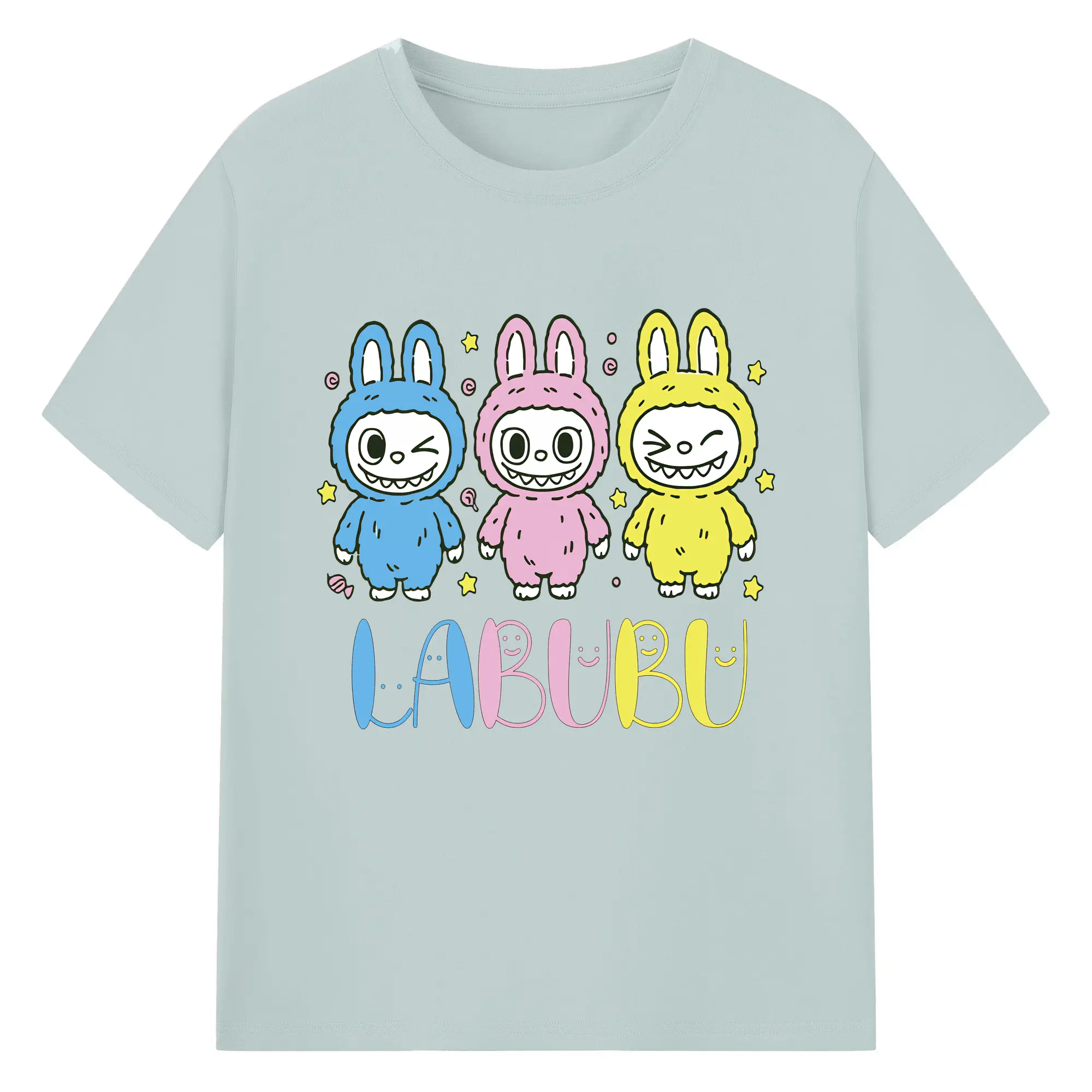 ラブブ グッズ ラブブ - 綿100% 半袖Tシャツ ・ バックプリント ・ 快適 通気性 ・ 日常使い 散歩 スポーツ用
