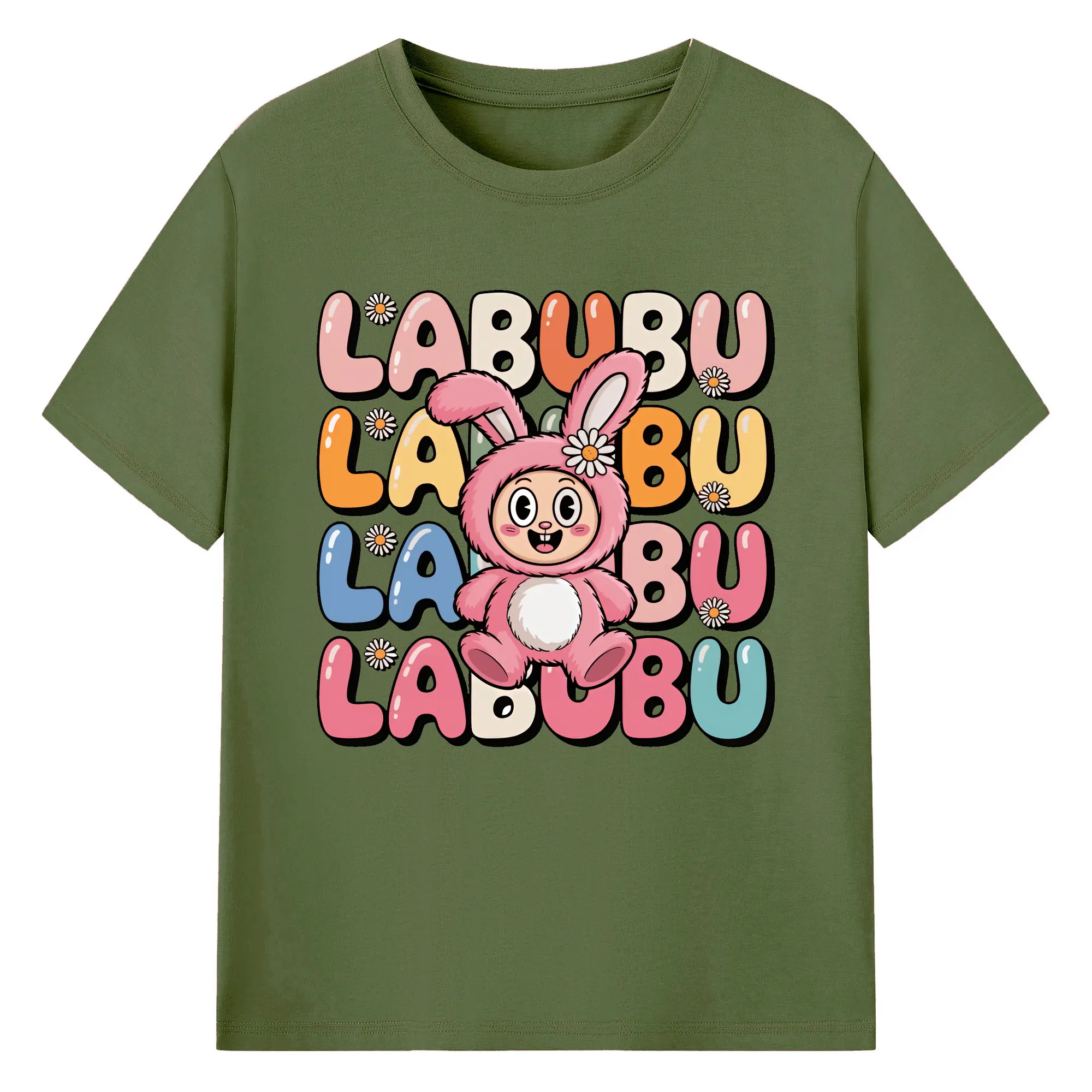ラブブ グッズ ラブブ - 綿100% 半袖Tシャツ ・ バックプリント ・ 快適 通気性 ・ 日常使い 散歩 スポーツ用