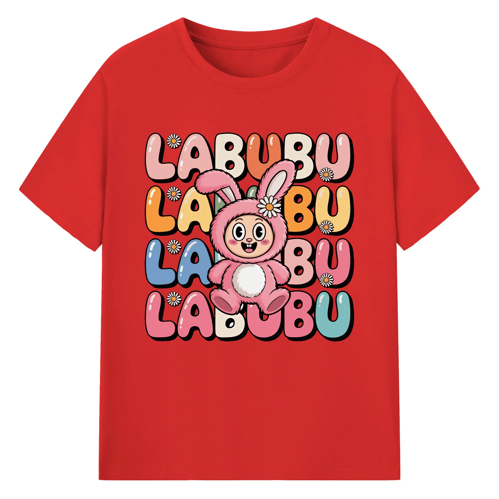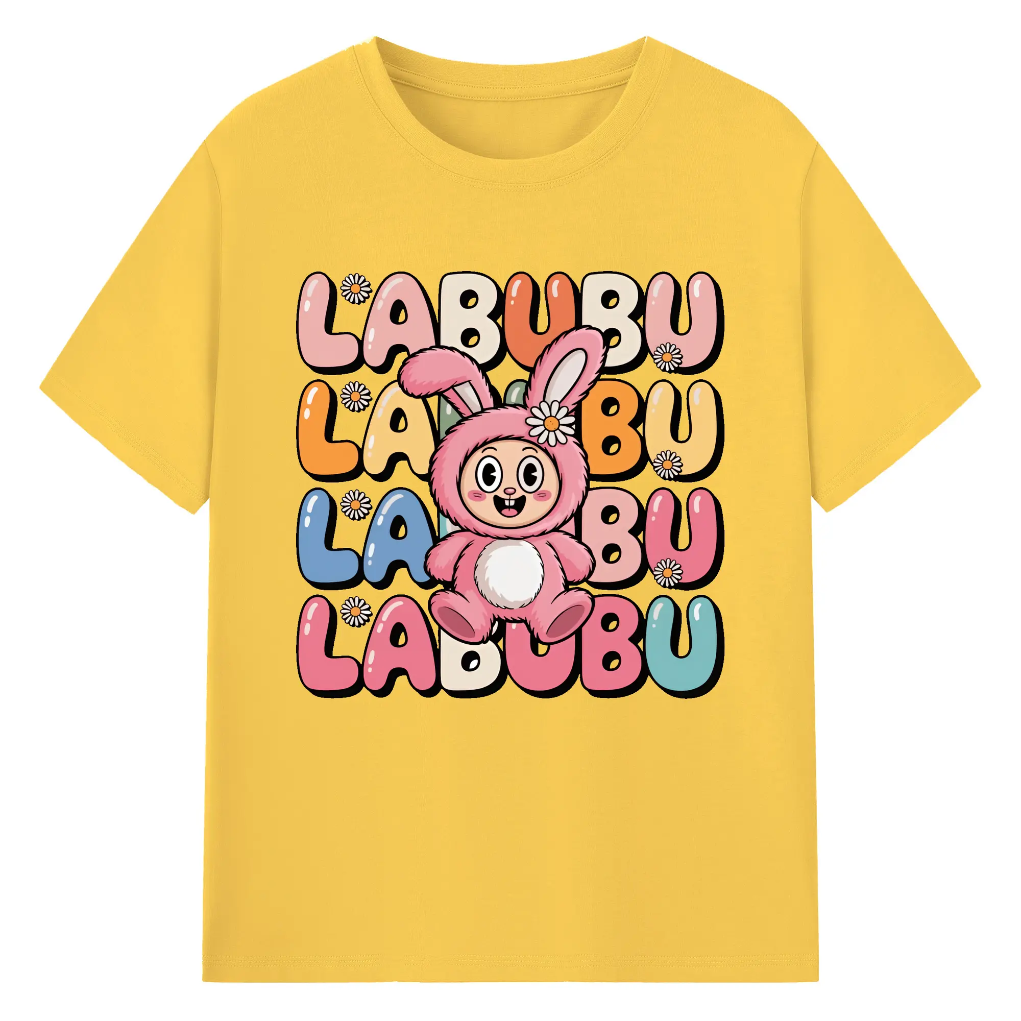 ラブブ グッズ ラブブ - 綿100% キッズTシャツ ・ フロントプリント ・ 快適 通気性 ・ スポーツ カジュアル 散歩用