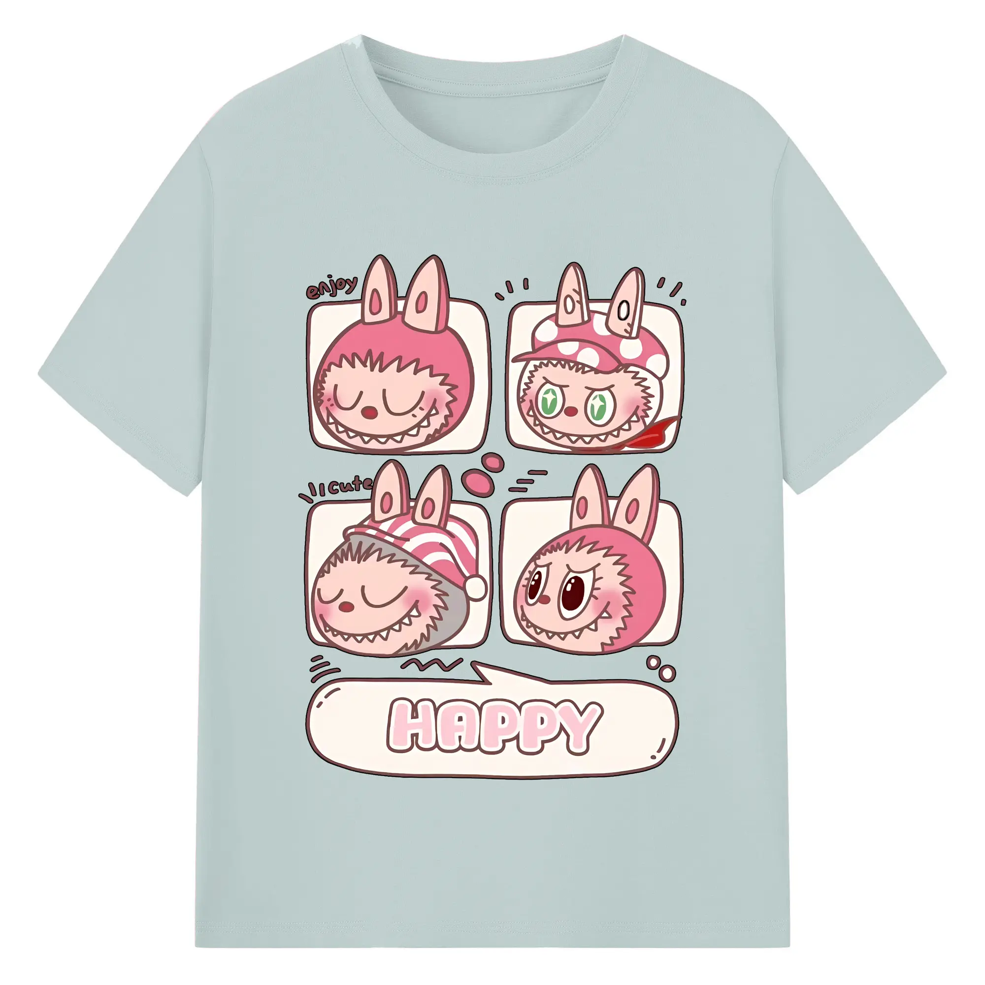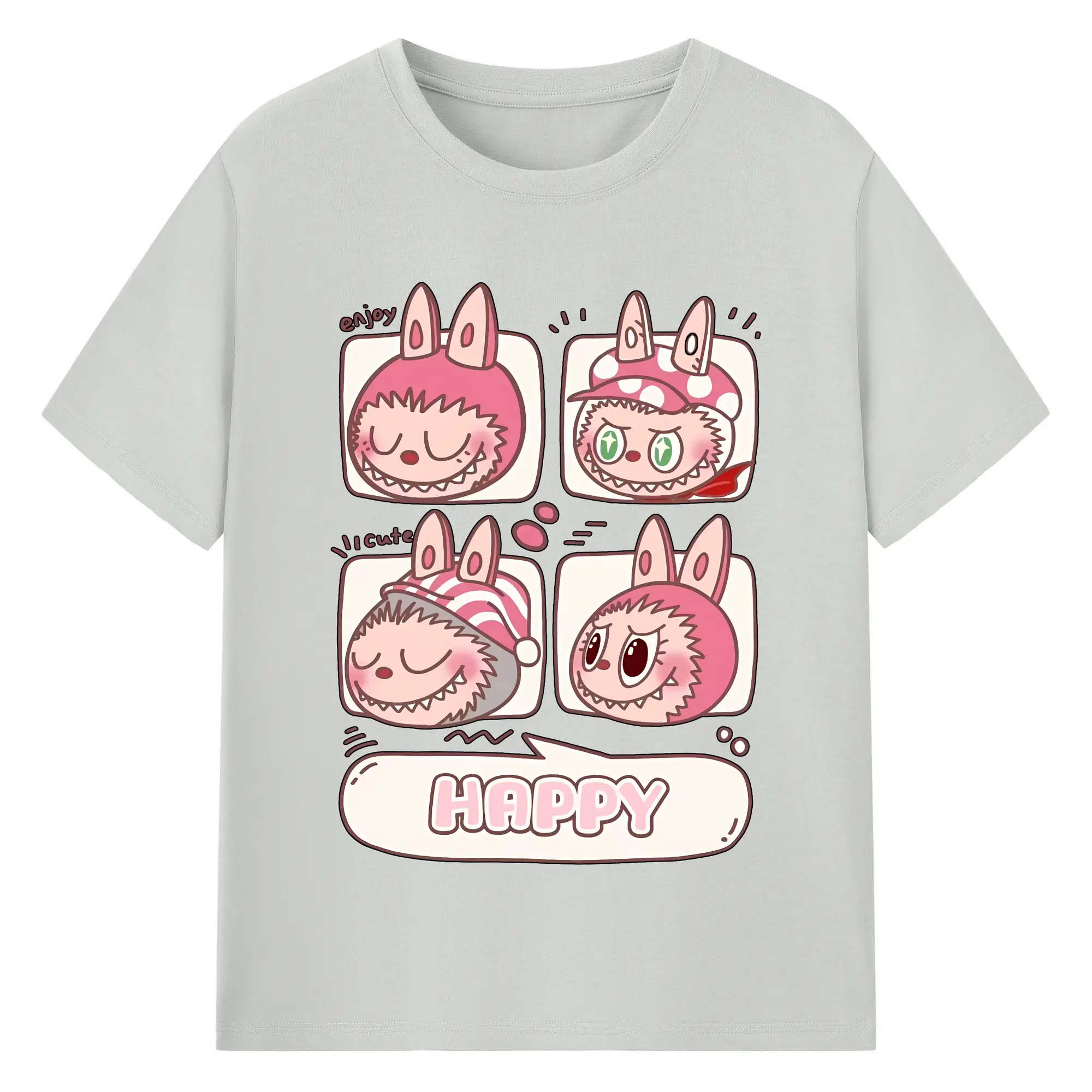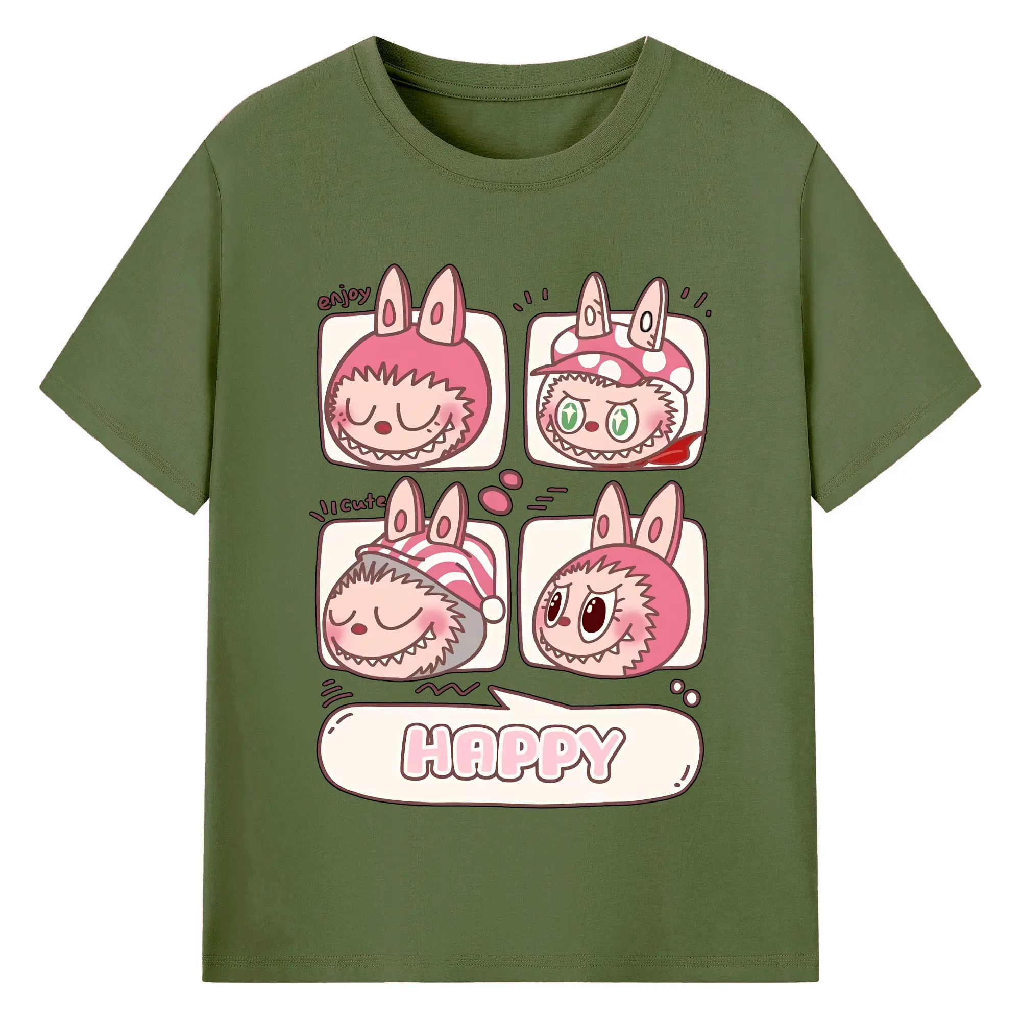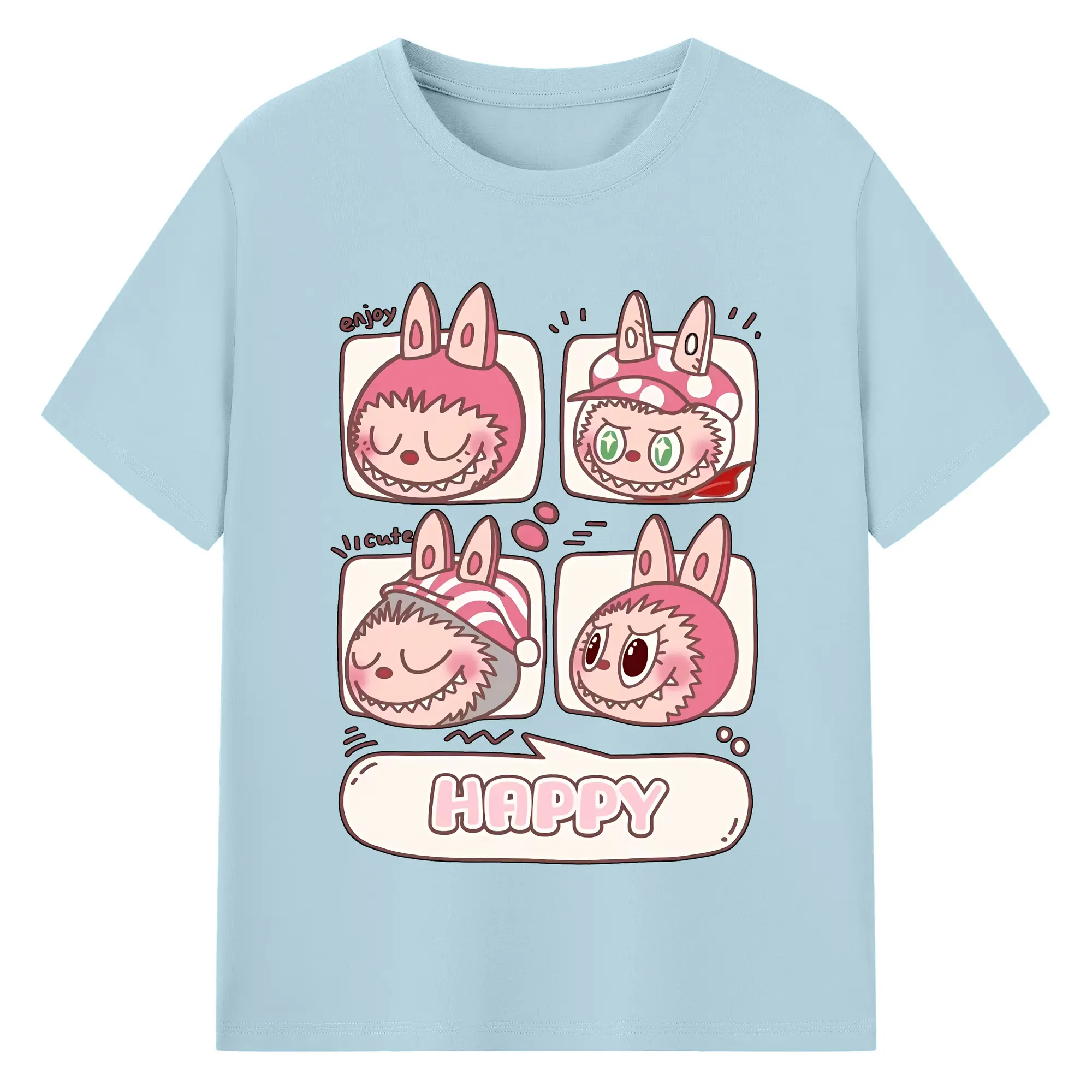 ラブブ グッズ ラブブ - 綿100% 半袖Tシャツ ・ バックプリント ・ 快適 通気性 ・ 日常使い 散歩 スポーツ用