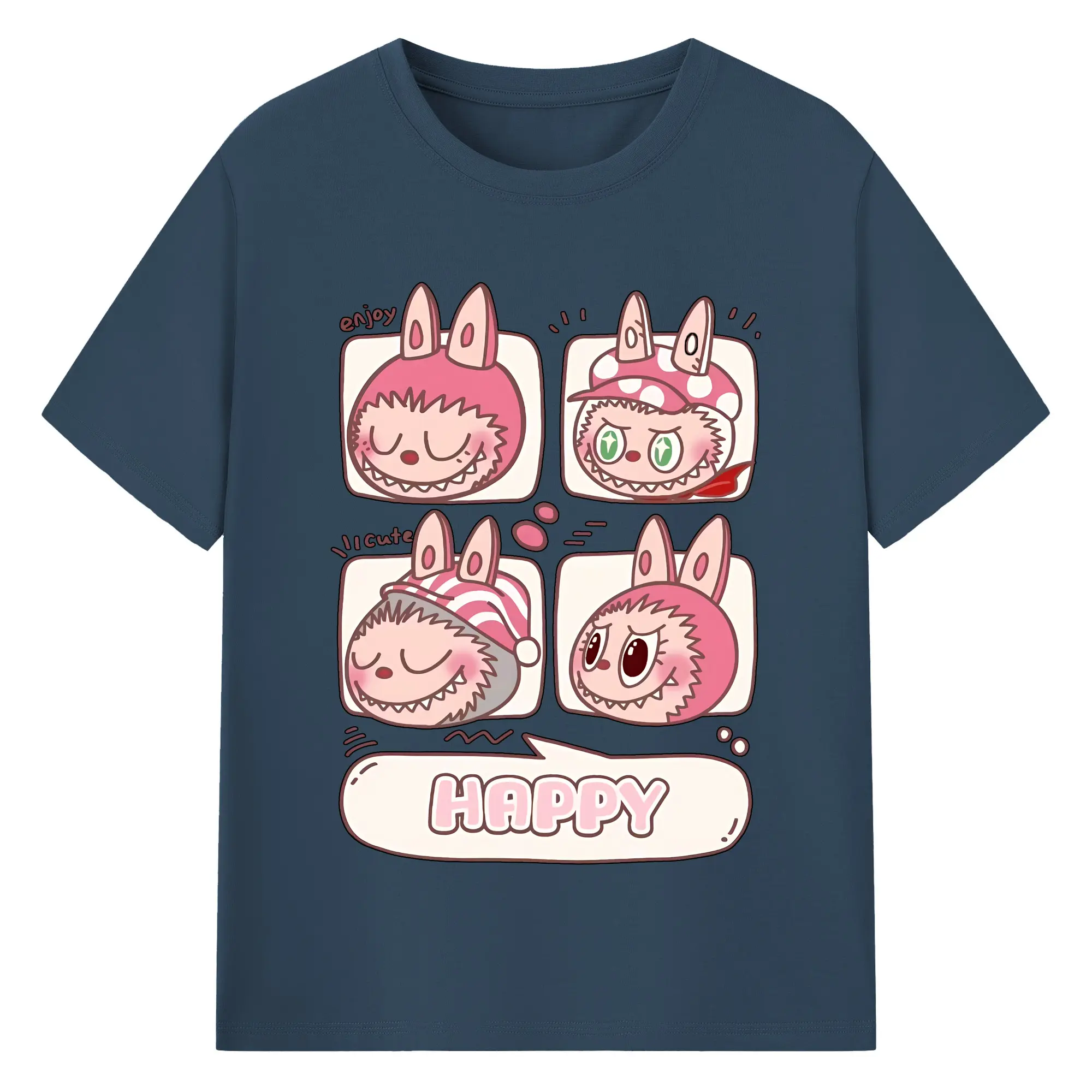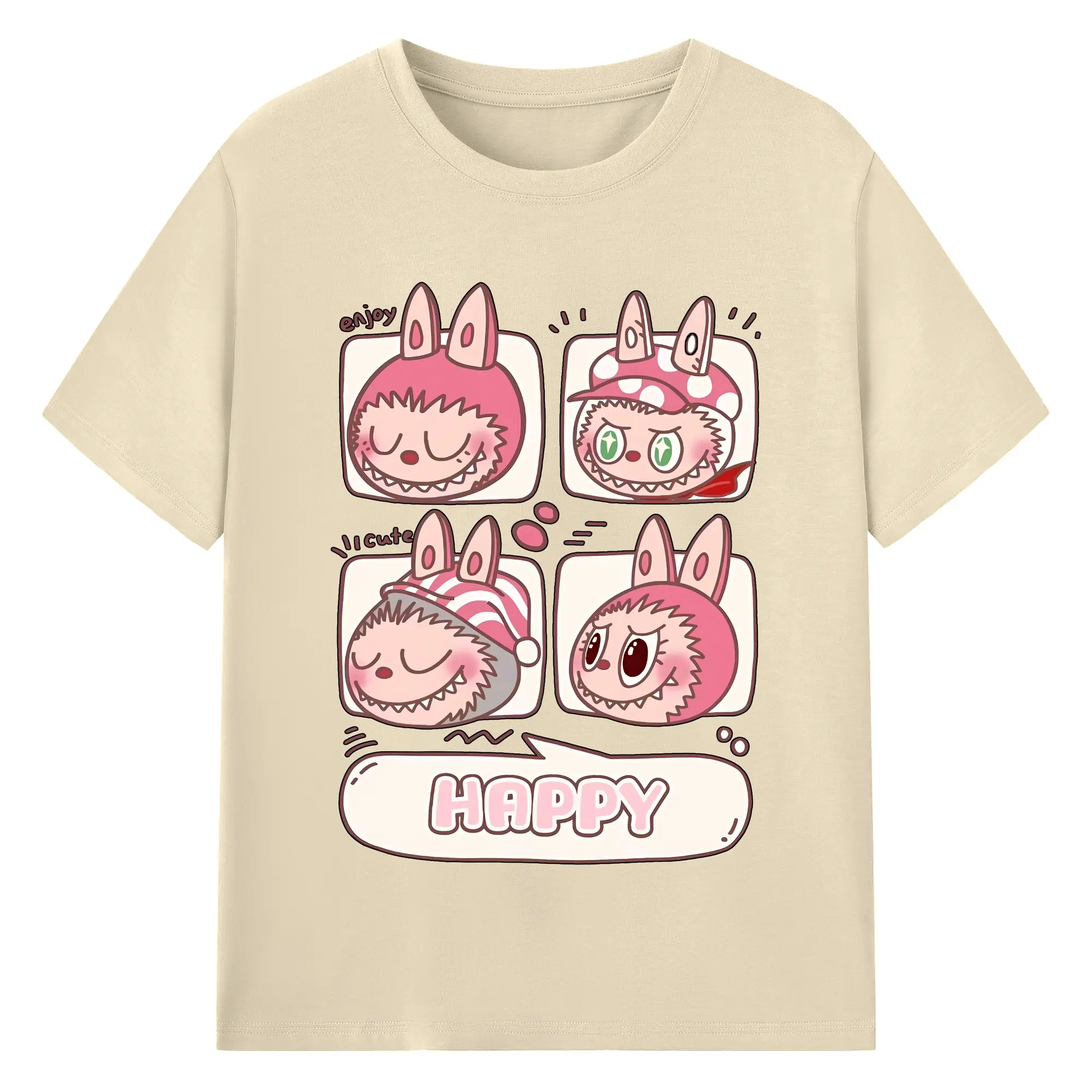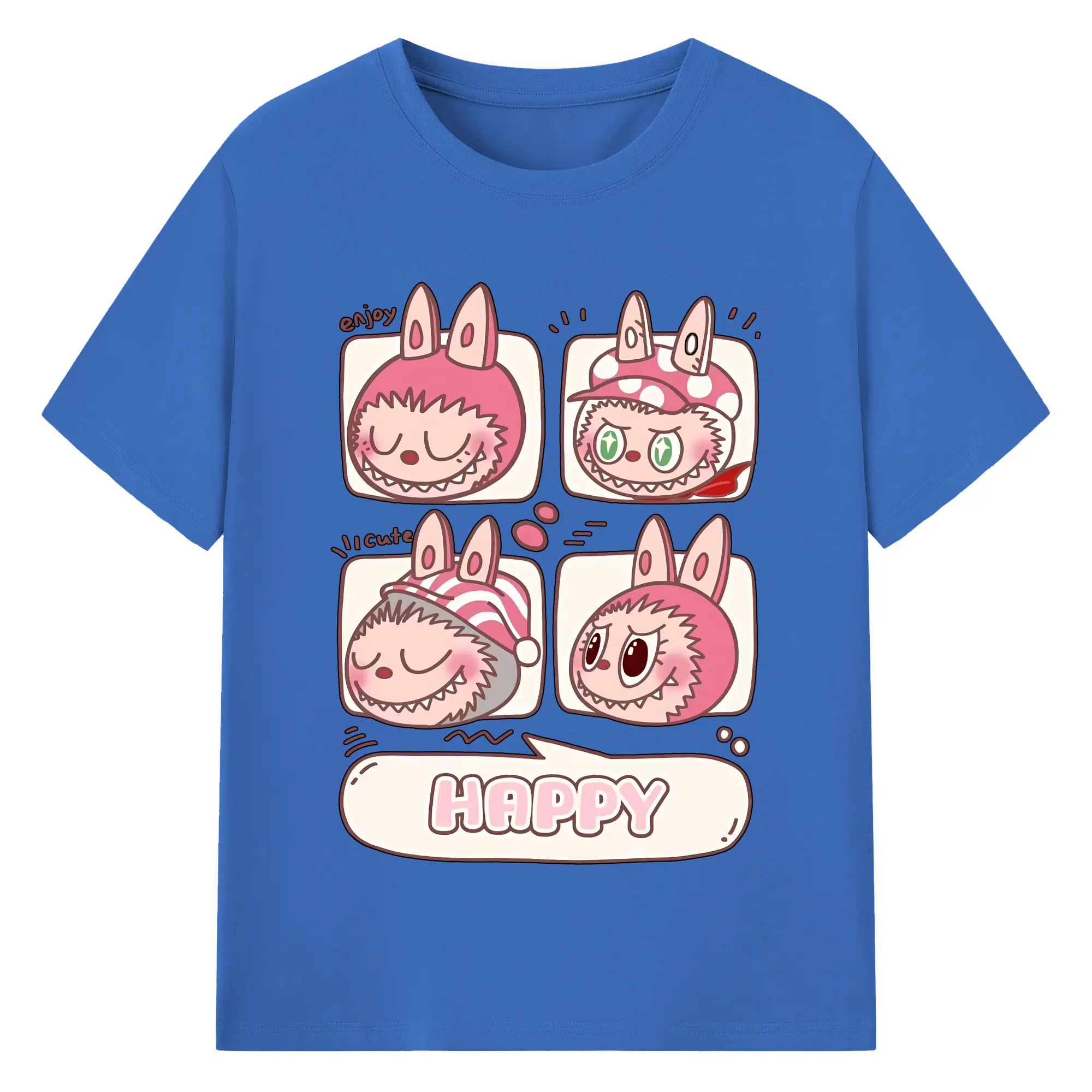 ラブブ グッズ ラブブ - 綿100% 半袖Tシャツ ・ バックプリント ・ 快適 通気性 ・ 日常使い 散歩 スポーツ用