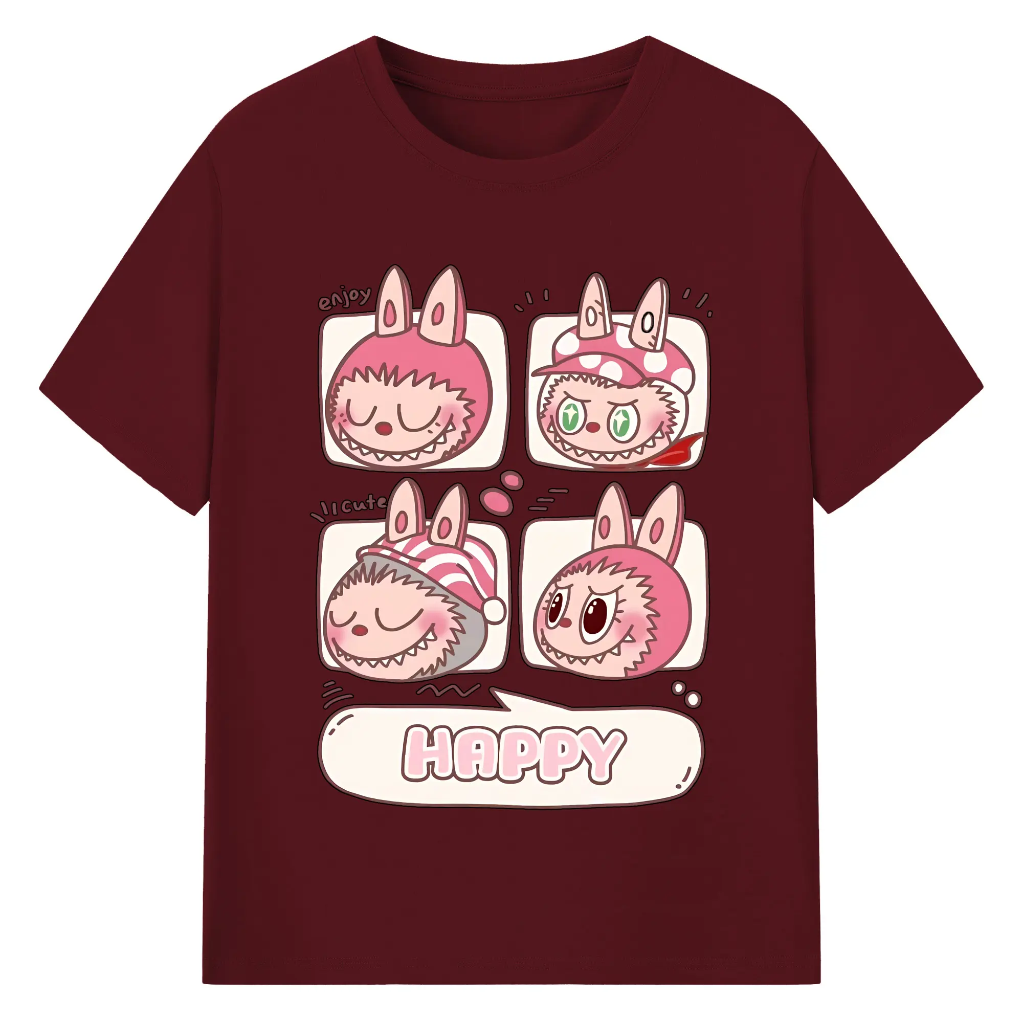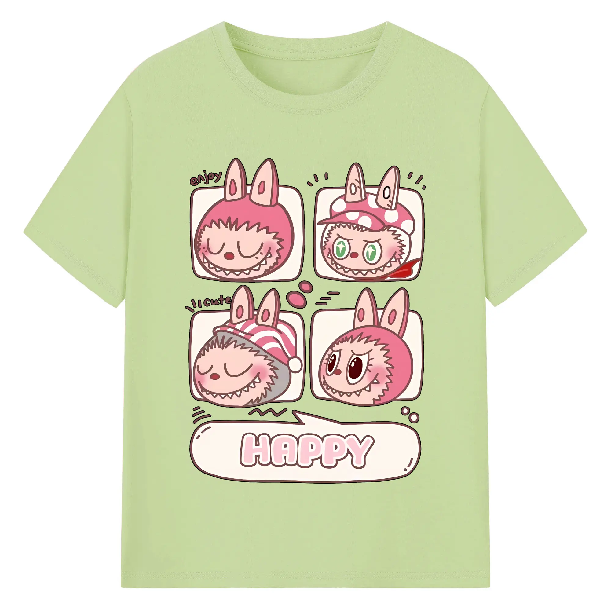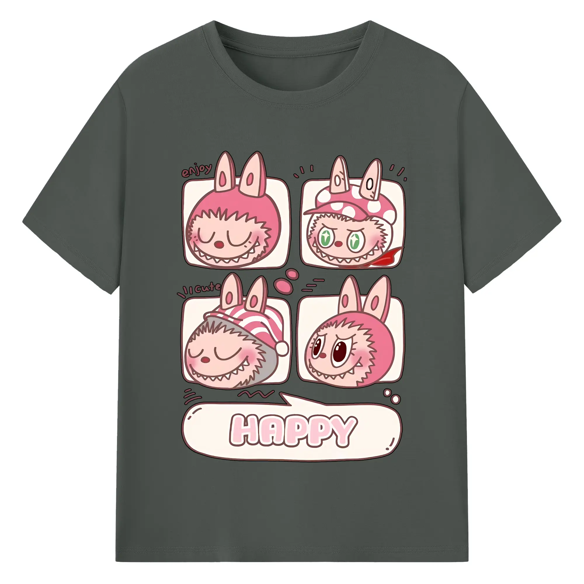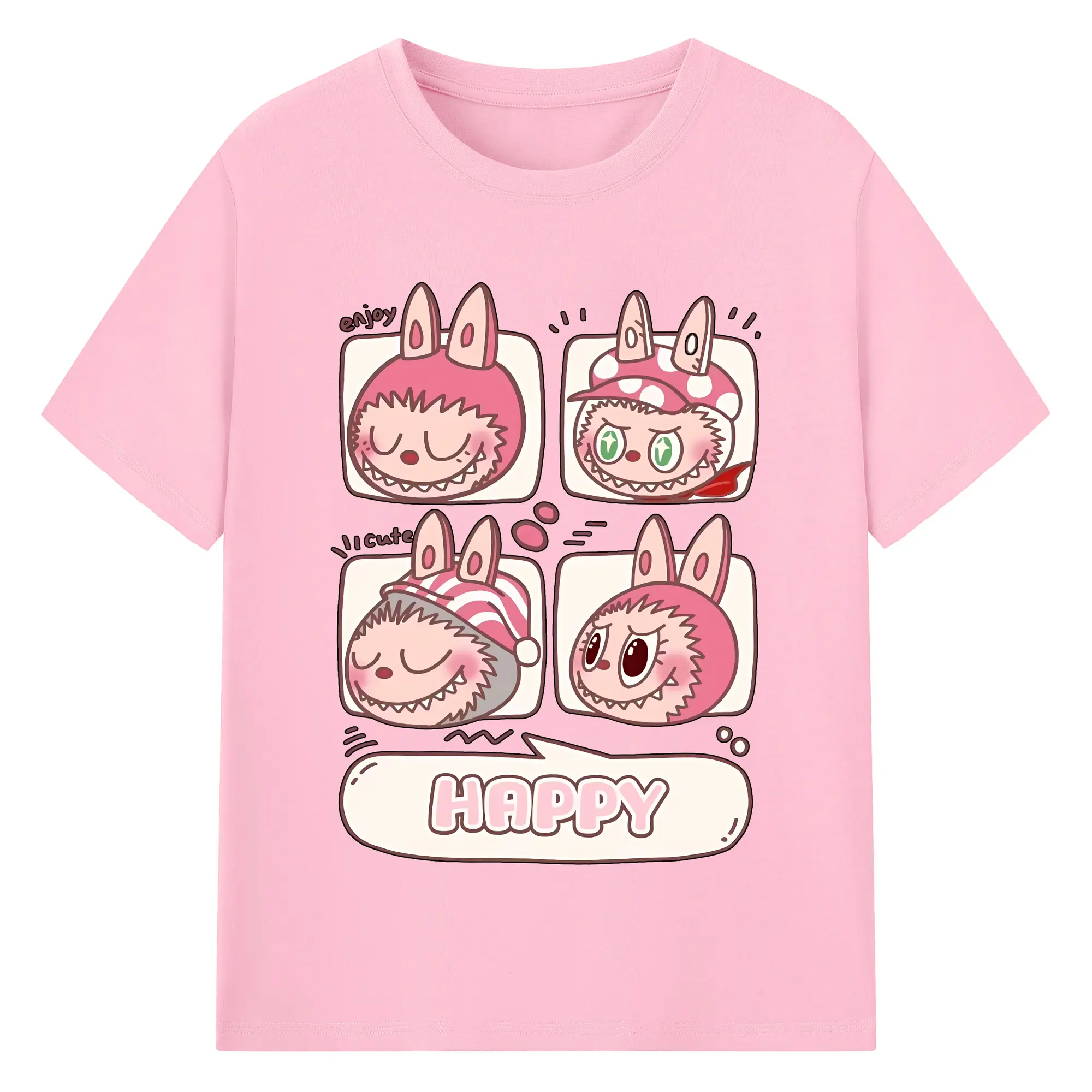ラブブ グッズ ラブブ - 綿100% 半袖Tシャツ ・ バックプリント ・ 快適 通気性 ・ 日常使い 散歩 スポーツ用