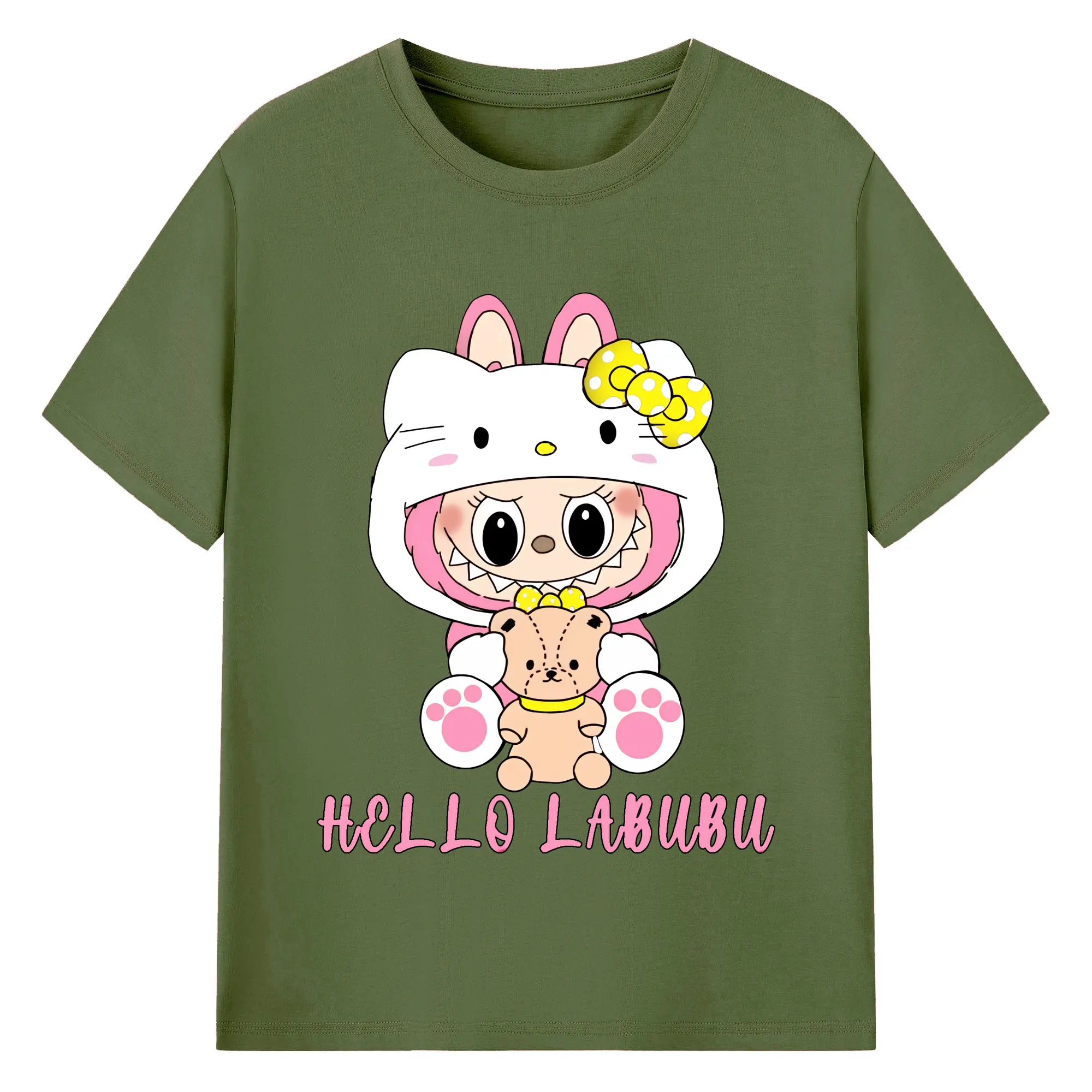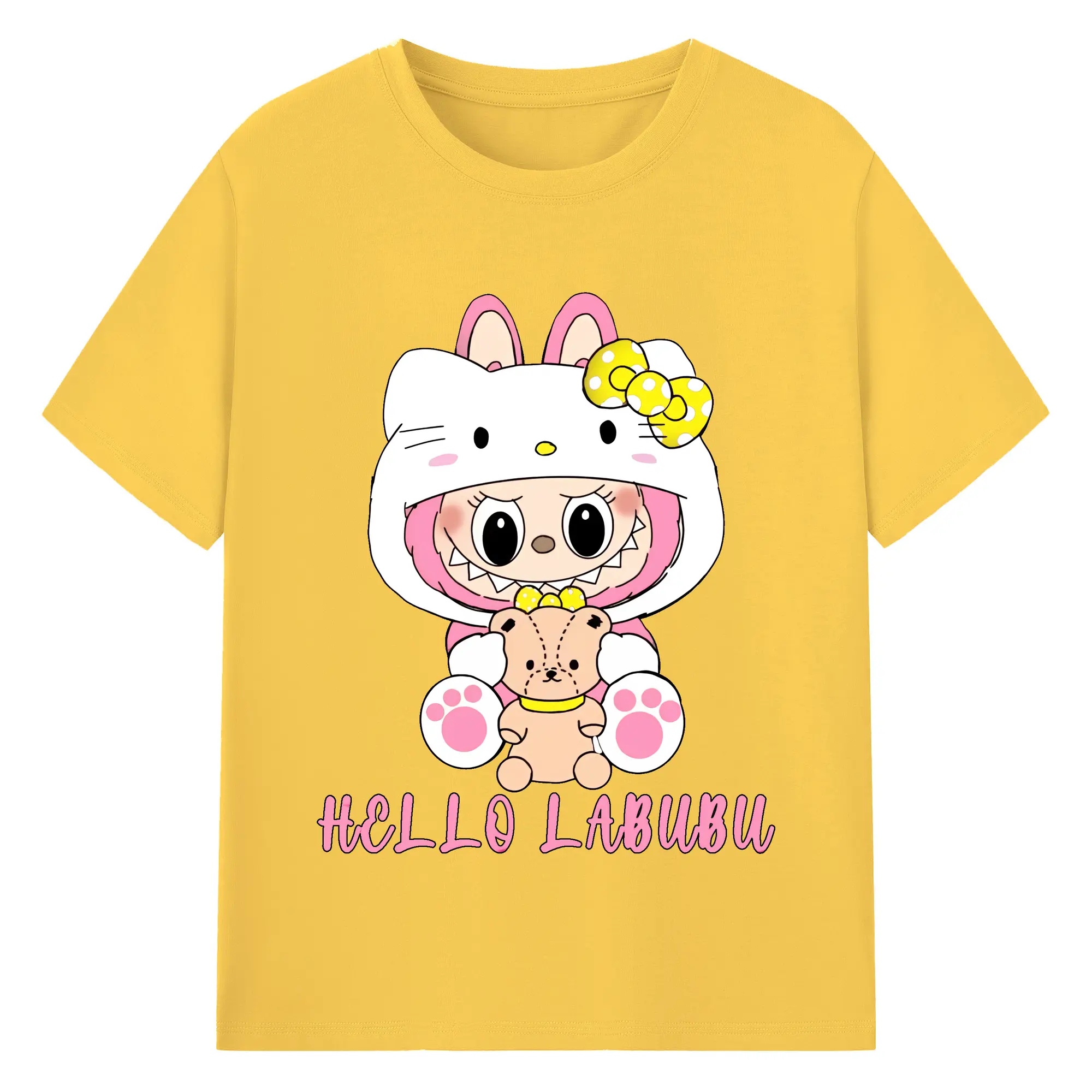 ラブブ グッズ ラブブ - 綿100% キッズTシャツ ・ フロントプリント ・ 快適 通気性 ・ スポーツ カジュアル 散歩用