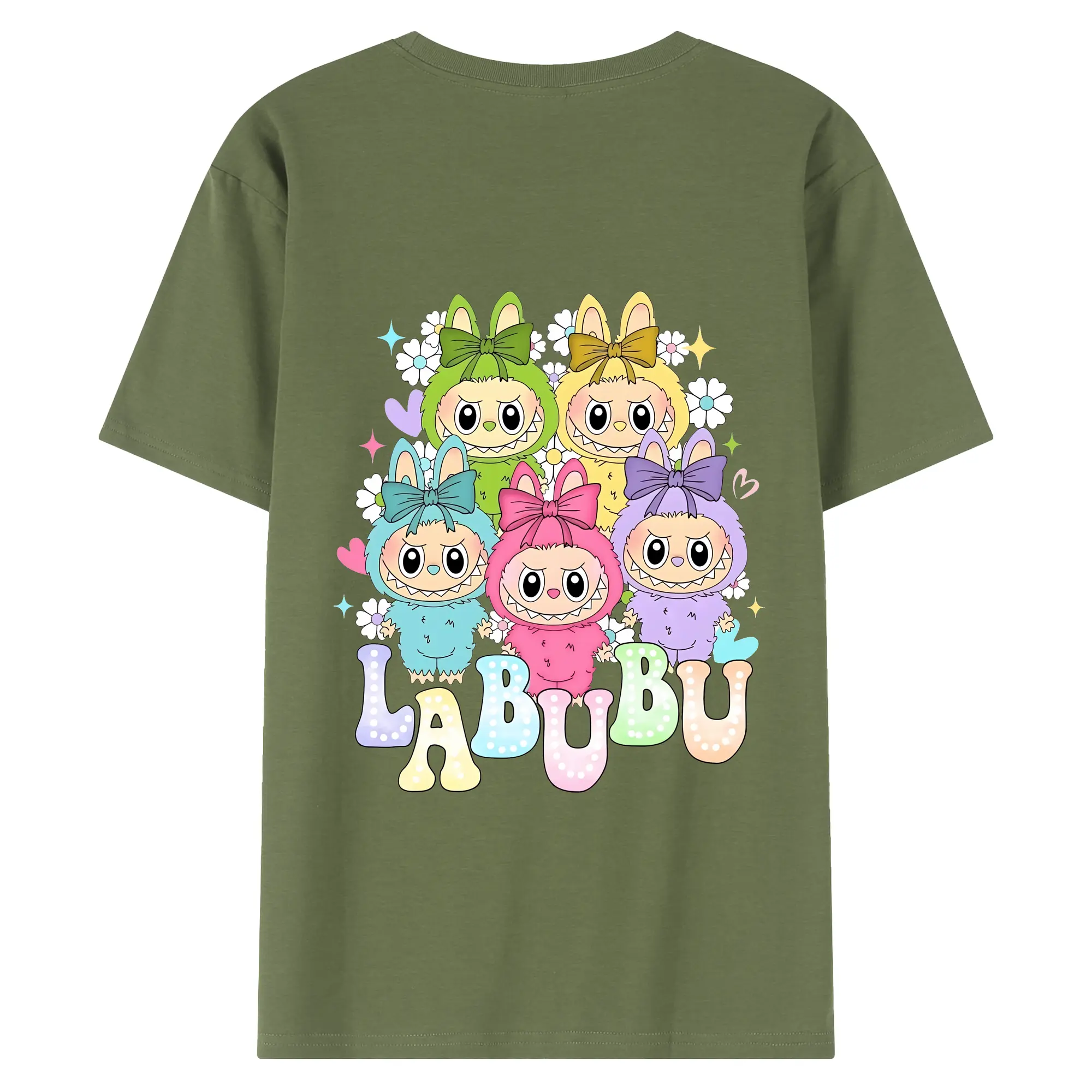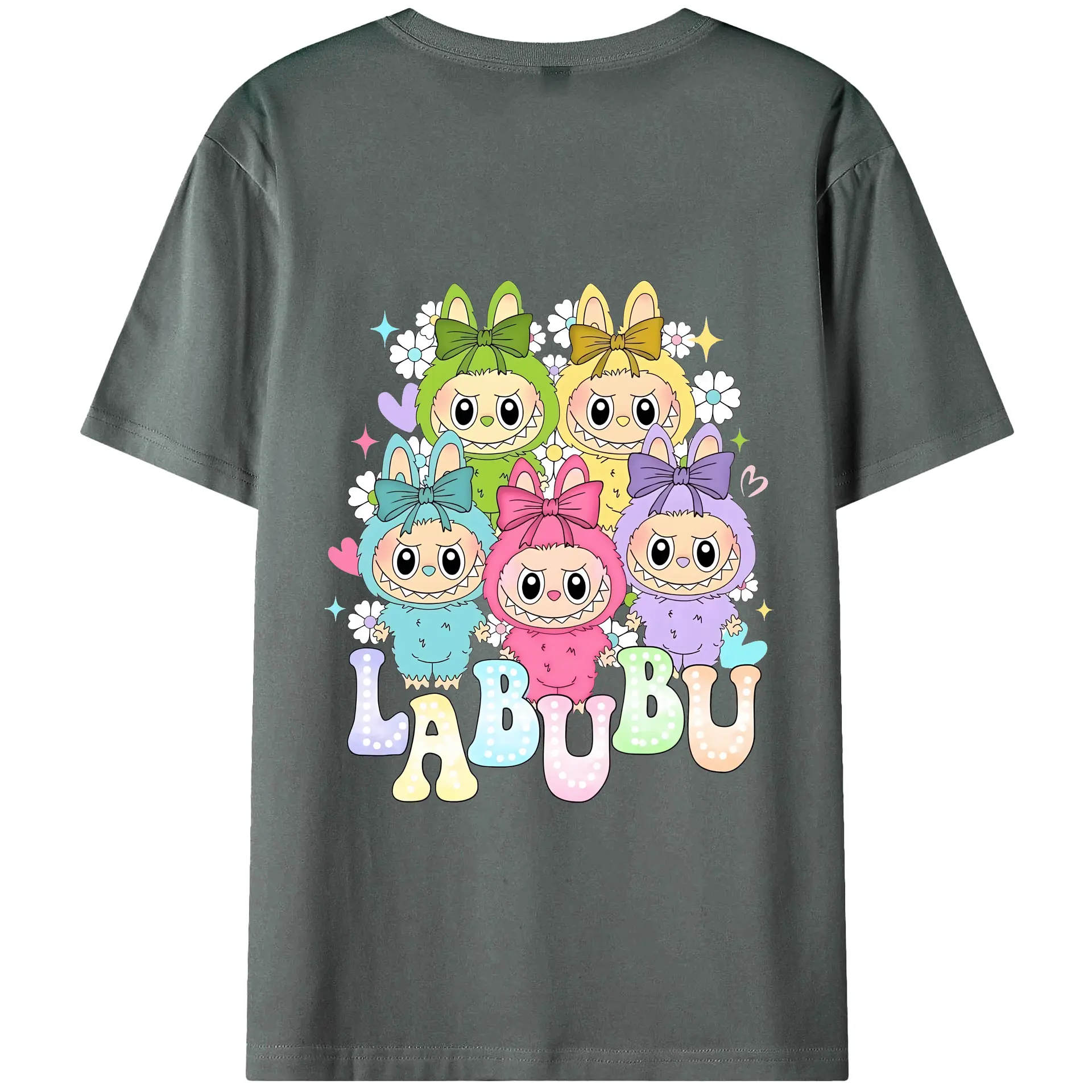 ラブブ グッズ ラブブ - 綿100% 半袖Tシャツ ・ フロントプリント ・ 快適 通気性 ・ 日常使い 散歩 スポーツ用