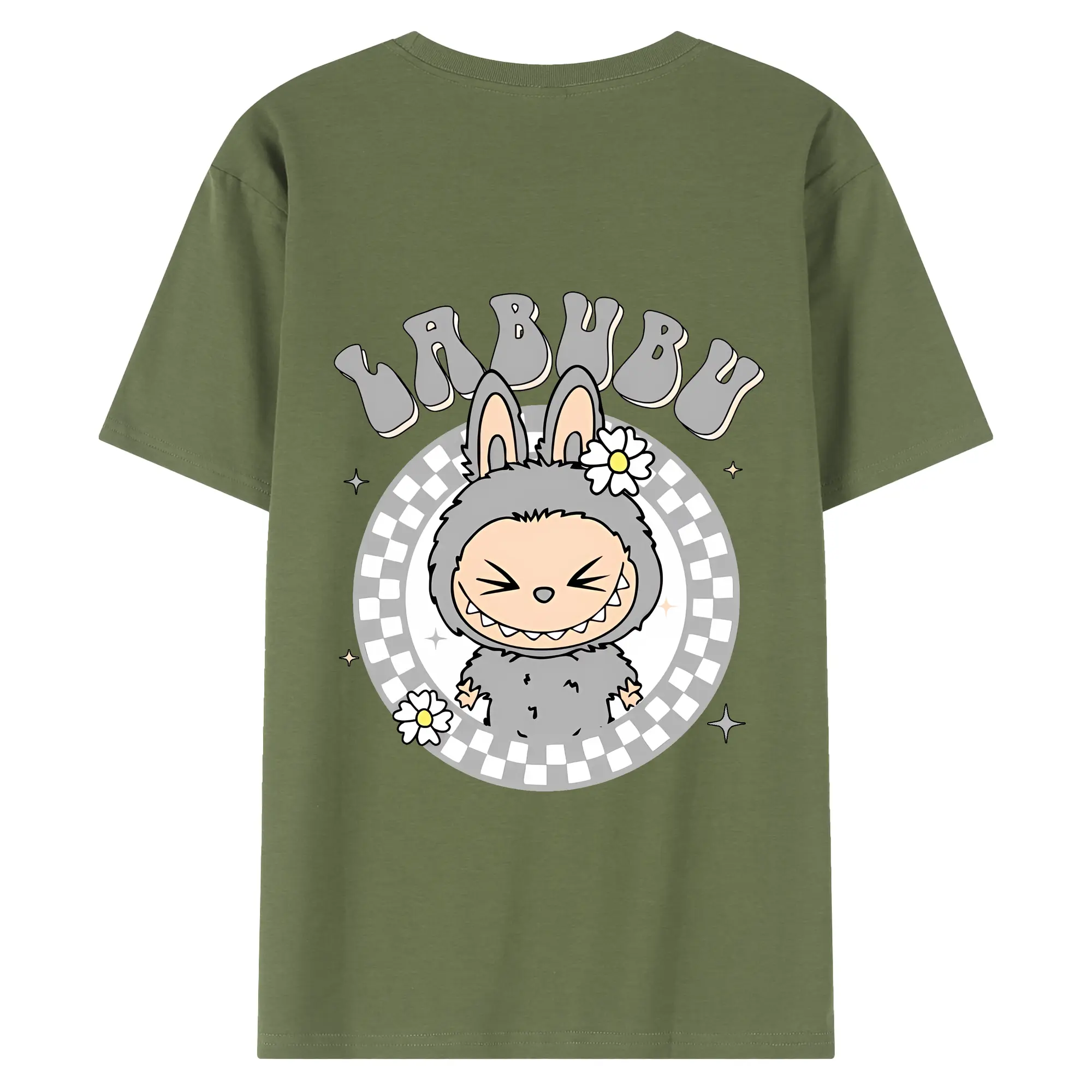 ラブブ グッズ ラブブ - 綿100% 半袖Tシャツ ・ フロントプリント ・ 快適 通気性 ・ 日常使い 散歩 スポーツ用