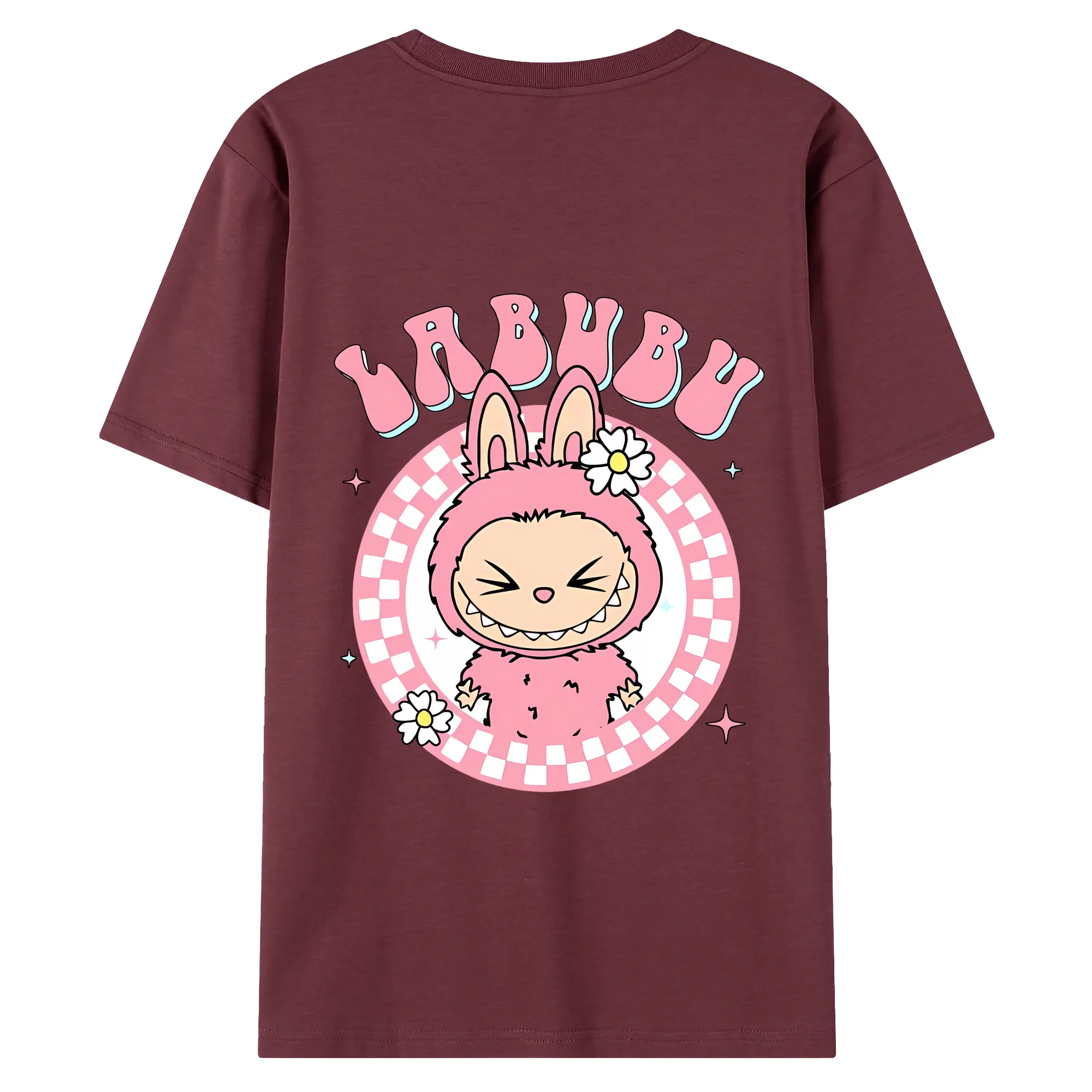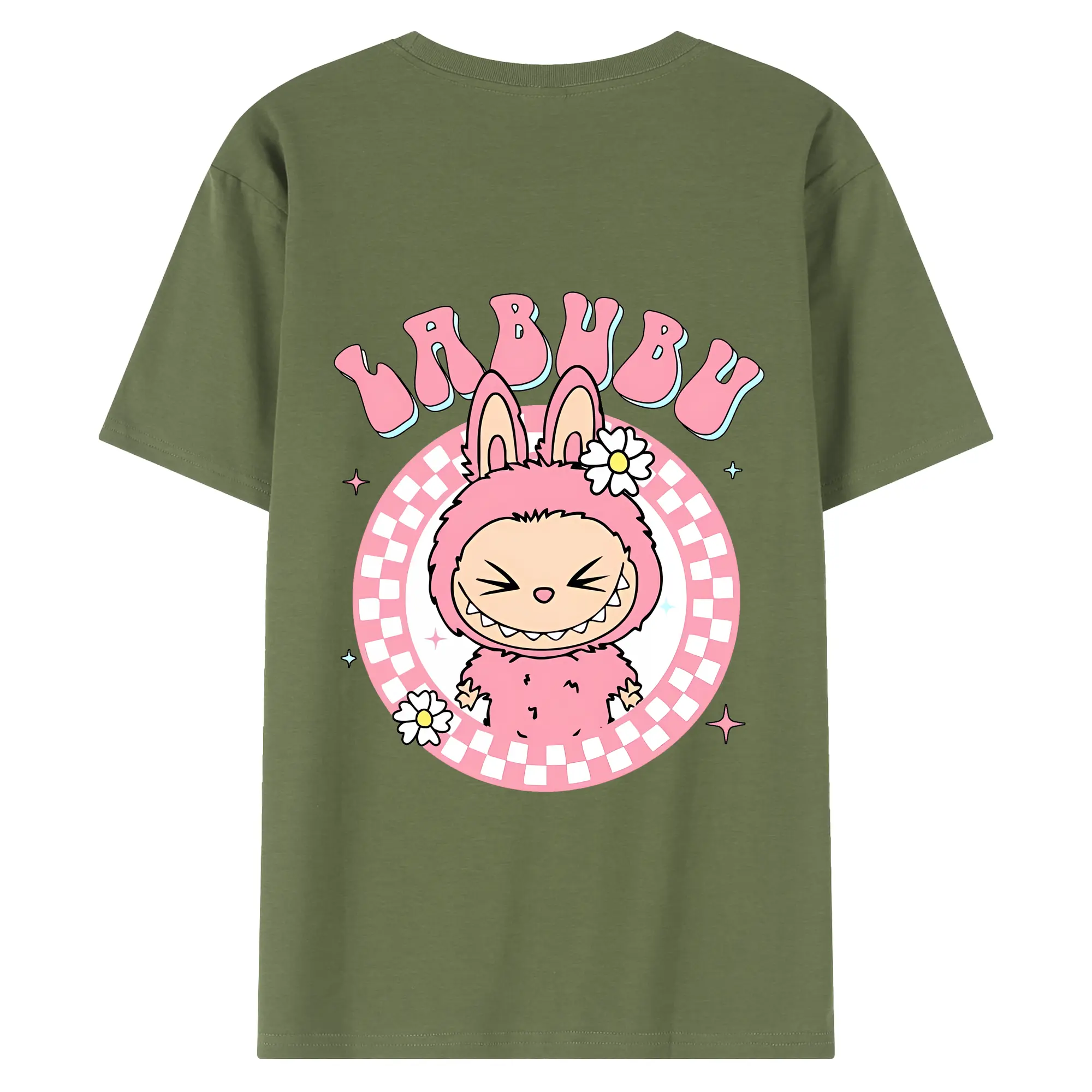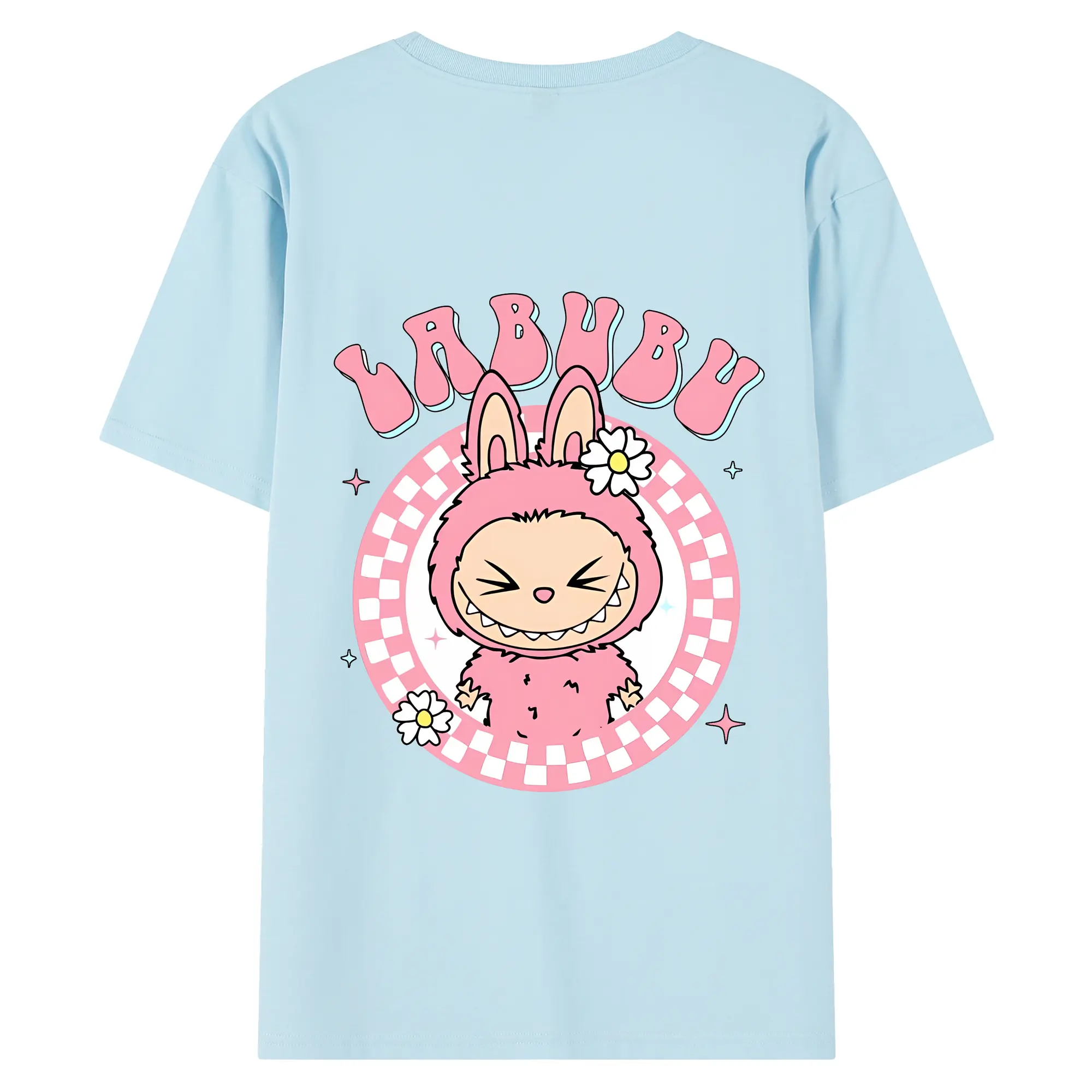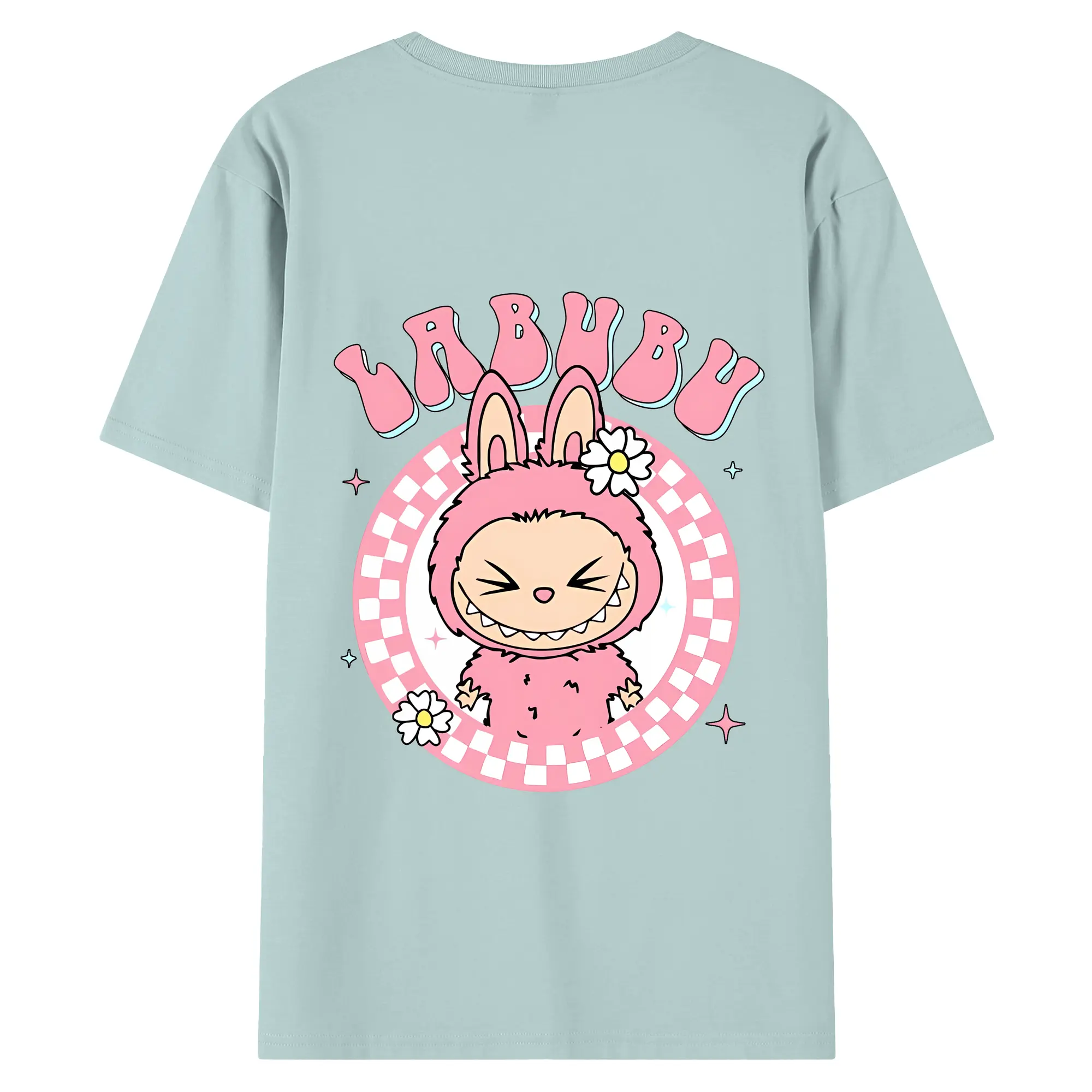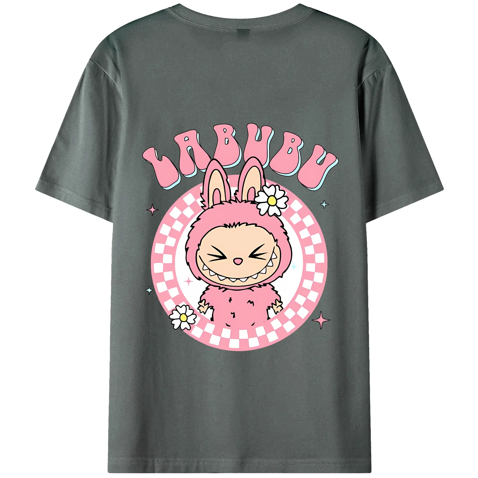 ラブブ グッズ ラブブ - 綿100% 半袖Tシャツ ・ フロントプリント ・ 快適 通気性 ・ 日常使い 散歩 スポーツ用
