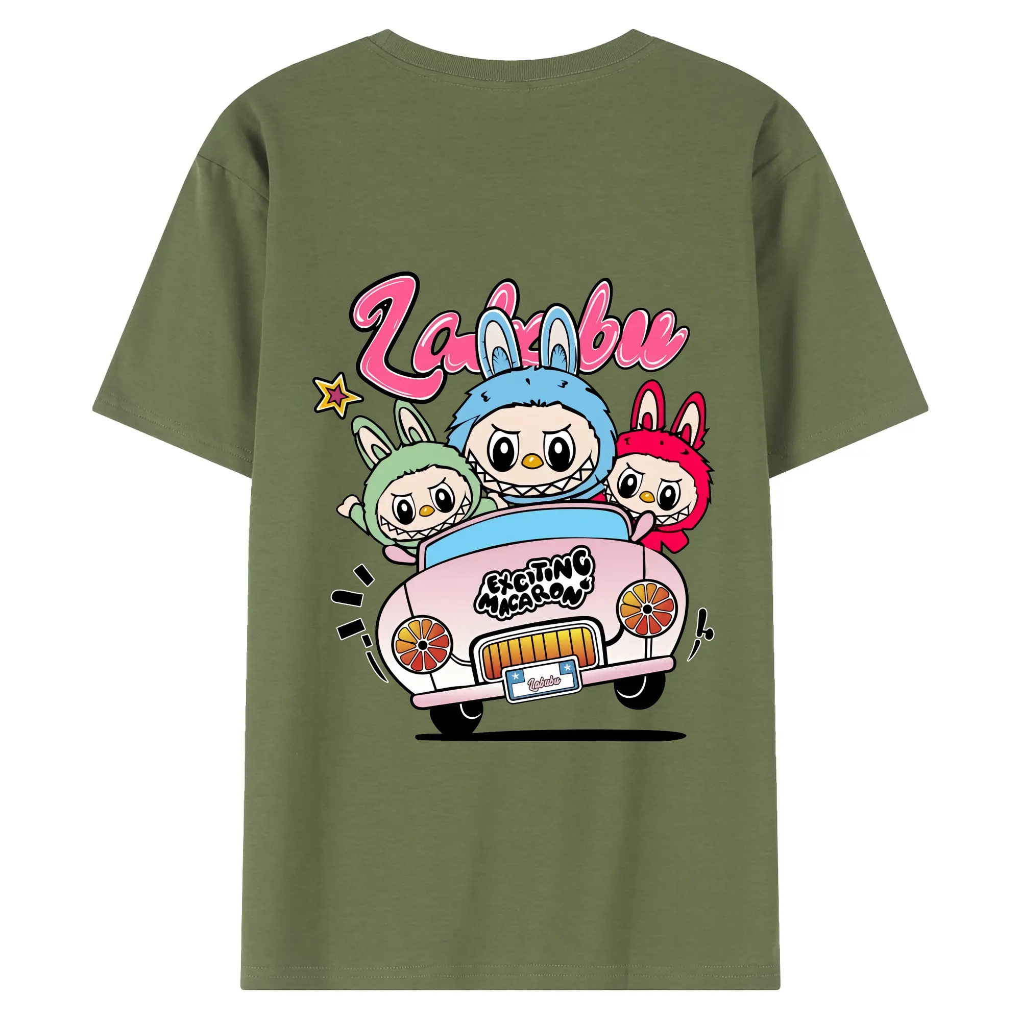 ラブブ グッズ ラブブ - 綿100% 半袖Tシャツ ・ フロントプリント ・ 快適 通気性 ・ 日常使い 散歩 スポーツ用
