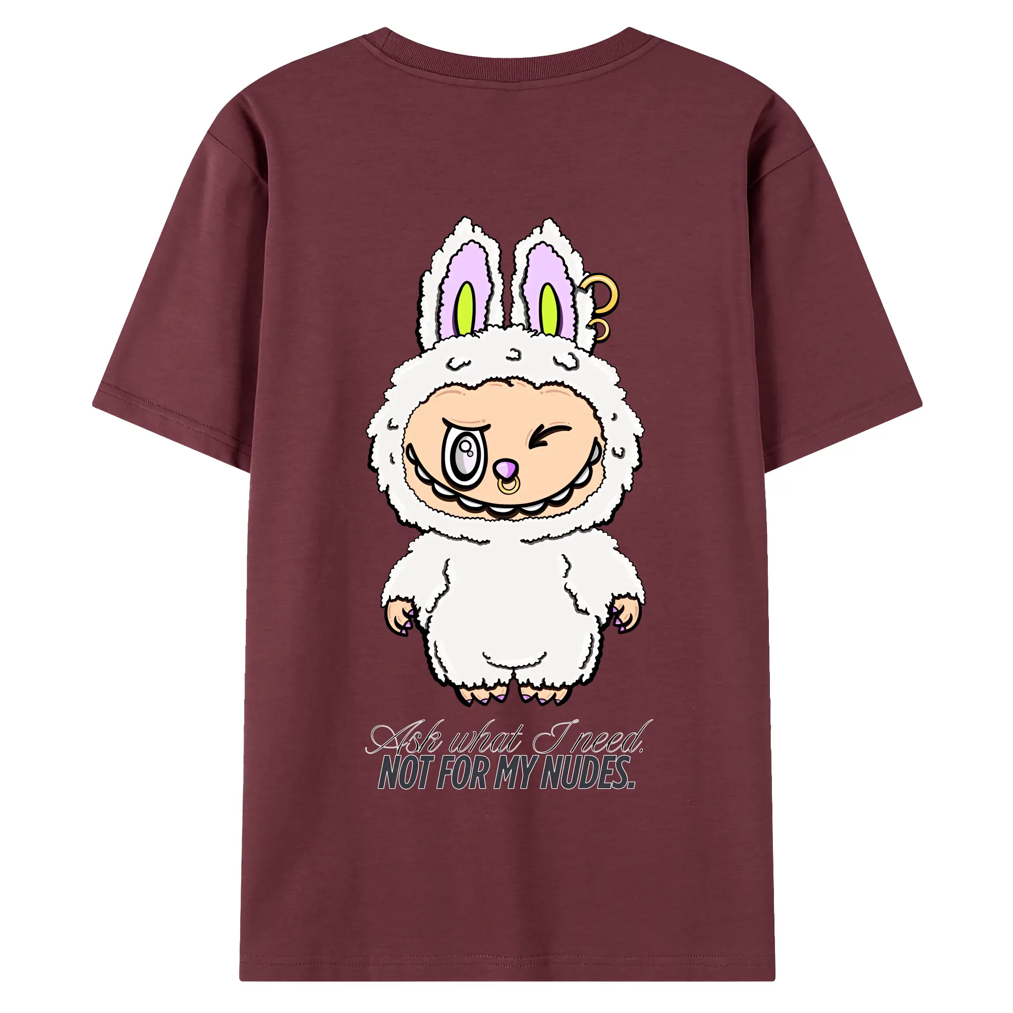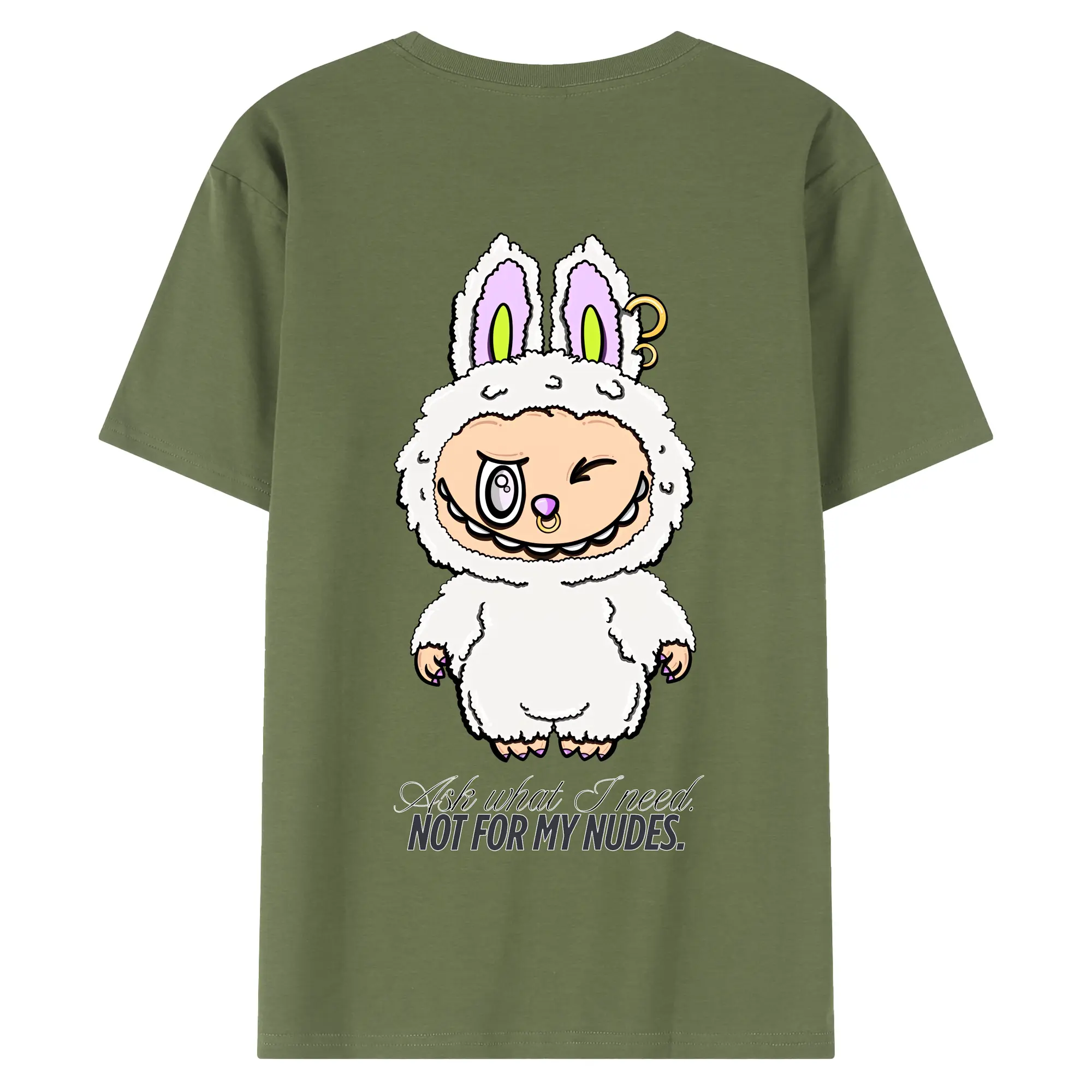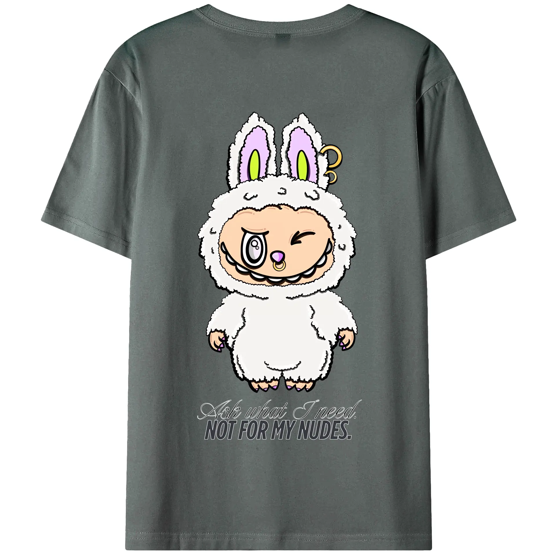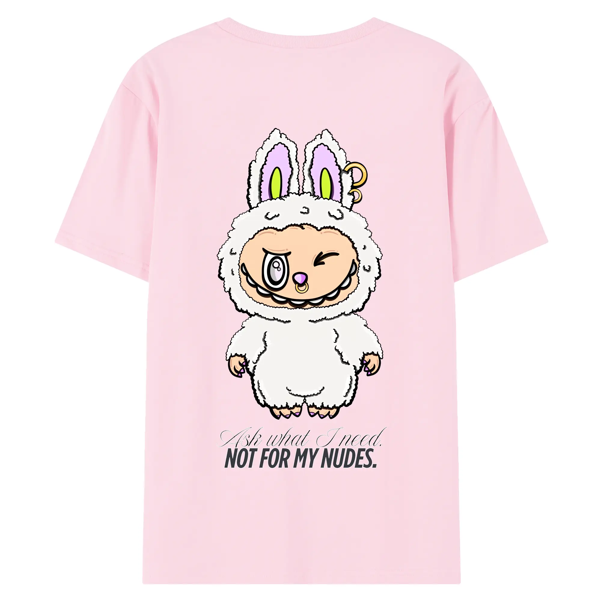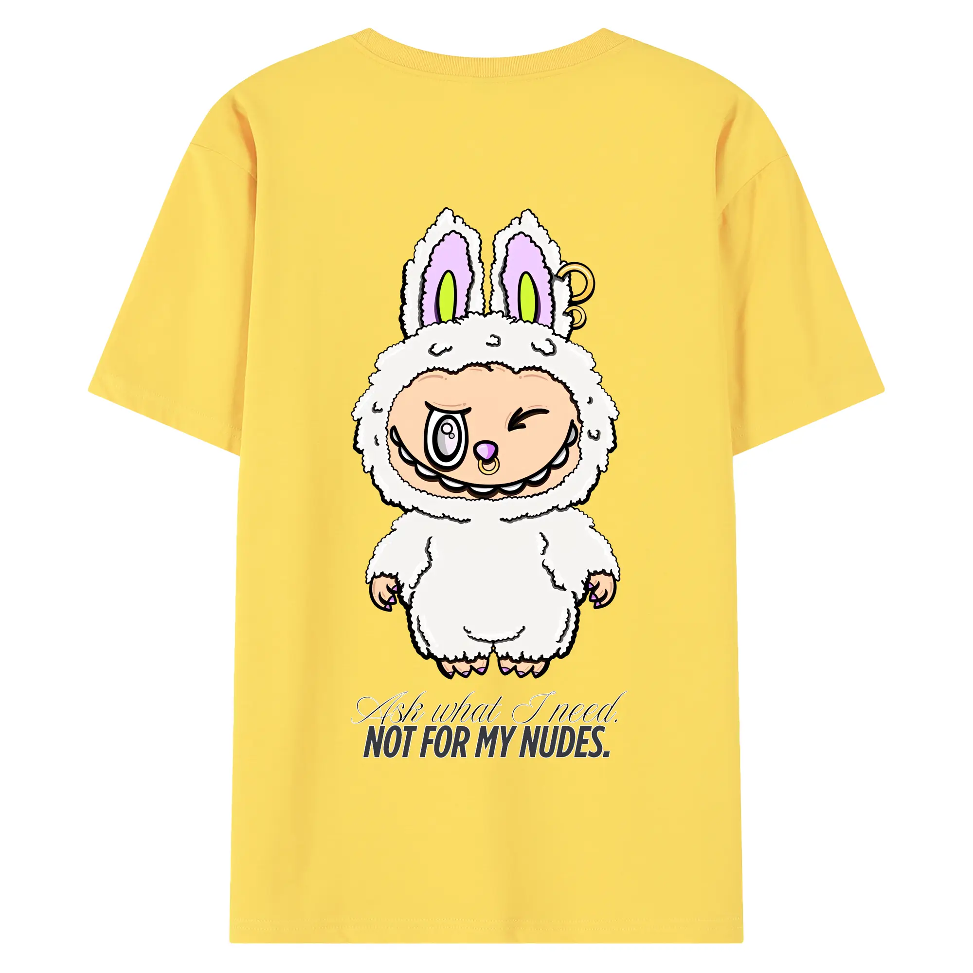 ラブブ グッズ ラブブ - 綿100% 半袖Tシャツ ・ フロントプリント ・ 快適 通気性 ・ 日常使い 散歩 スポーツ用