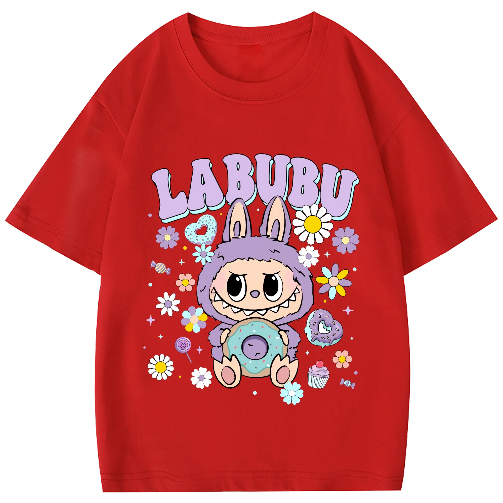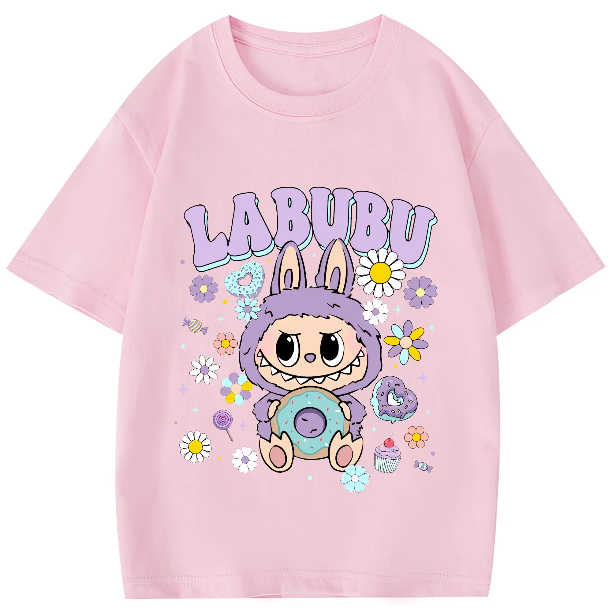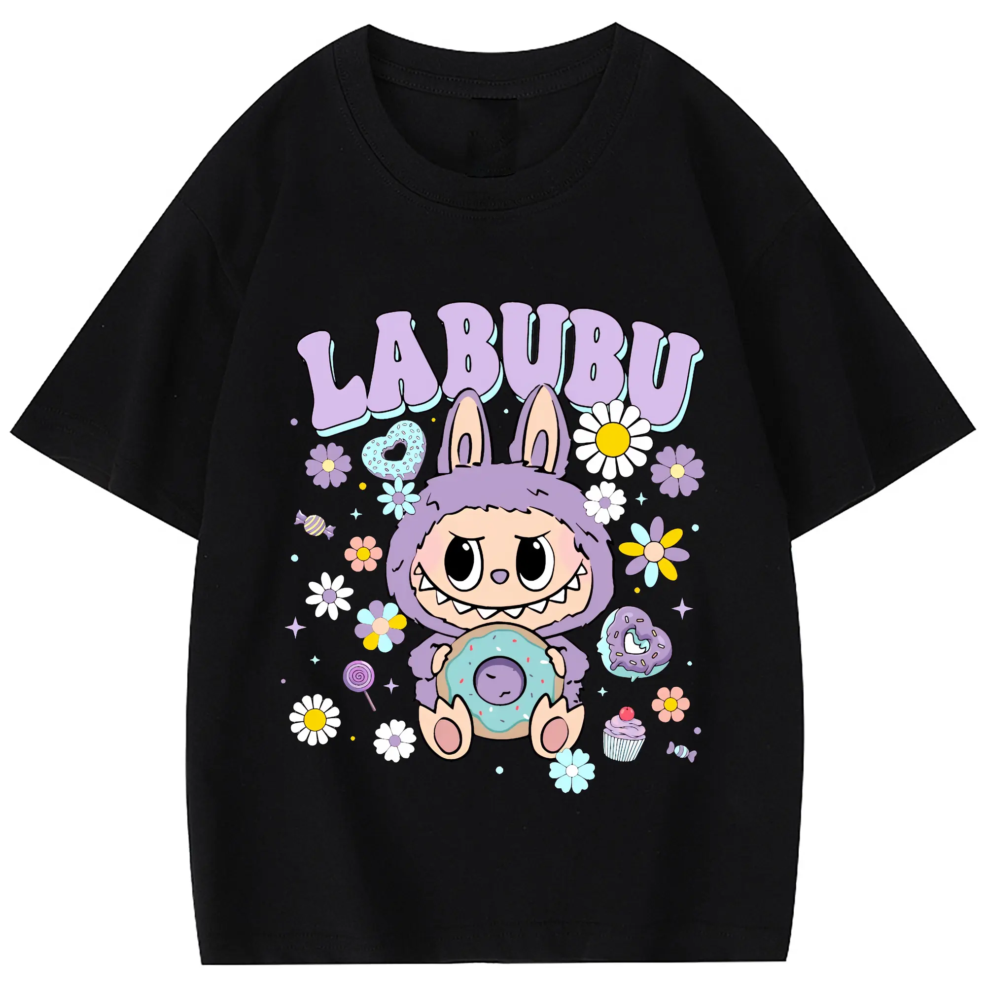 ラブブ グッズ ラブブ - 綿100% 半袖Tシャツ ・ フロントプリント ・ 快適 通気性 ・ 日常使い 散歩 スポーツ用