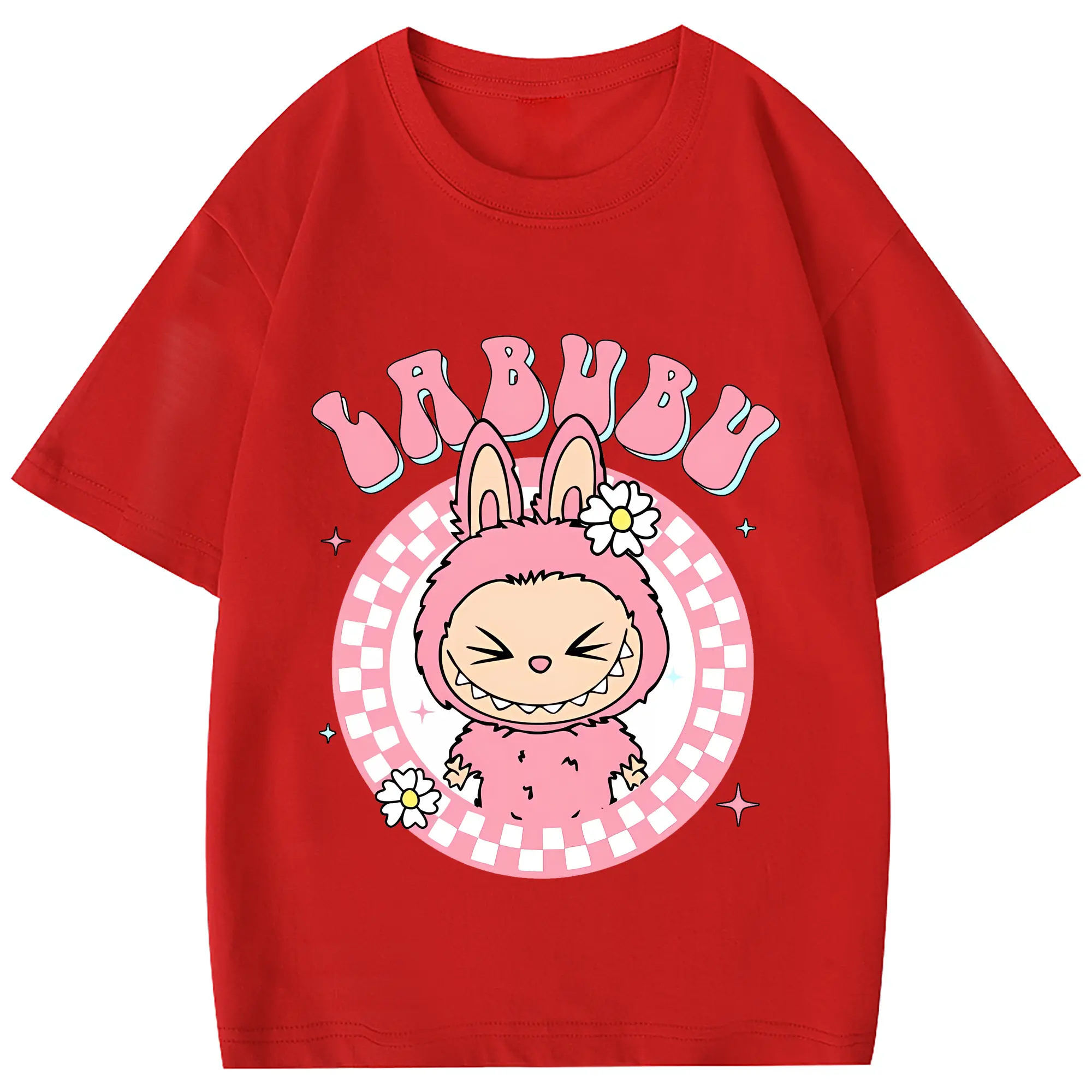 ラブブ グッズ ラブブ - 綿100% 半袖Tシャツ ・ フロントプリント ・ 快適 通気性 ・ 日常使い 散歩 スポーツ用