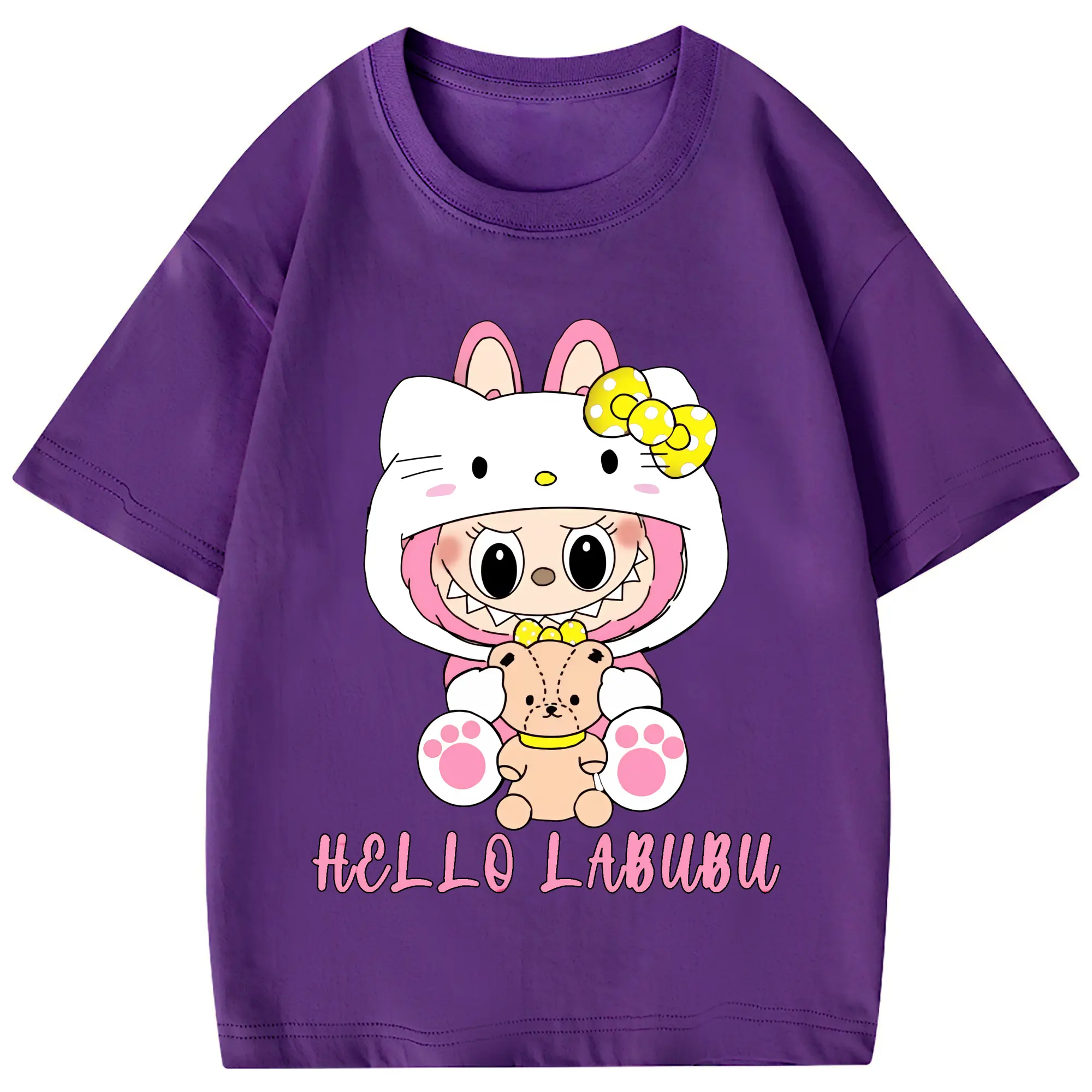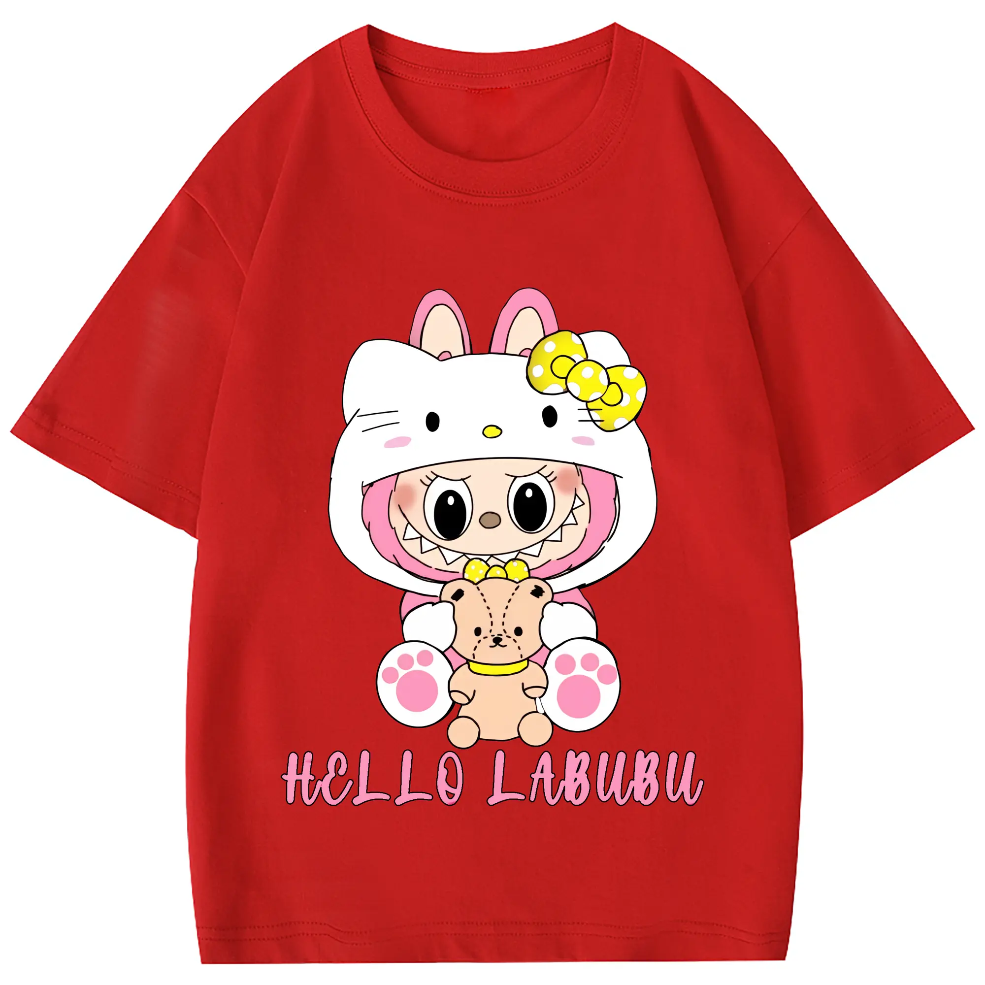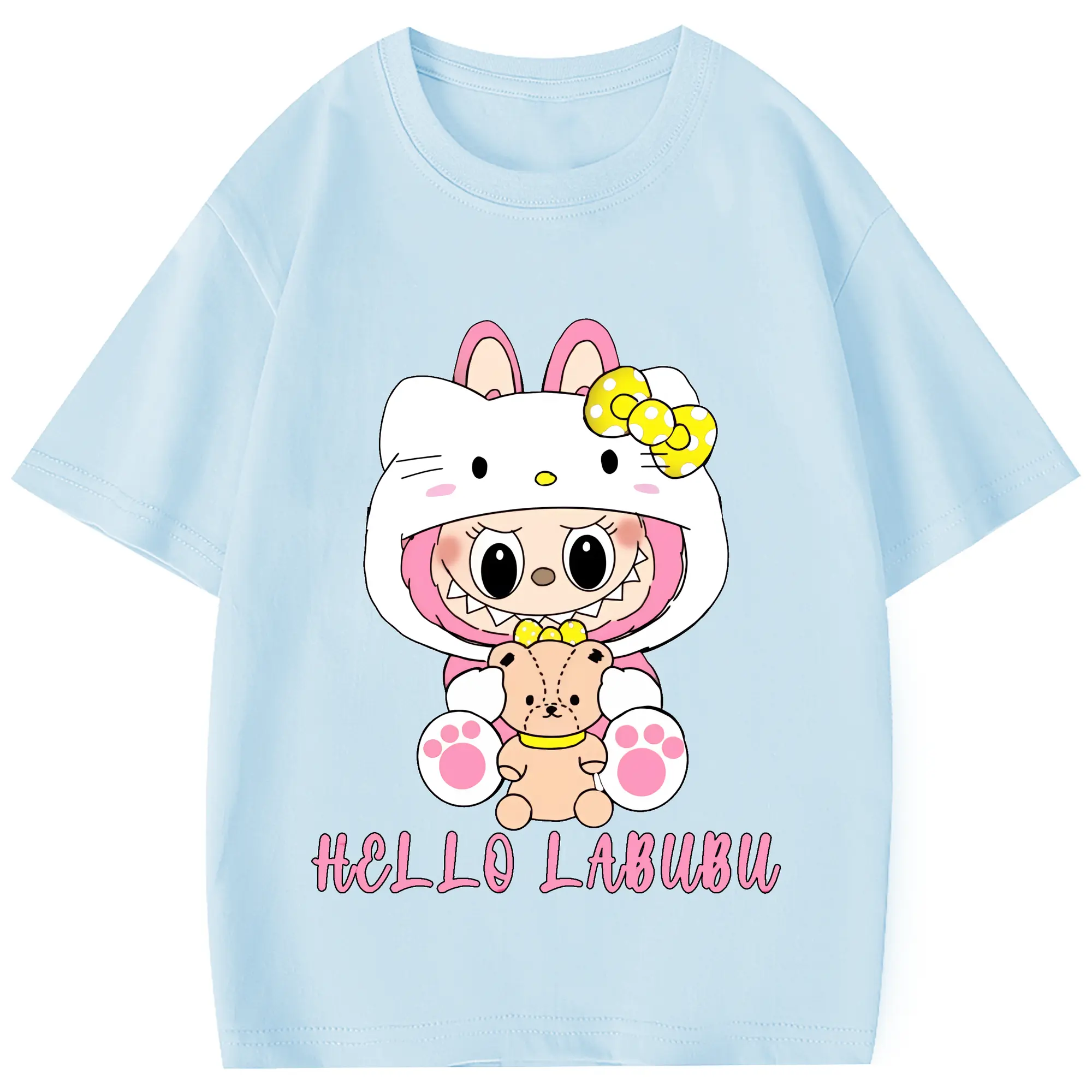 ラブブ グッズ ラブブ - 綿100% 半袖Tシャツ ・ フロントプリント ・ 快適 通気性 ・ 日常使い 散歩 スポーツ用