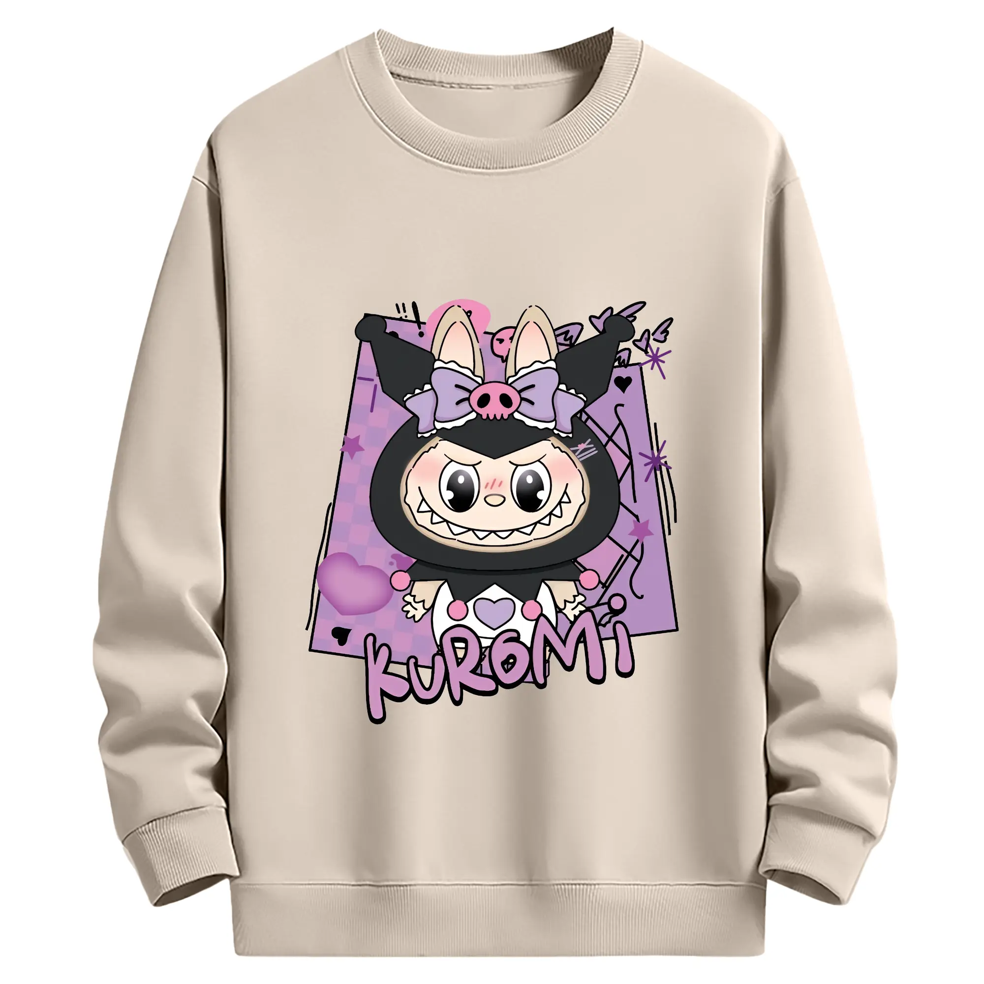 ラブブ グッズ ラブブ - 薄手 クルーネック スウェット 裏毛260g · ポリエステル 春秋向け カジュアル 男女兼用 · トレーナー デイリー スポーツ 散歩に最適