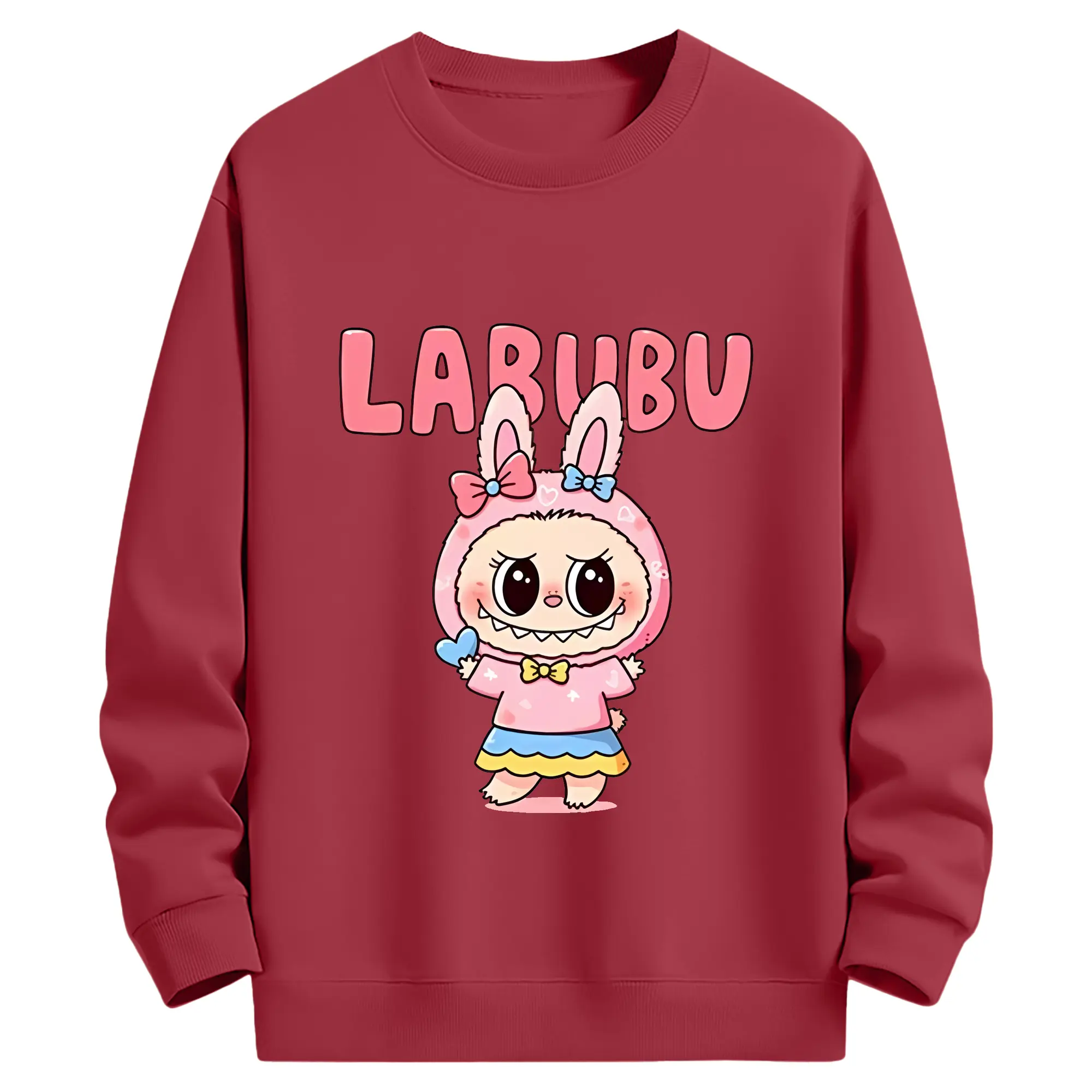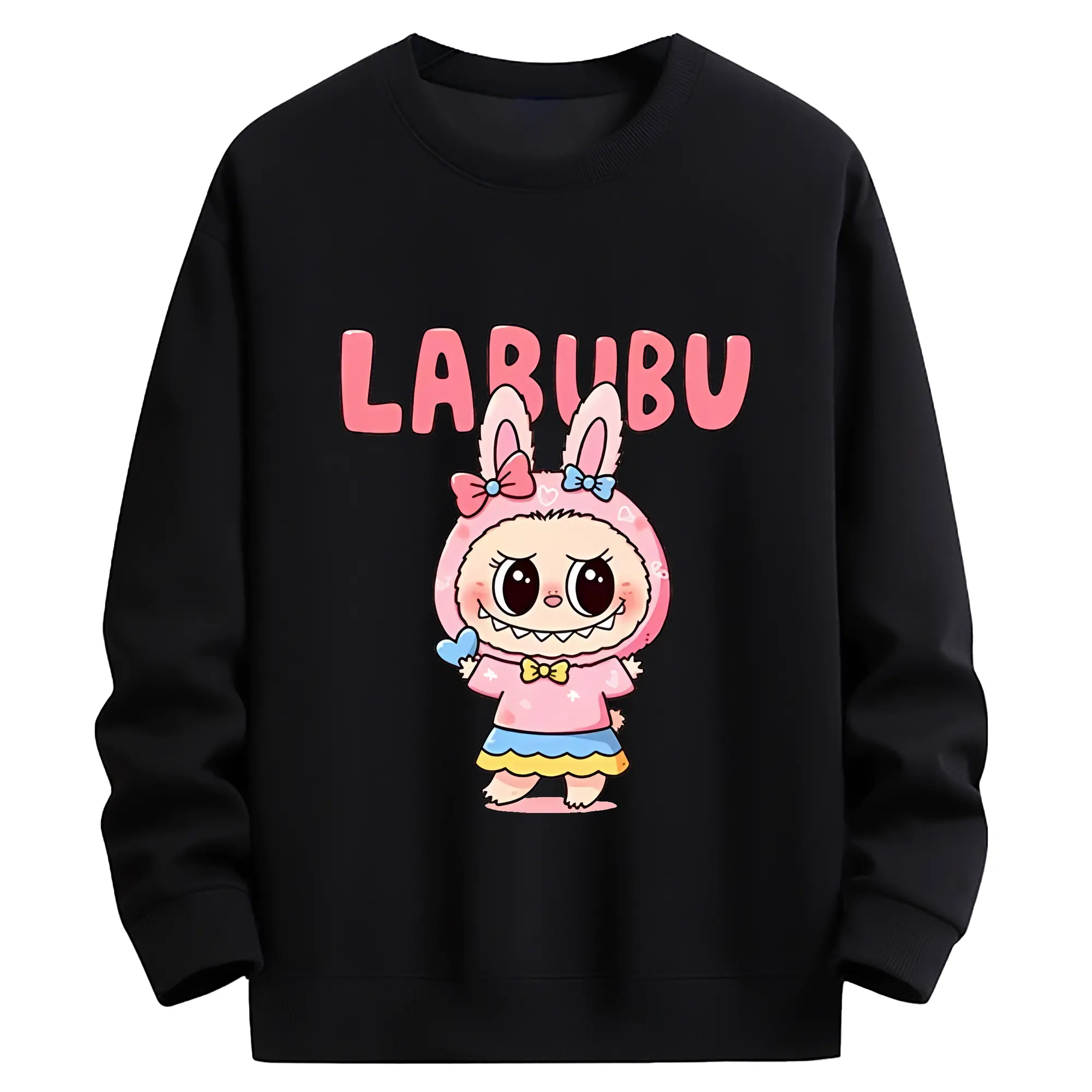 ラブブ グッズ ラブブ - キッズ クルーネックスウェットシャツ ・ フロントプリント ・ 綿80% ポリエステル20% ・ 快適 通学 スポーツ 日常使い お散歩用