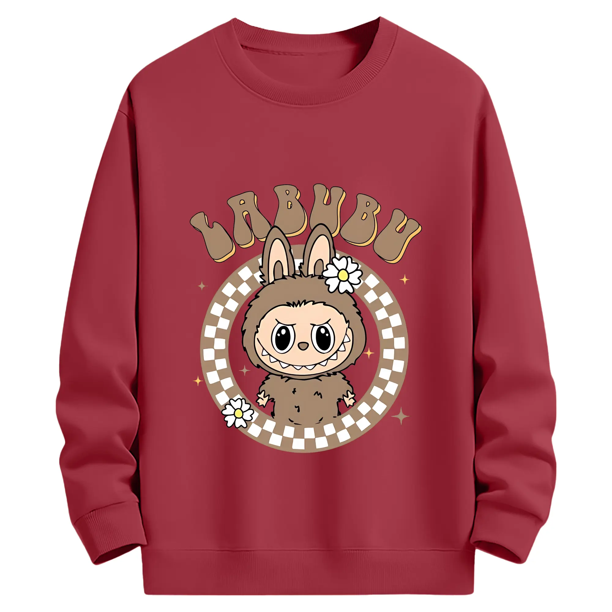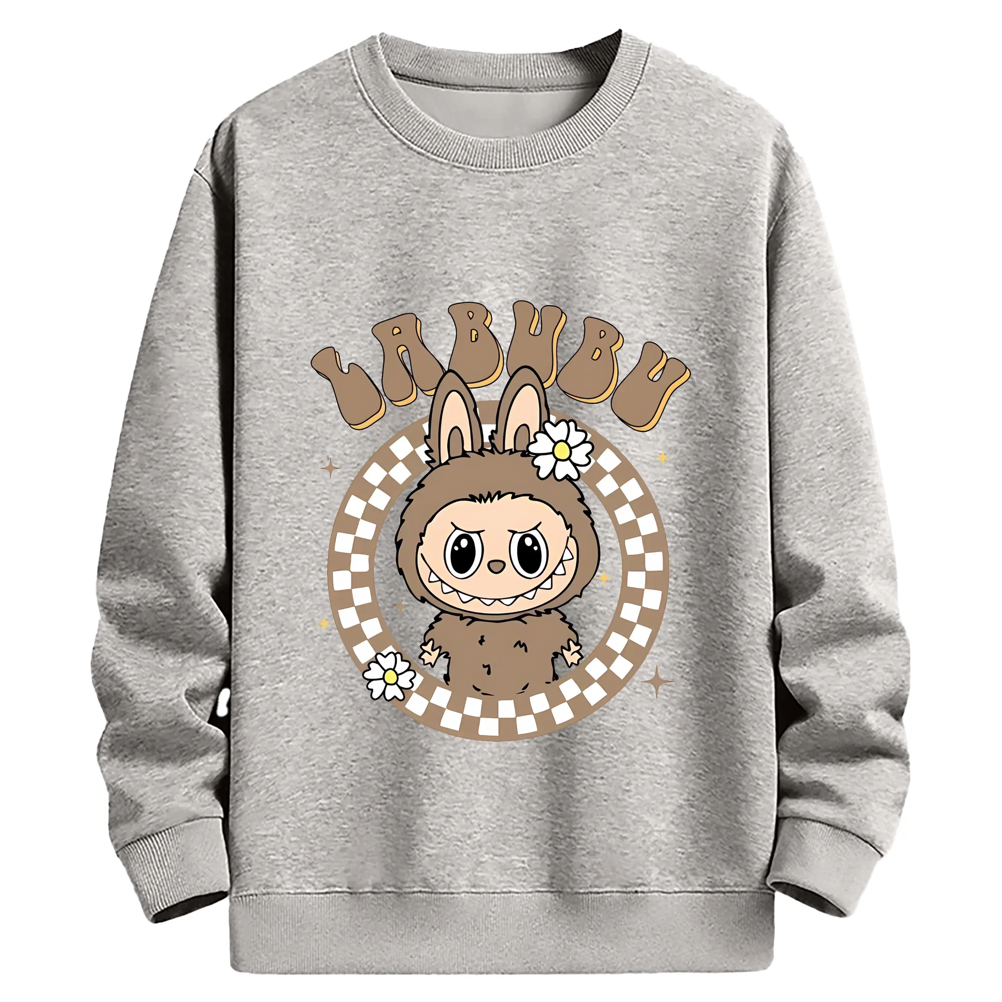 ラブブ グッズ ラブブ - キッズ クルーネックスウェットシャツ ・ フロントプリント ・ 綿80% ポリエステル20% ・ 快適 通学 スポーツ 日常使い お散歩用