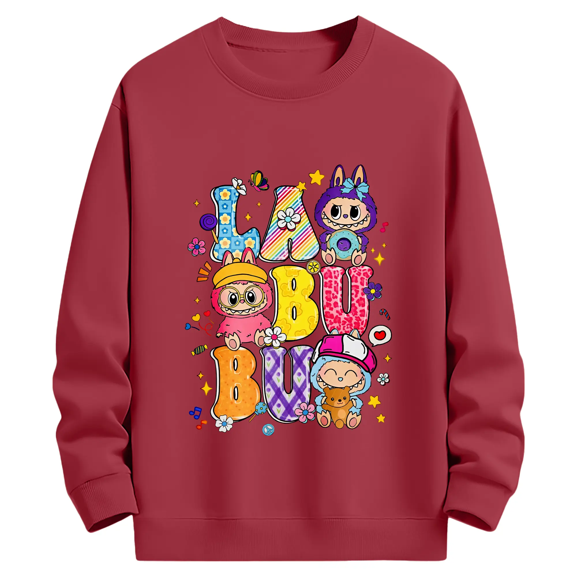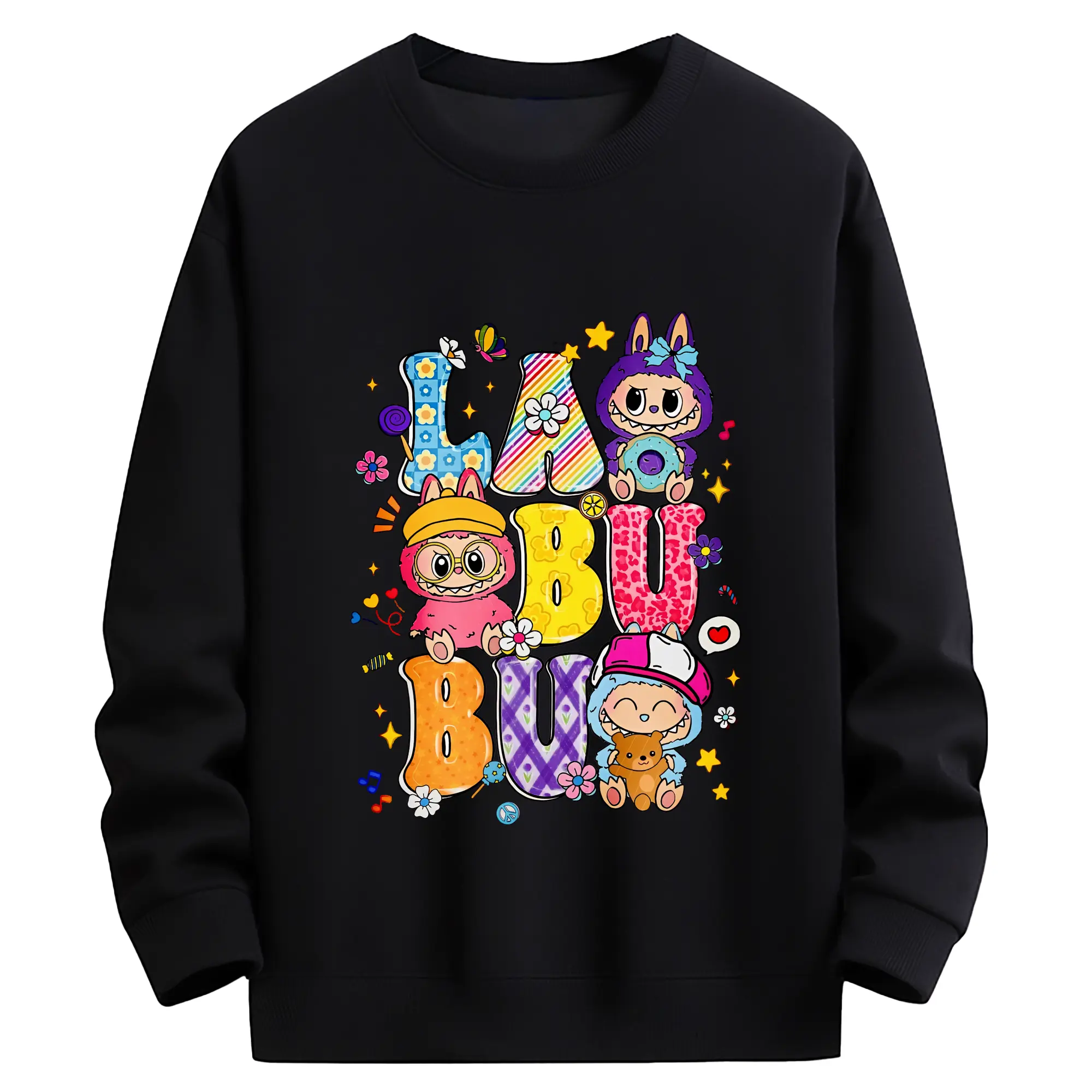 ラブブ グッズ ラブブ - キッズ クルーネックスウェットシャツ ・ フロントプリント ・ 綿80% ポリエステル20% ・ 快適 通学 スポーツ 日常使い お散歩用
