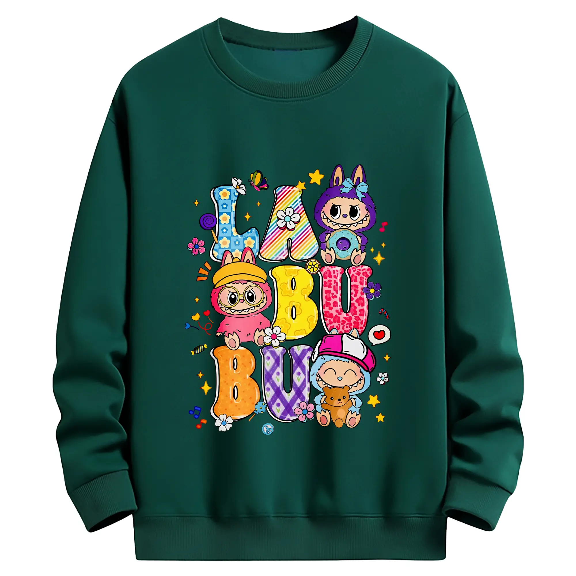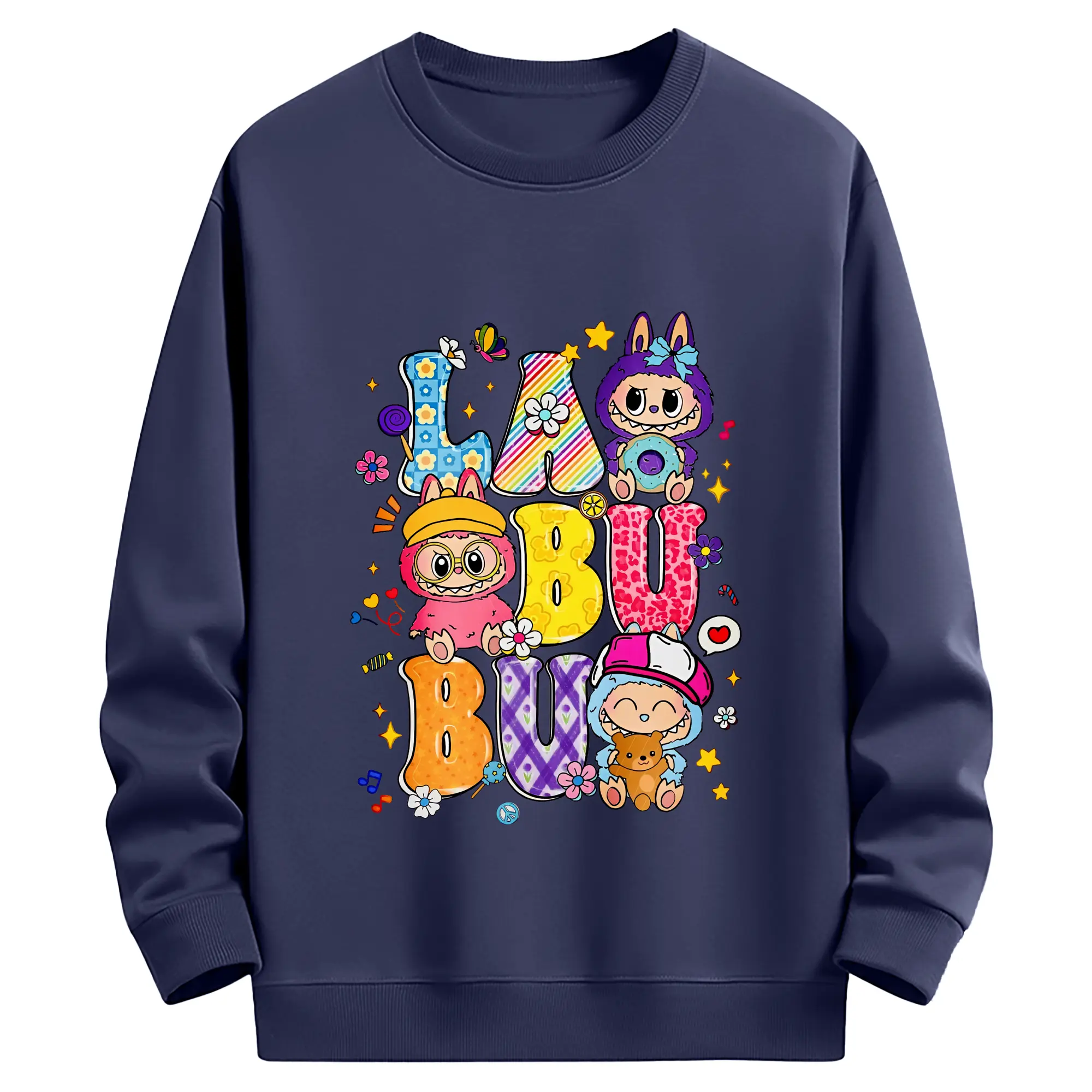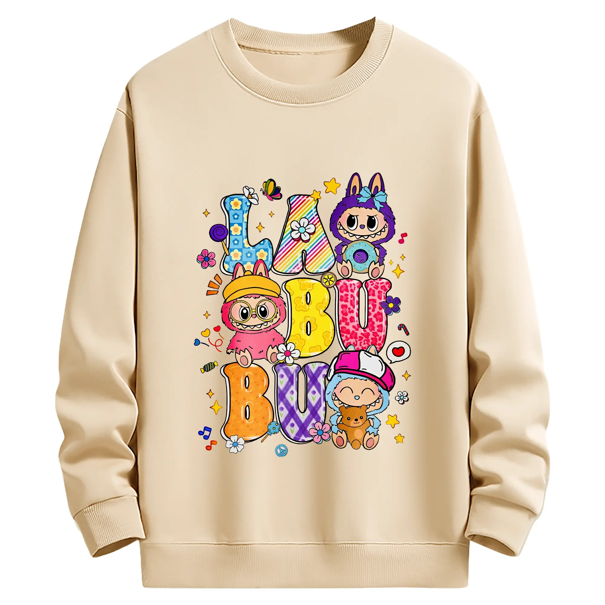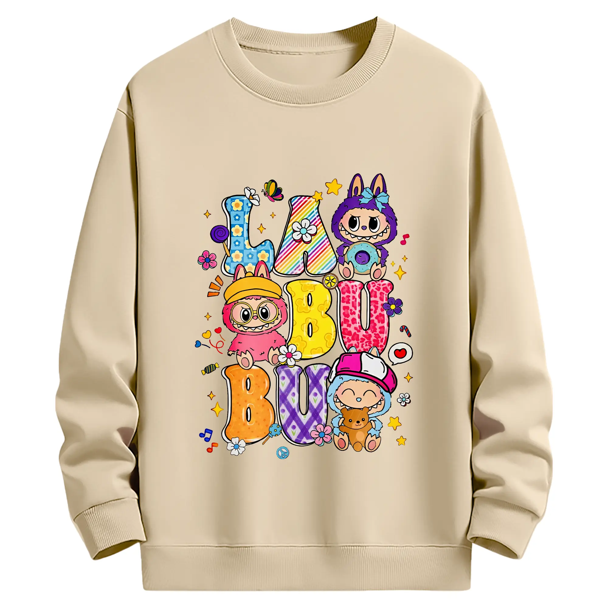 ラブブ グッズ ラブブ - 薄手 クルーネック スウェット 裏毛260g · ポリエステル 春秋向け カジュアル 男女兼用 · トレーナー デイリー スポーツ 散歩に最適