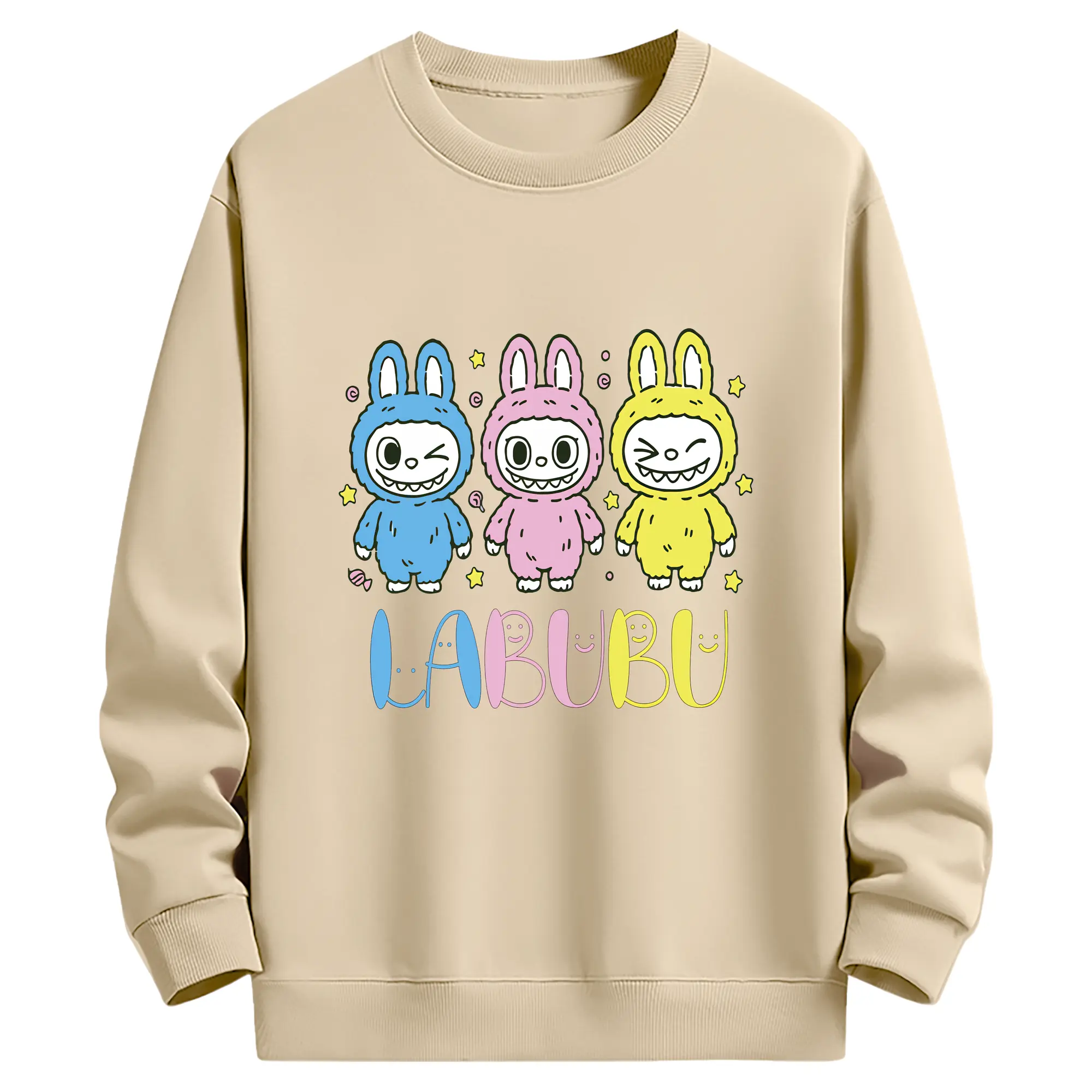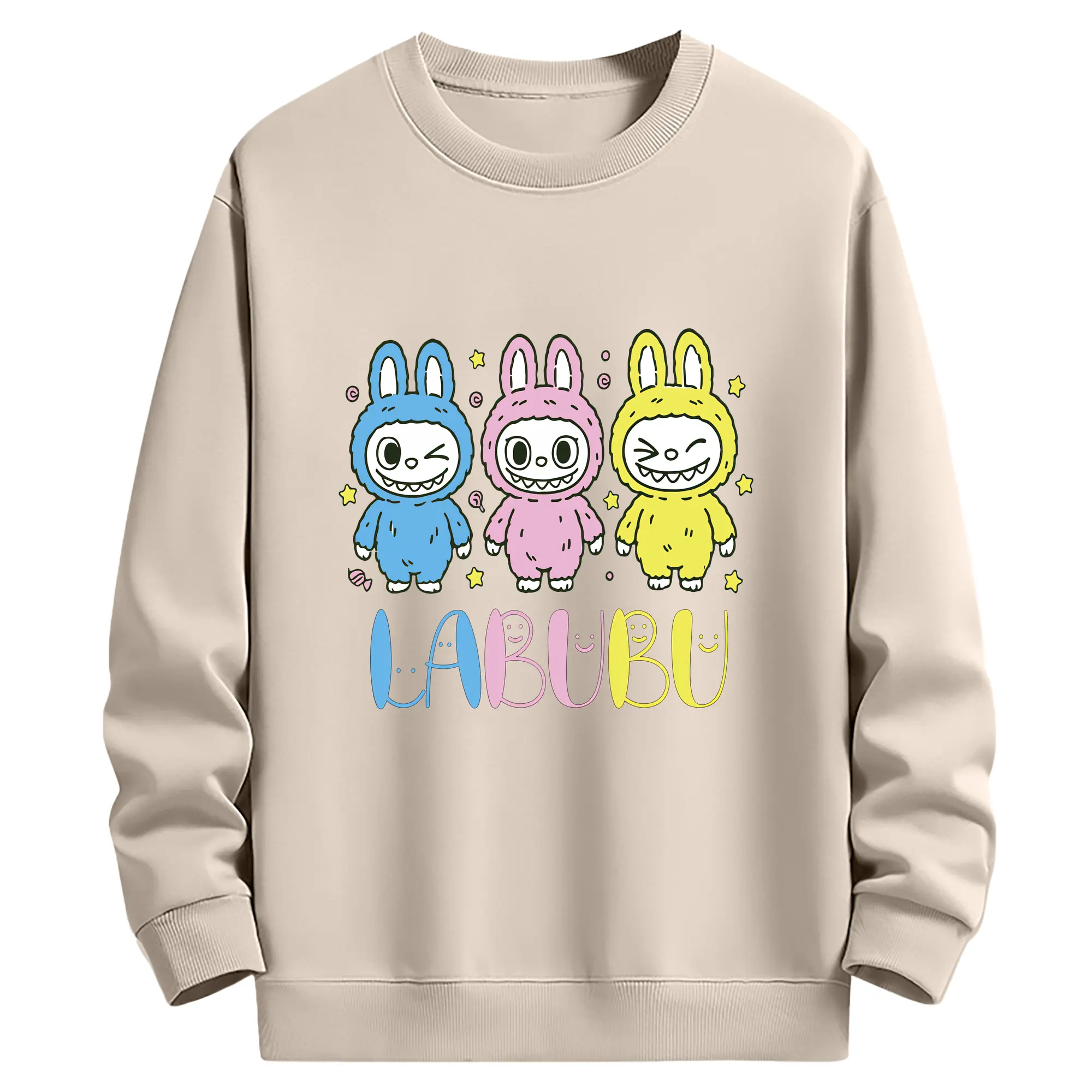 ラブブ グッズ ラブブ - 薄手 クルーネック スウェット 裏毛260g · ポリエステル 春秋向け カジュアル 男女兼用 · トレーナー デイリー スポーツ 散歩に最適