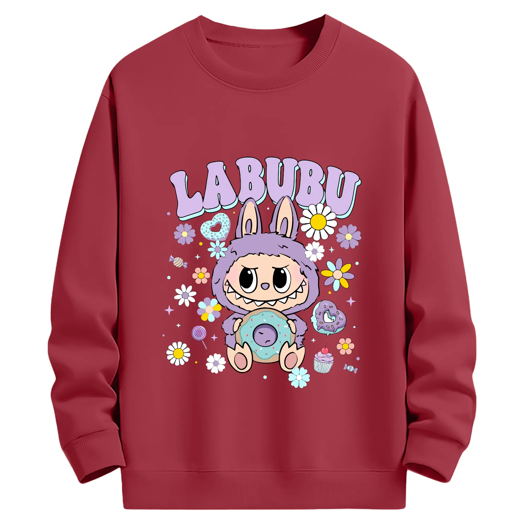 ラブブ グッズ ラブブ - キッズ クルーネックスウェットシャツ ・ フロントプリント ・ 綿80% ポリエステル20% ・ 快適 通学 スポーツ 日常使い お散歩用