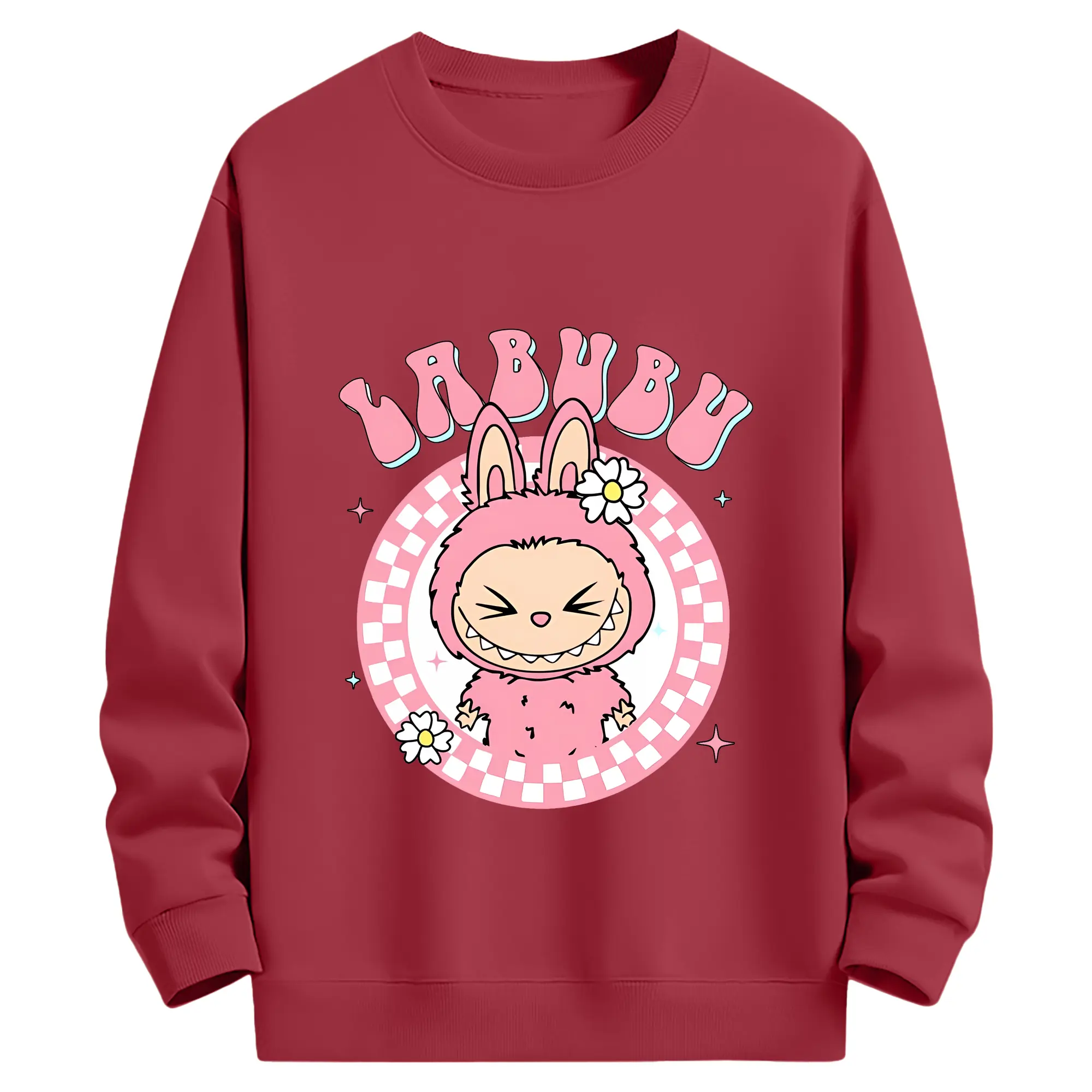 ラブブ グッズ ラブブ - キッズ クルーネックスウェットシャツ ・ フロントプリント ・ 綿80% ポリエステル20% ・ 快適 通学 スポーツ 日常使い お散歩用