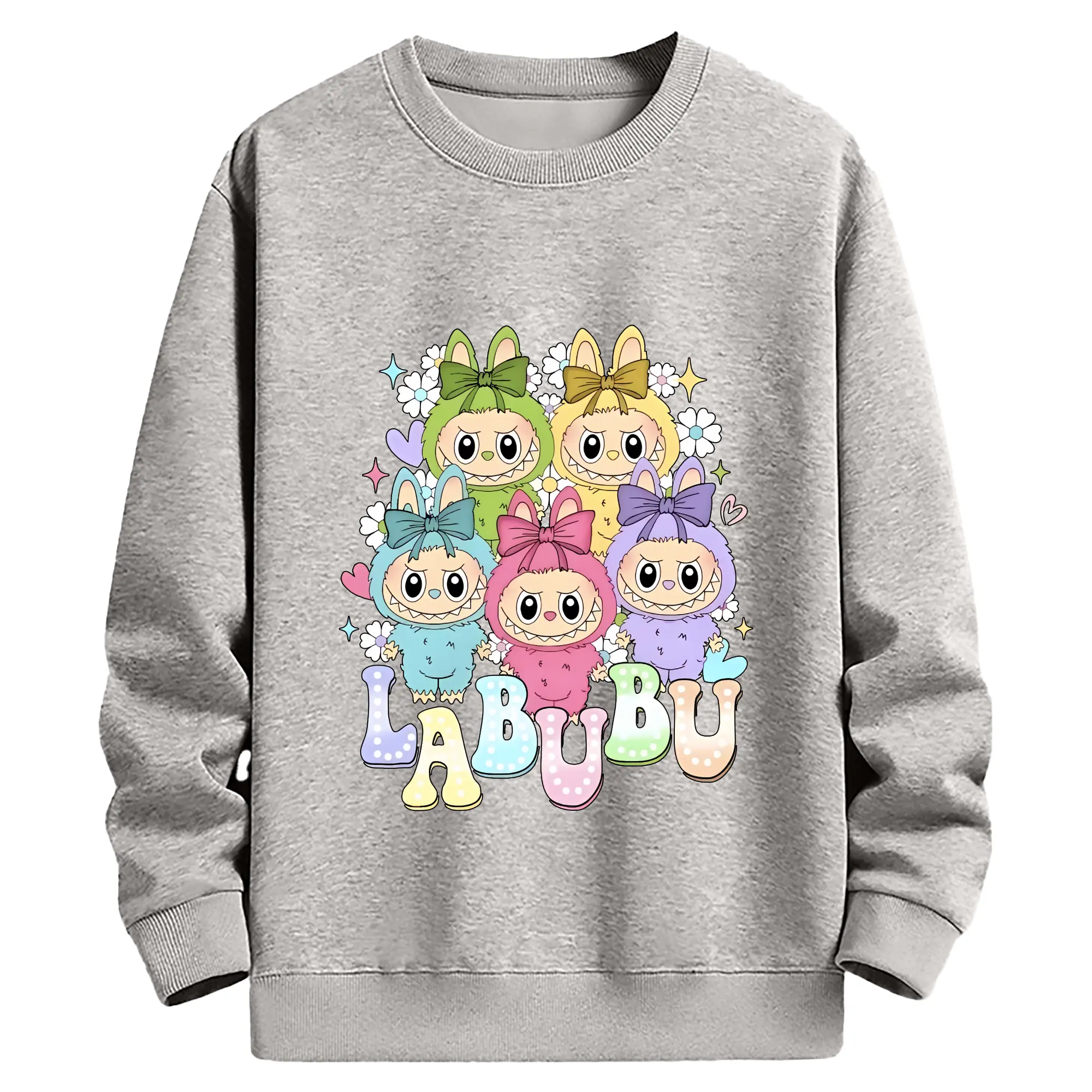ラブブ グッズ ラブブ - キッズ クルーネックスウェットシャツ ・ フロントプリント ・ 綿80% ポリエステル20% ・ 快適 通学 スポーツ 日常使い お散歩用