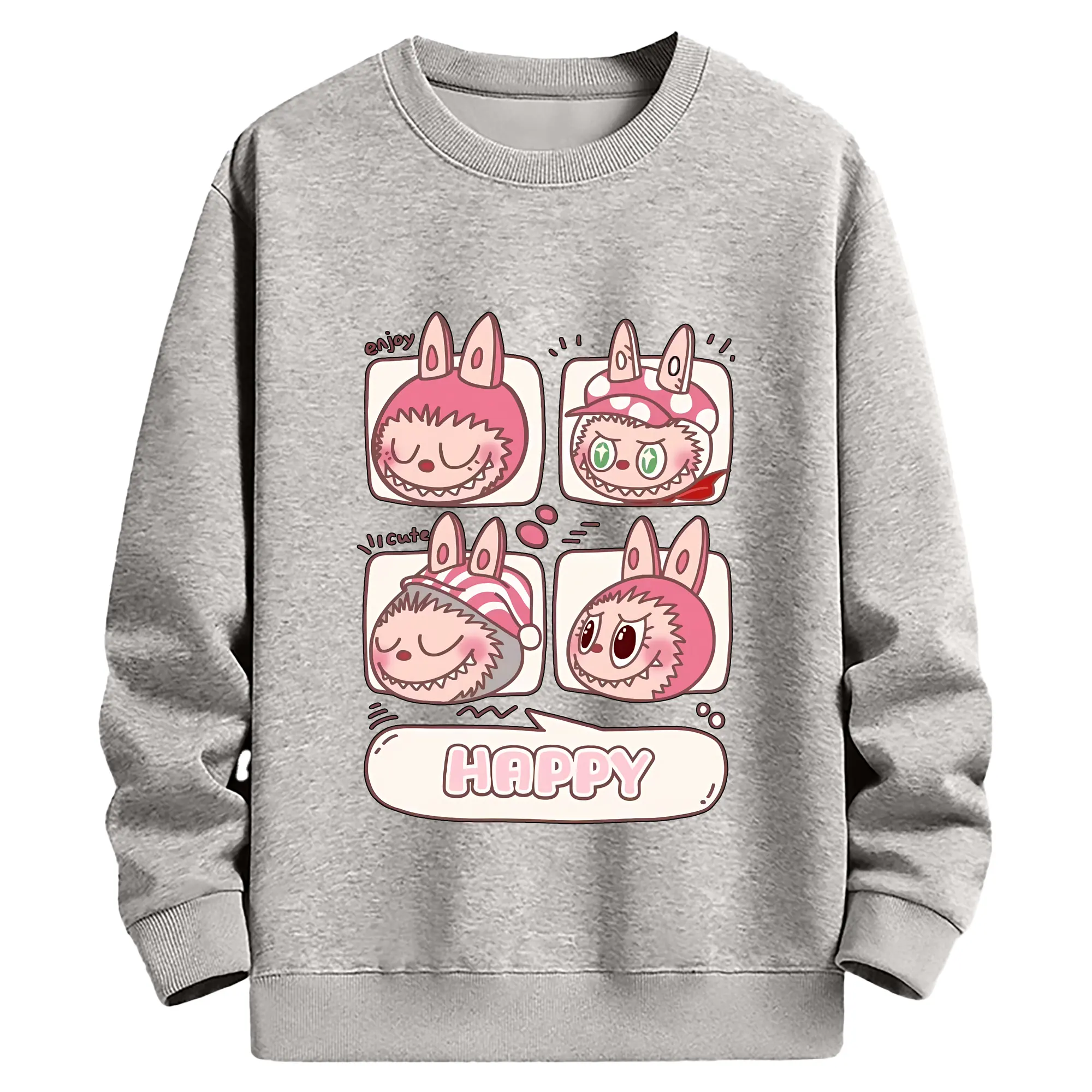 ラブブ グッズ ラブブ - 薄手 クルーネック スウェット 裏毛260g · ポリエステル 春秋向け カジュアル 男女兼用 · トレーナー デイリー スポーツ 散歩に最適