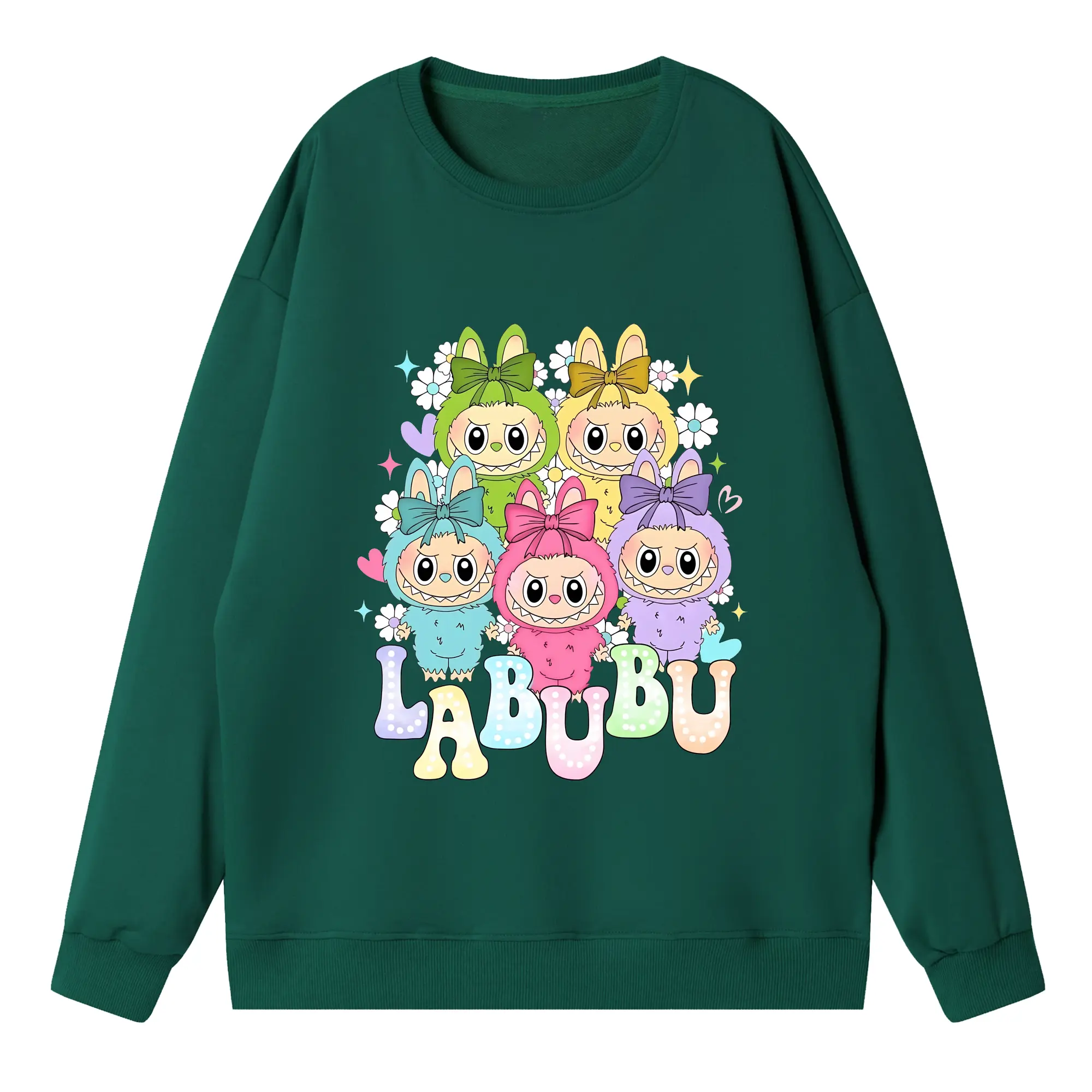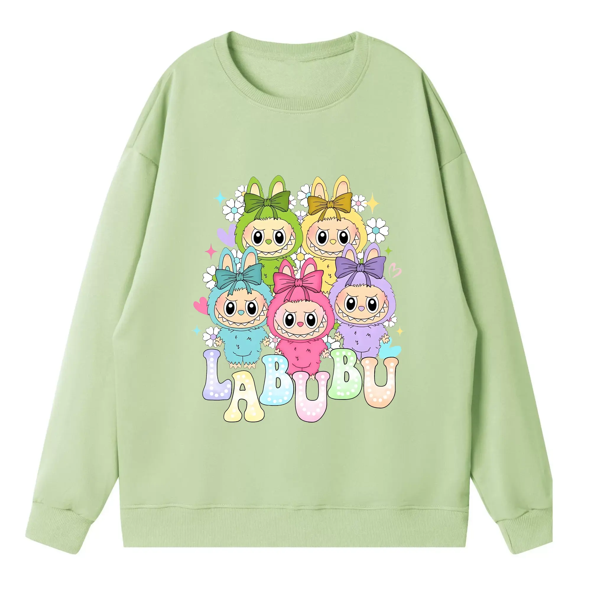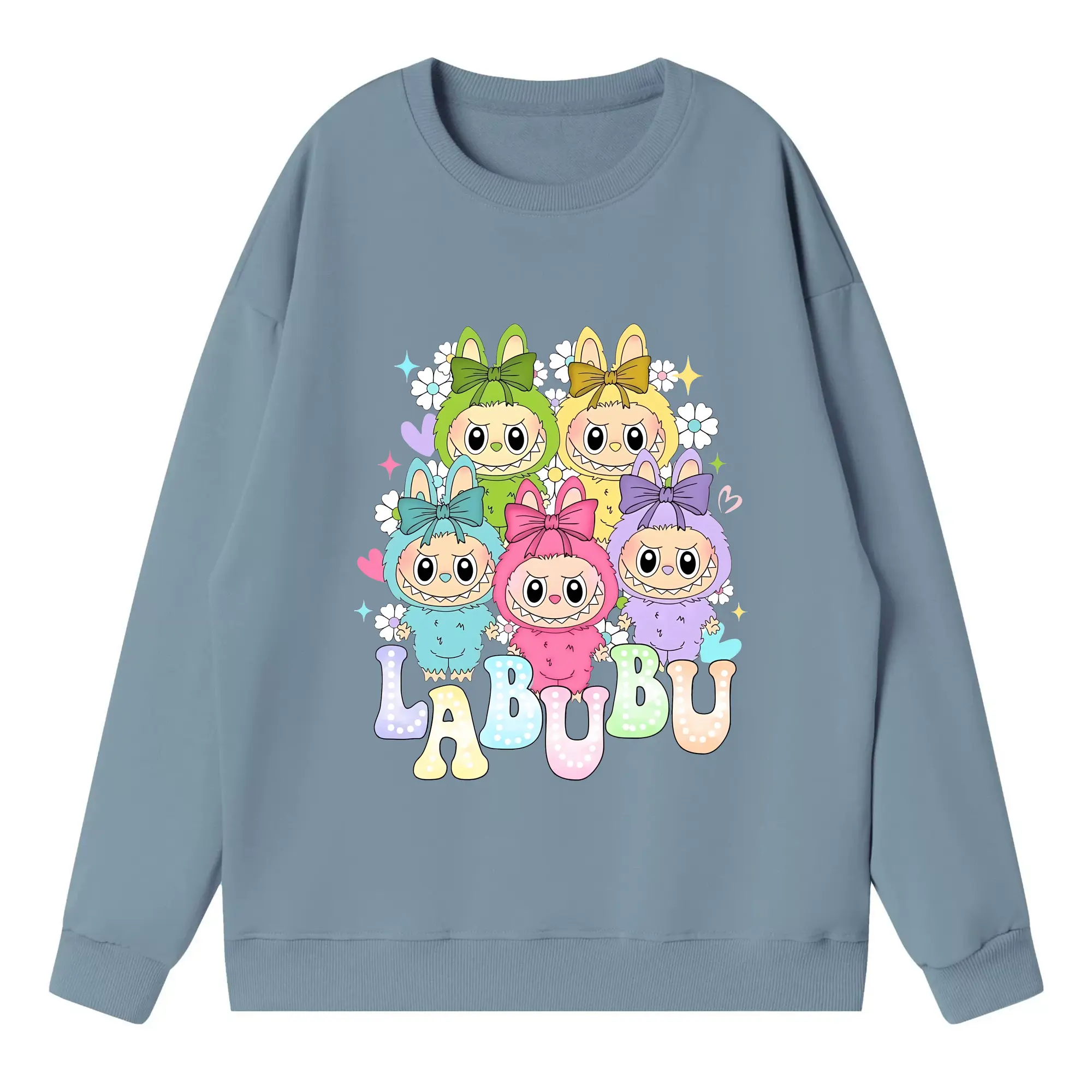 ラブブ グッズ ラブブ - 高品質 クルーネック スウェット ・ コットン59% ポリエステル41% ・ ユニセックス 長袖 トレーナー ・ カジュアル デイリー スポーツ 散歩用