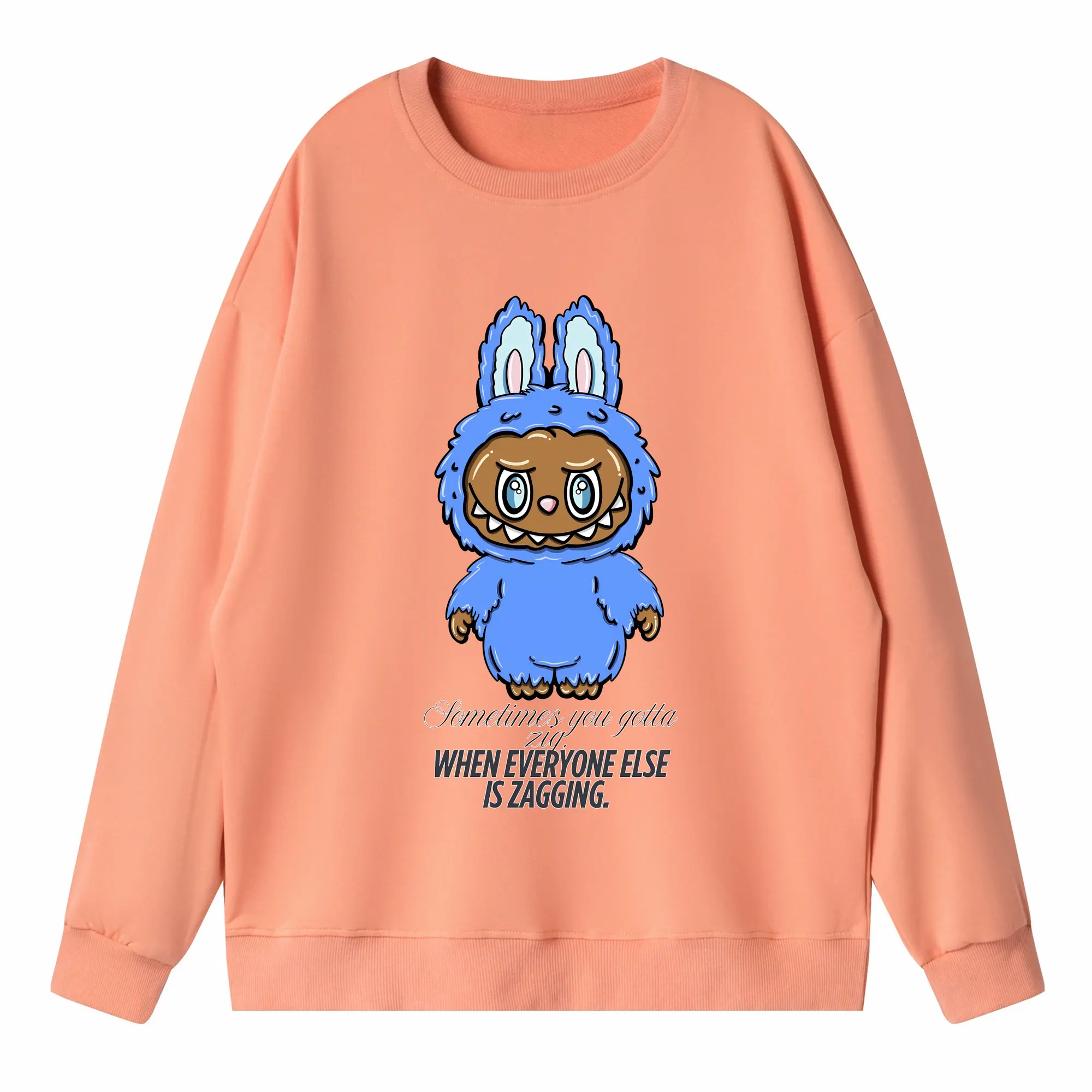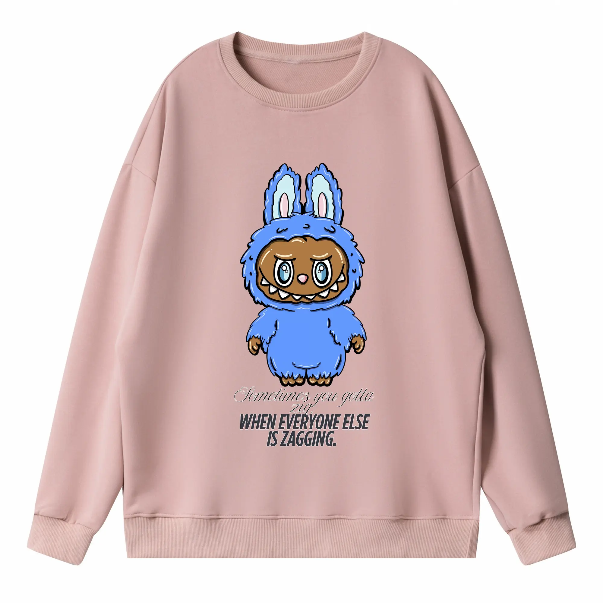ラブブ グッズ ラブブ - 高品質 クルーネック スウェット ・ コットン59% ポリエステル41% ・ ユニセックス 長袖 トレーナー ・ カジュアル デイリー スポーツ 散歩用