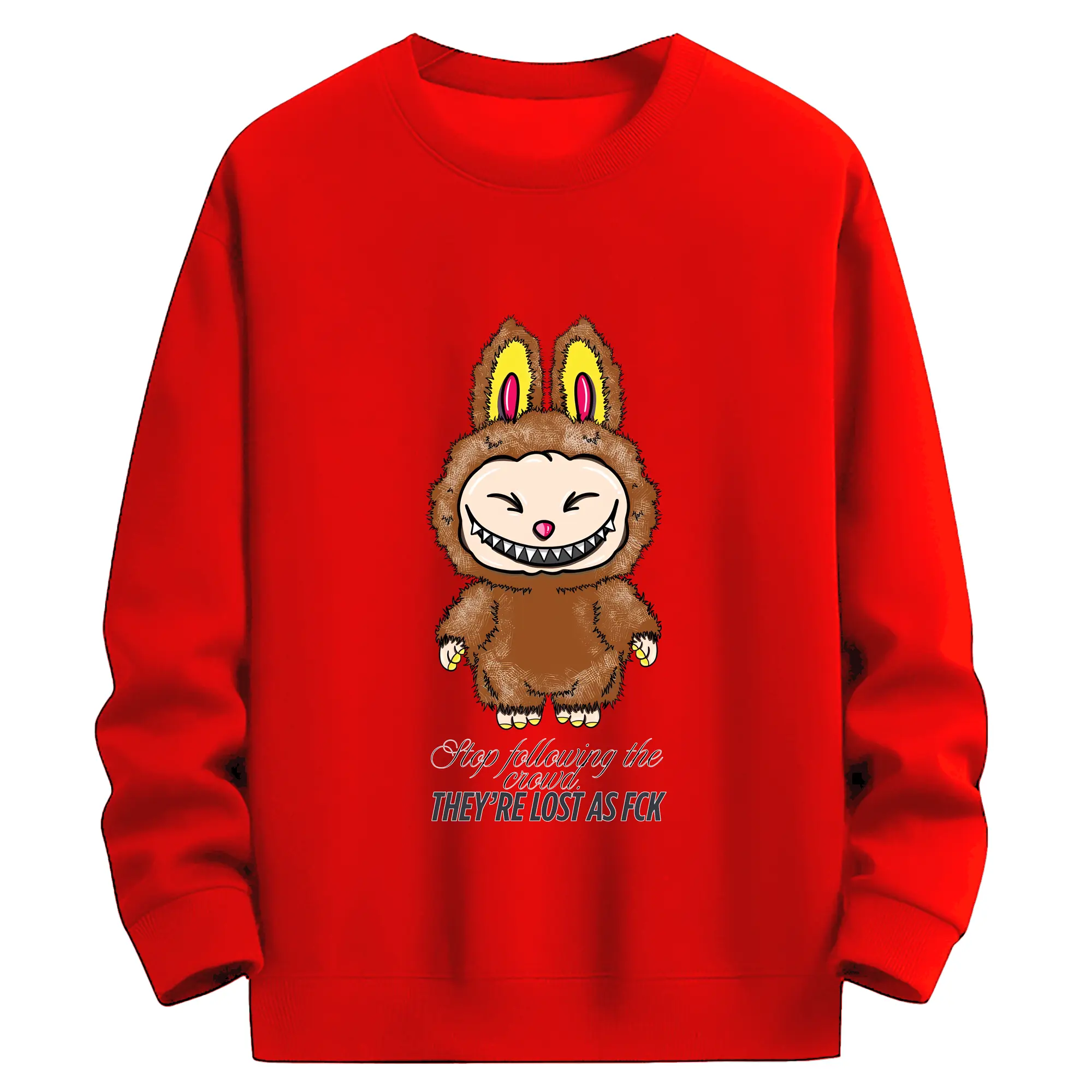 ラブブ グッズ ラブブ - 高品質 クルーネック スウェット ・ コットン59% ポリエステル41% ・ ユニセックス 長袖 トレーナー ・ カジュアル デイリー スポーツ 散歩用