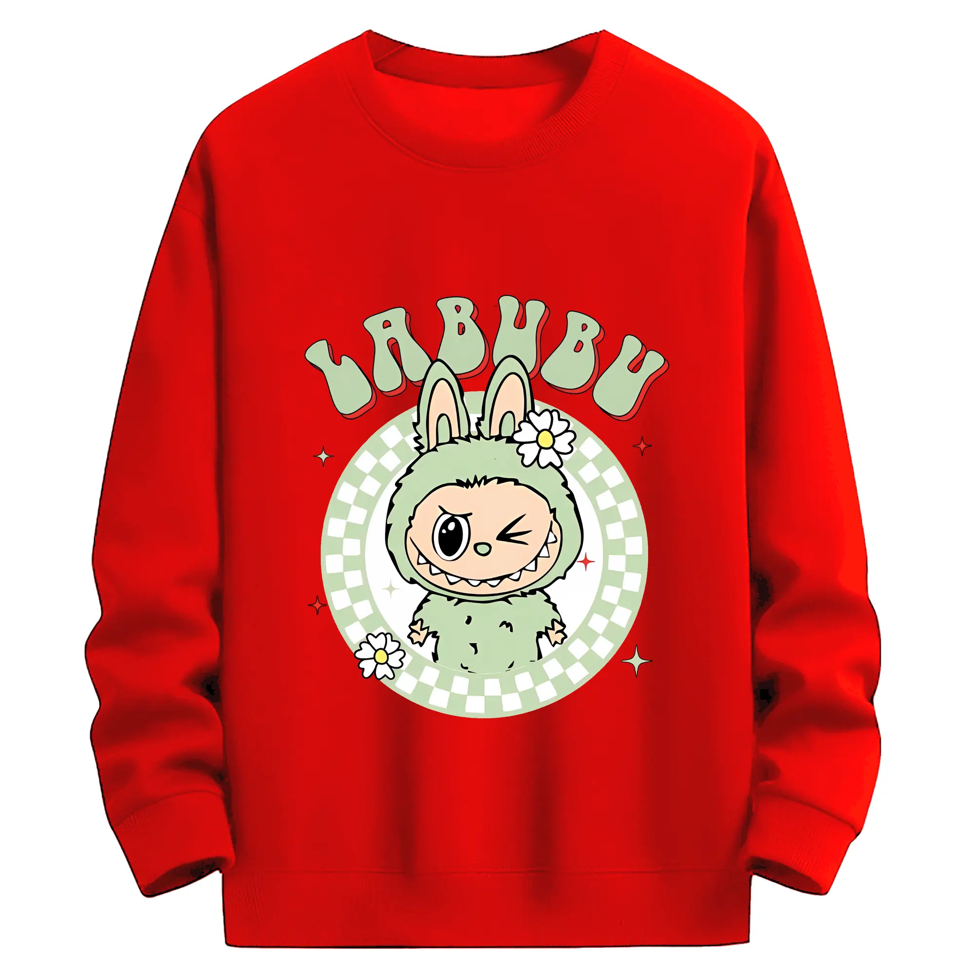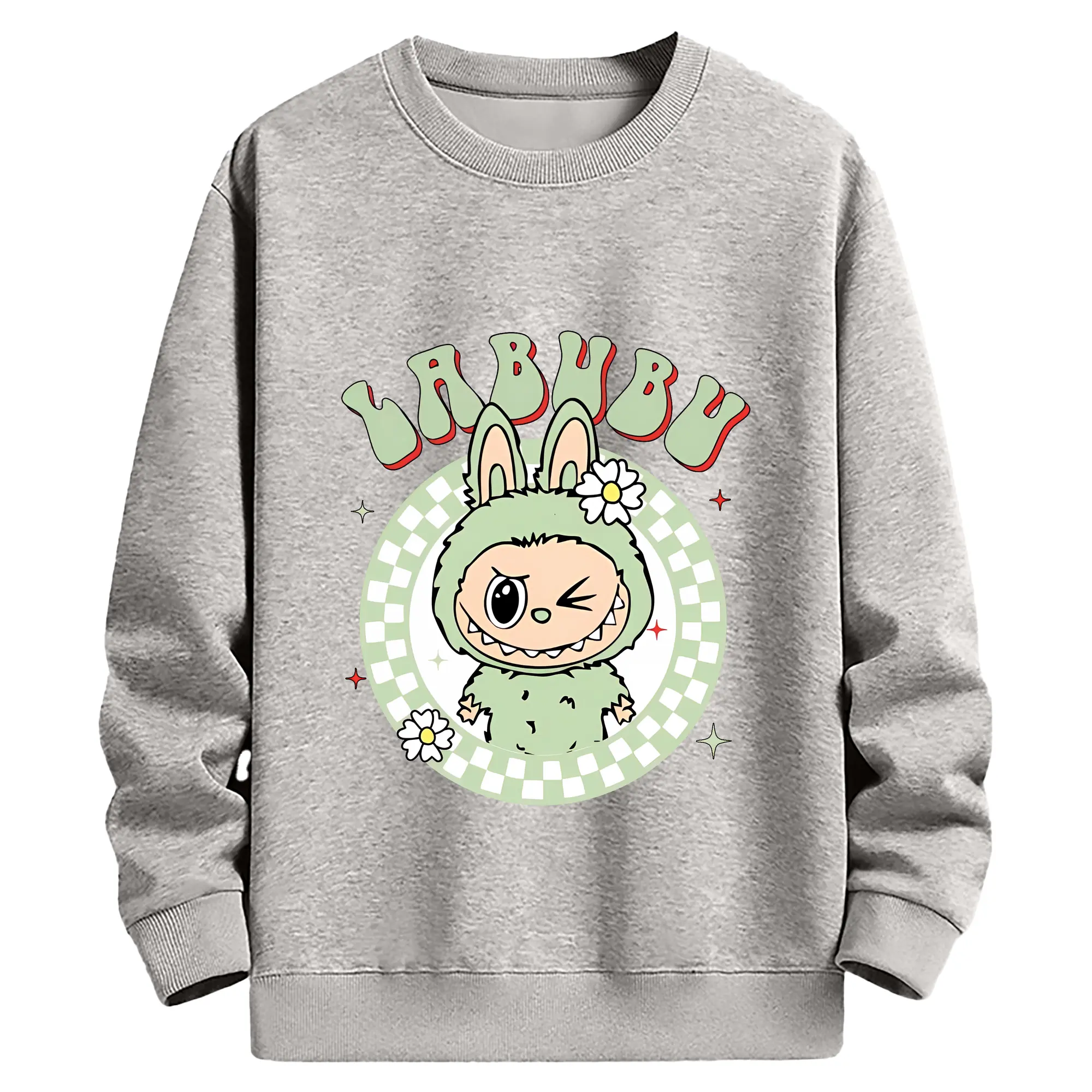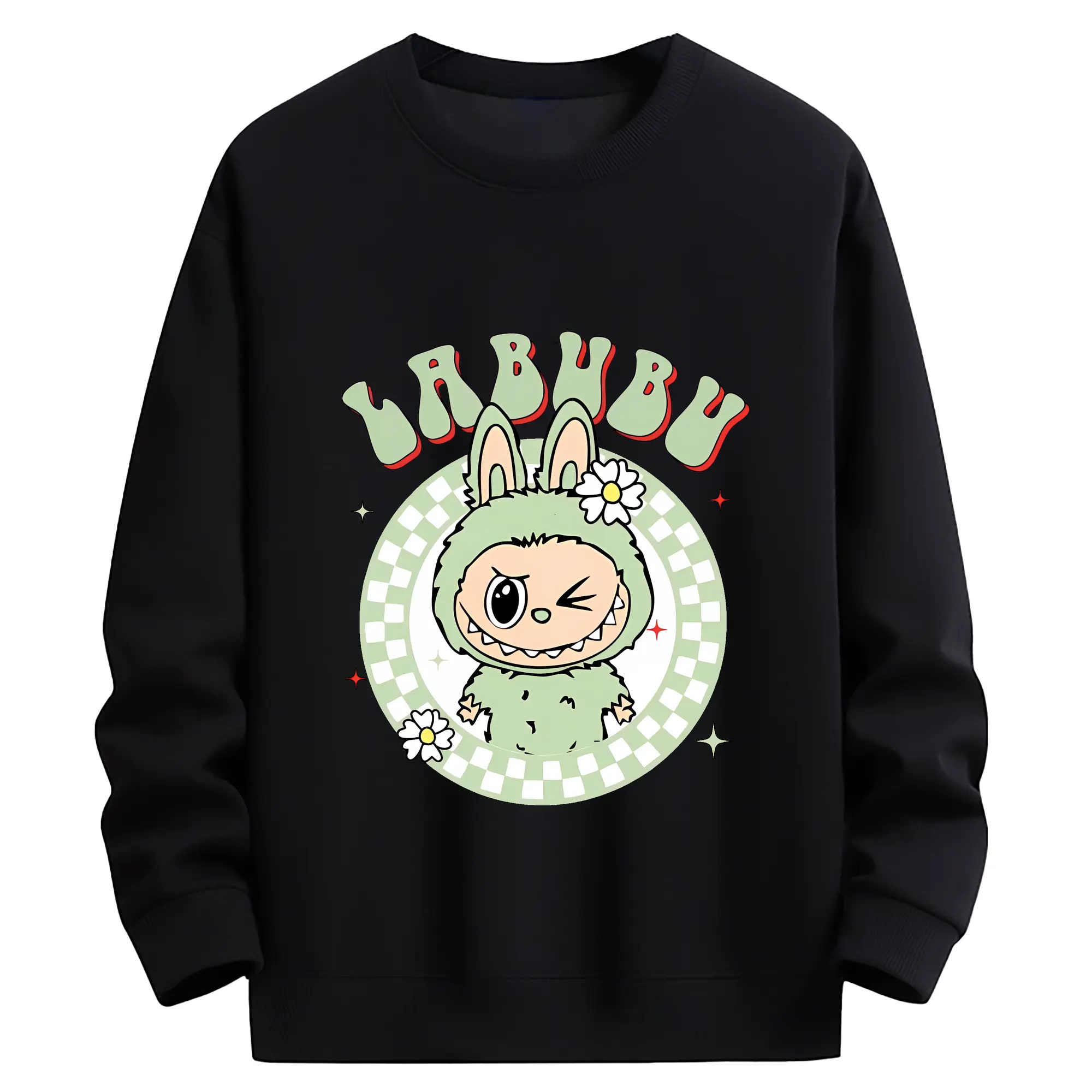 ラブブ グッズ ラブブ - 高品質 クルーネック スウェット ・ コットン59% ポリエステル41% ・ ユニセックス 長袖 トレーナー ・ カジュアル デイリー スポーツ 散歩用
