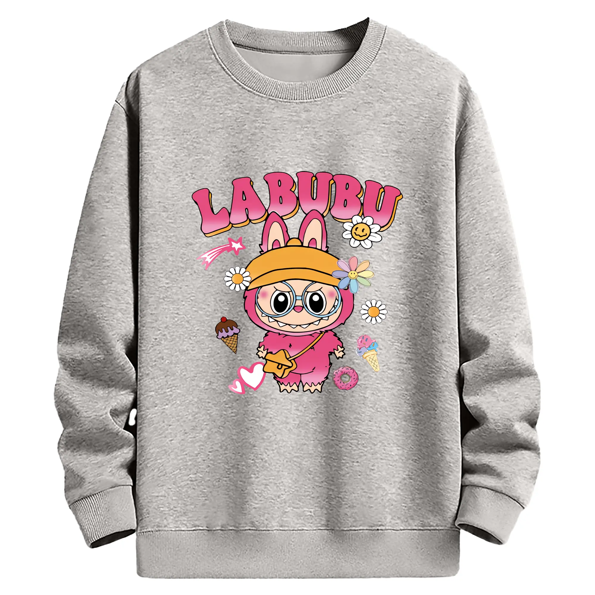 ラブブ グッズ ラブブ - 高品質 クルーネック スウェット ・ コットン59% ポリエステル41% ・ ユニセックス 長袖 トレーナー ・ カジュアル デイリー スポーツ 散歩用