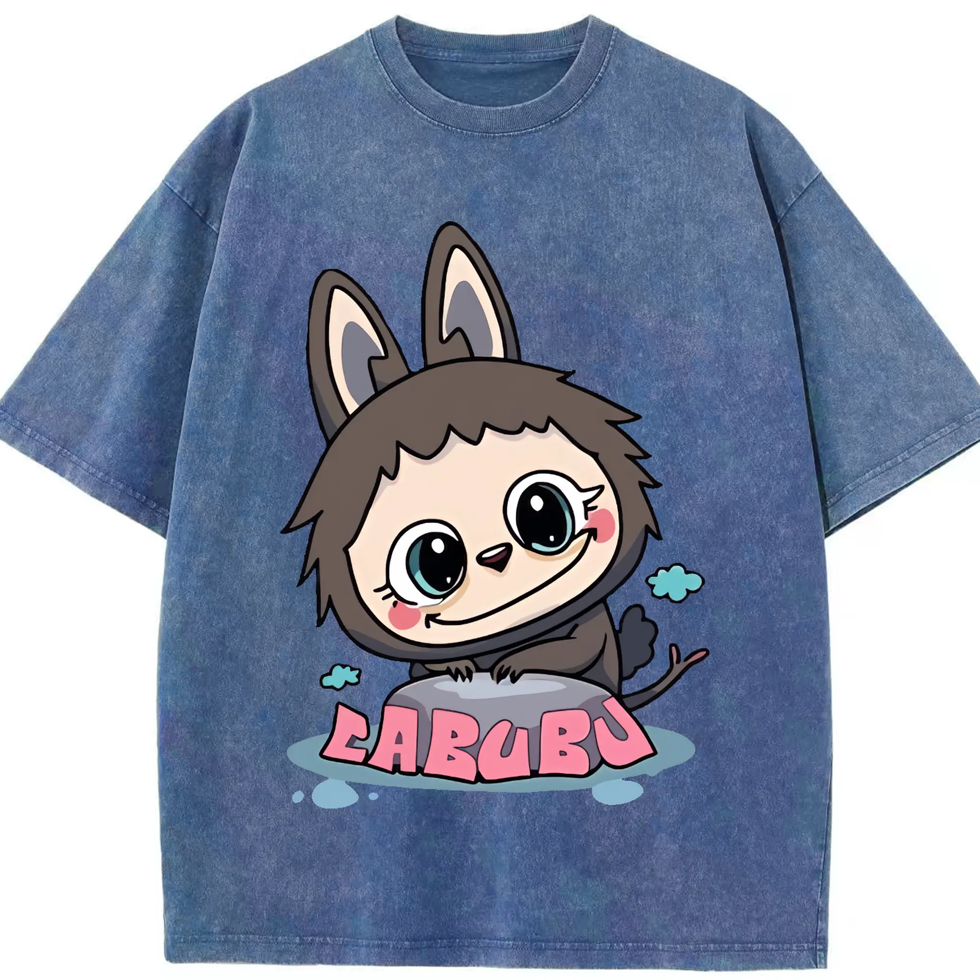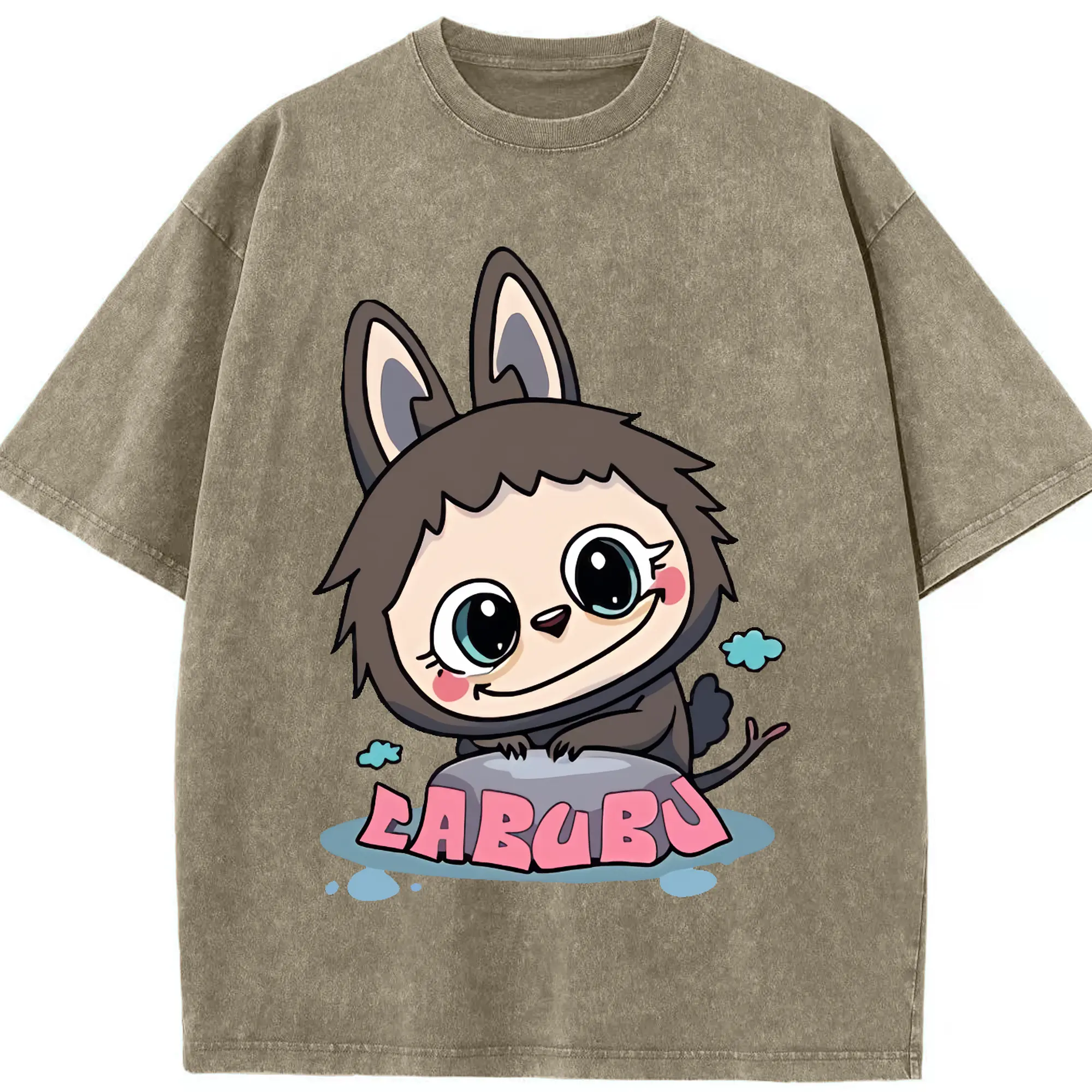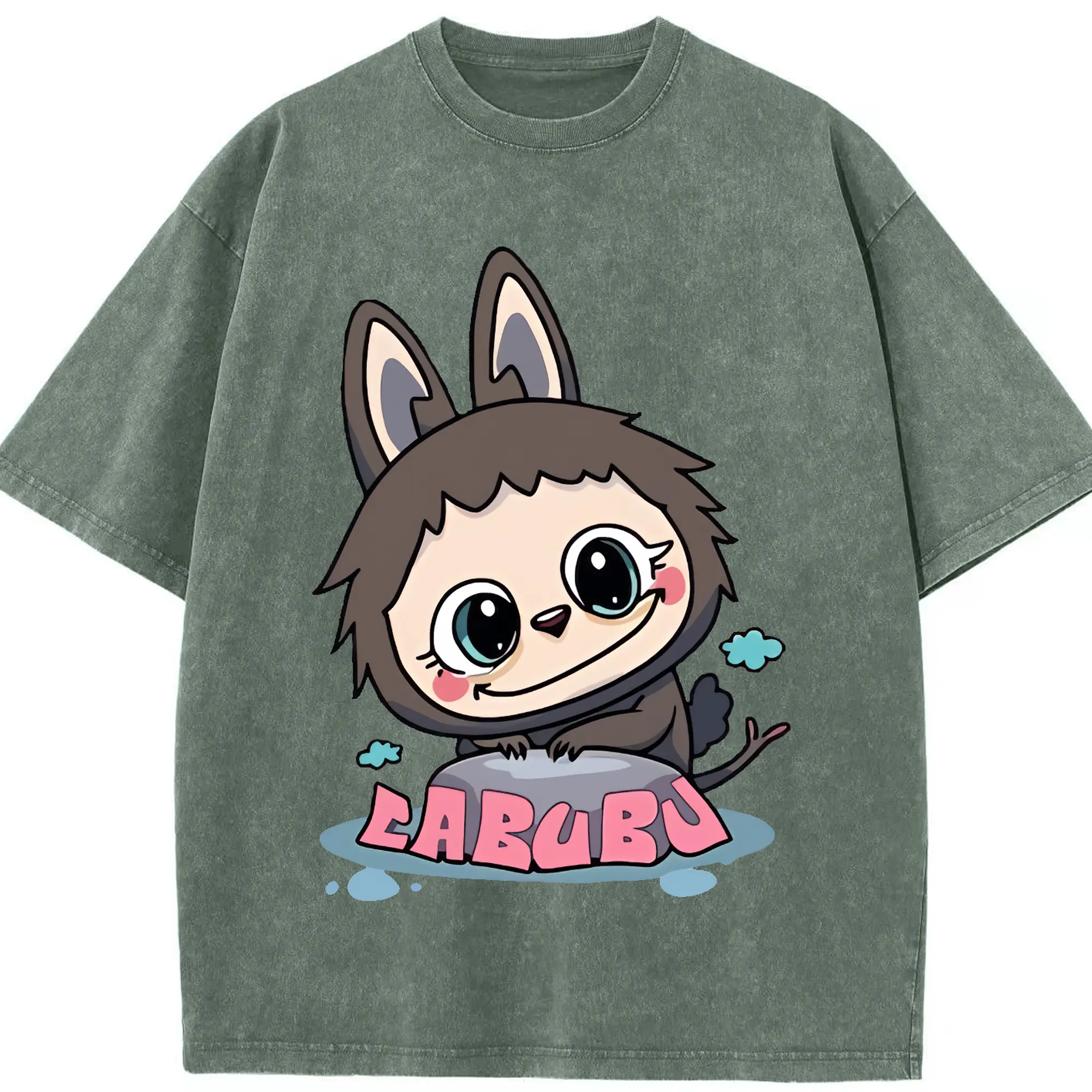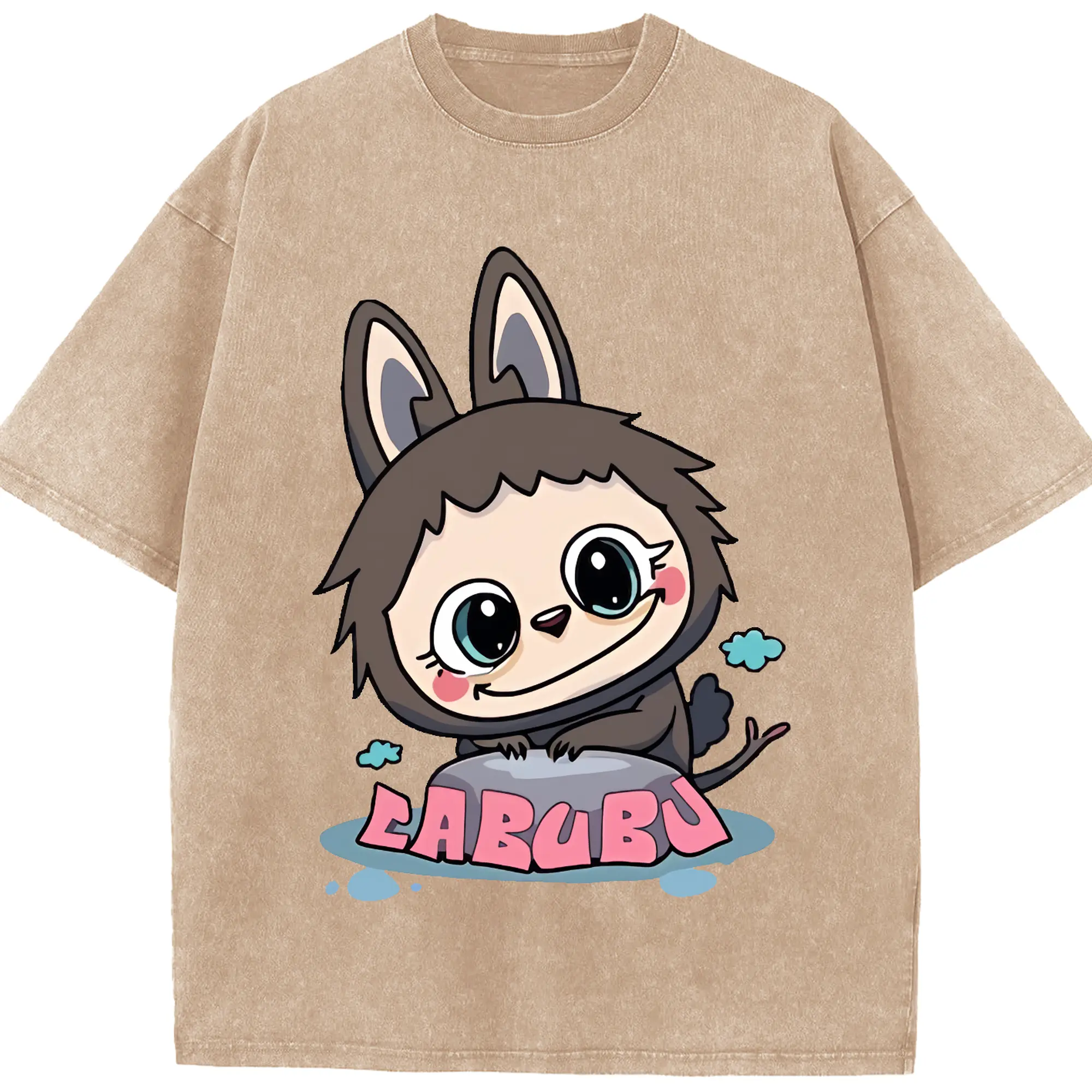 ラブブ グッズ ラブブ - 綿100% ヴィンテージ風 半袖Tシャツ ・ 背面プリント ・ 柔らか肌触り ・ 通気性 快適 ・ スポーツ カジュアル 外出用