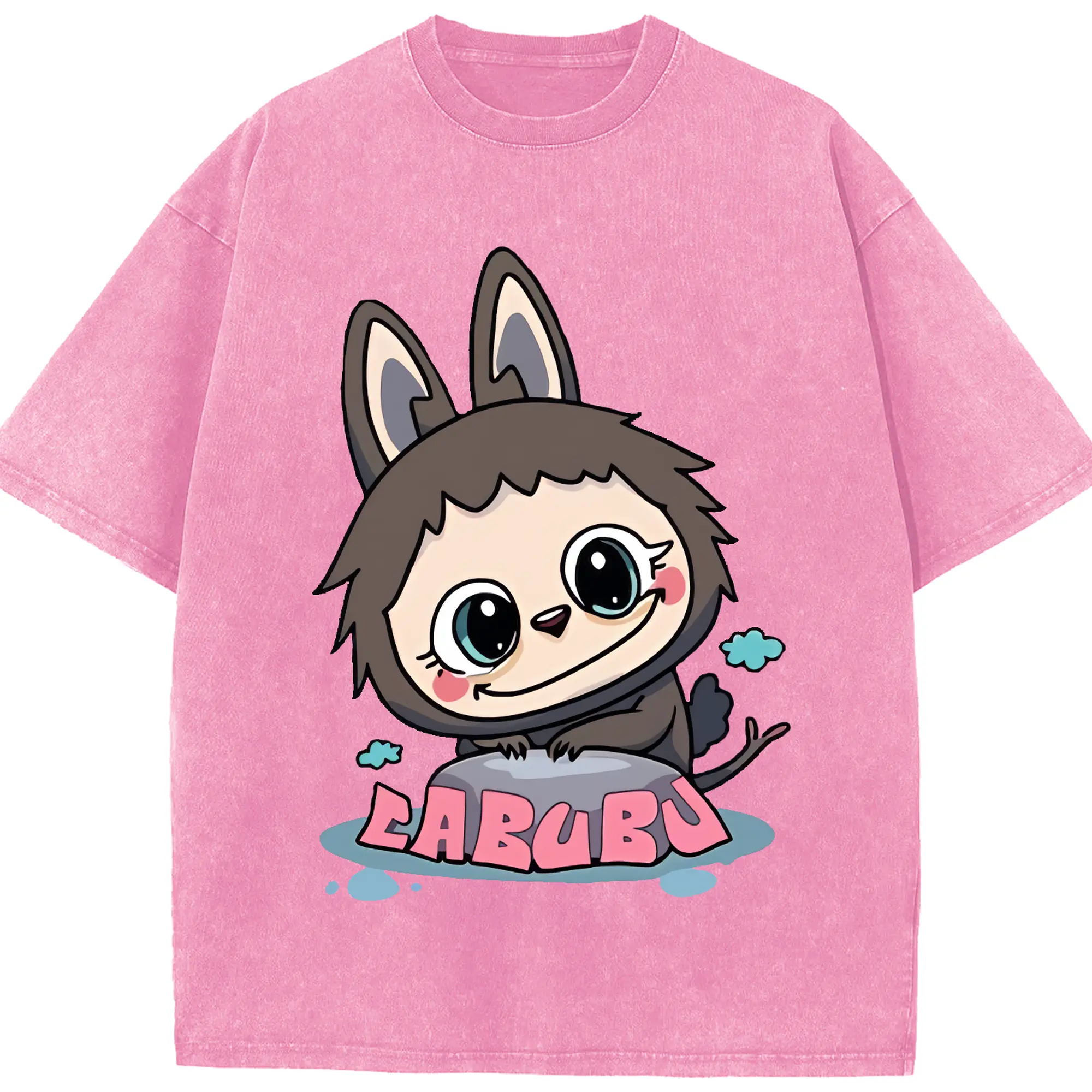 ラブブ グッズ ラブブ - 綿100% 半袖Tシャツ ・ フロントプリント ・ 快適 通気性 ・ 日常使い 散歩 スポーツ用