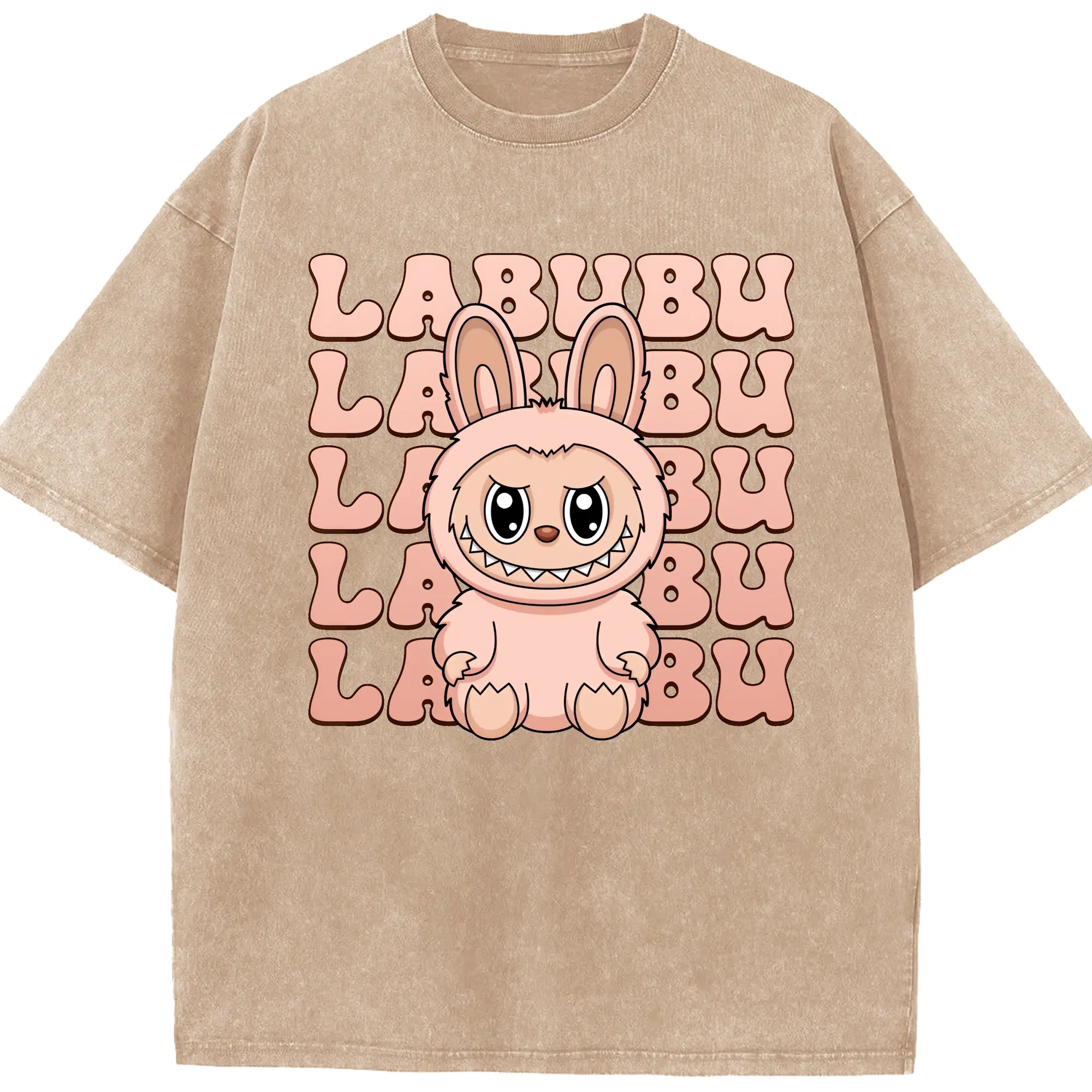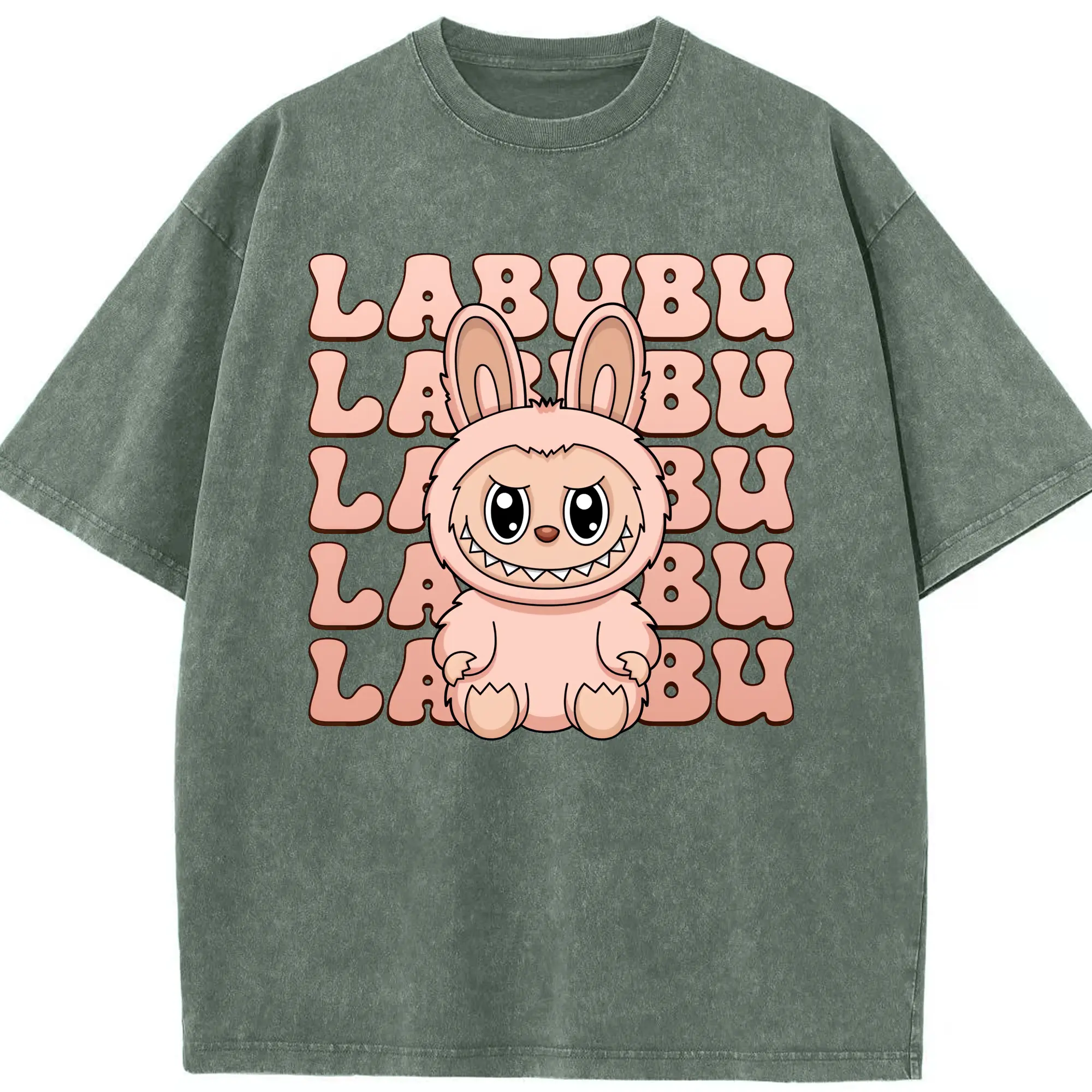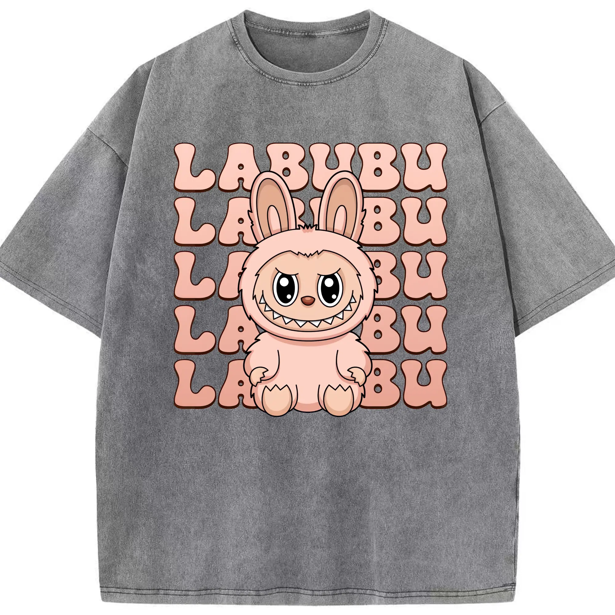 ラブブ グッズ ラブブ - 綿100% ヴィンテージ風 半袖Tシャツ ・ 背面プリント ・ 柔らか肌触り ・ 通気性 快適 ・ スポーツ カジュアル 外出用